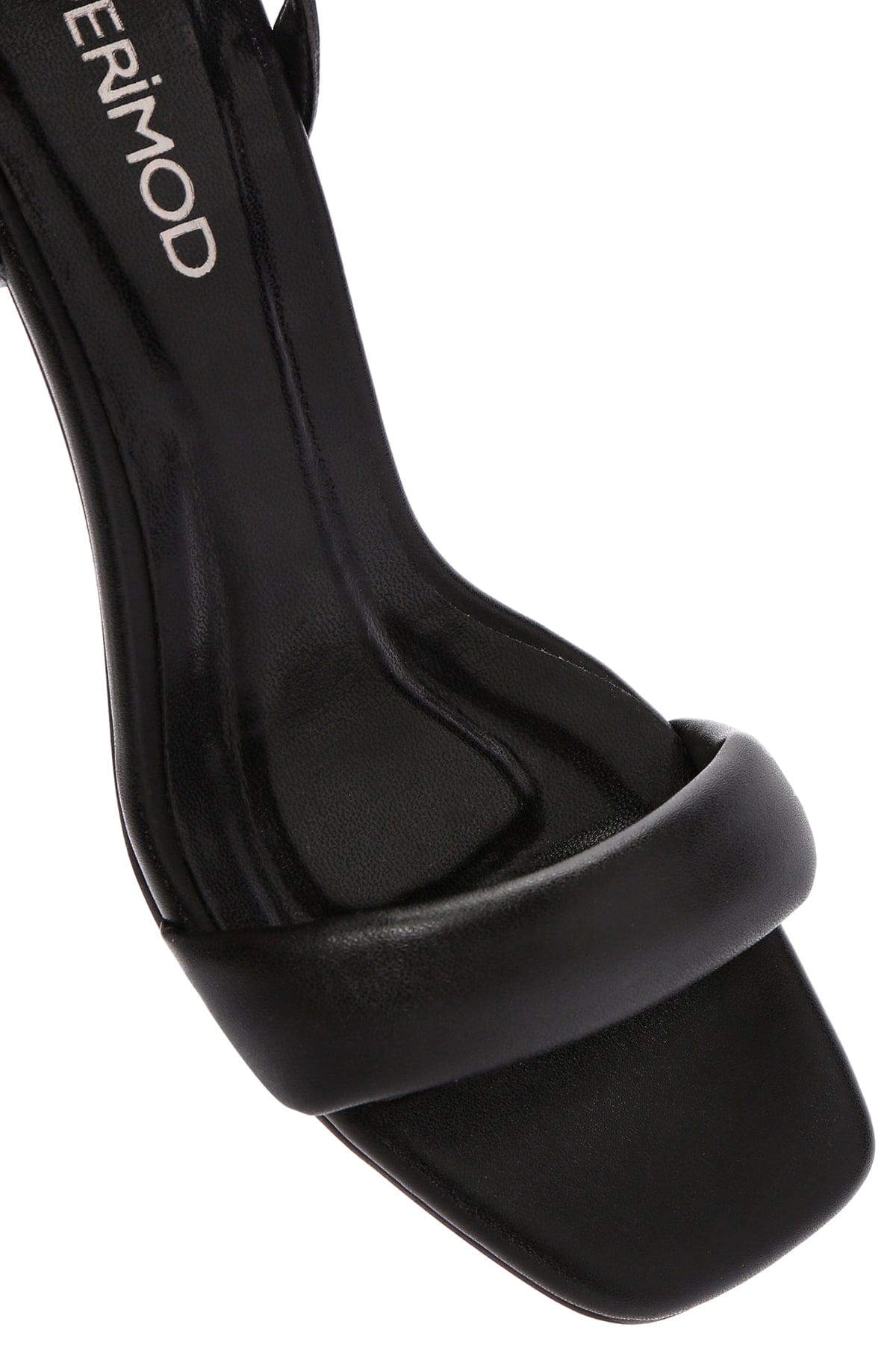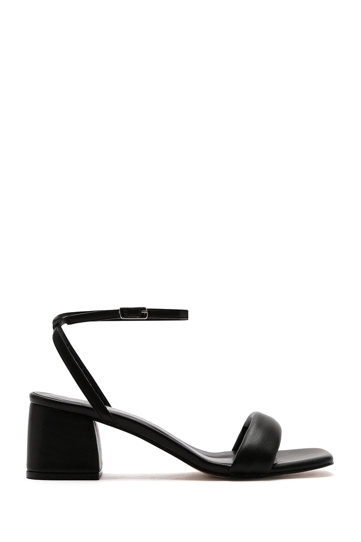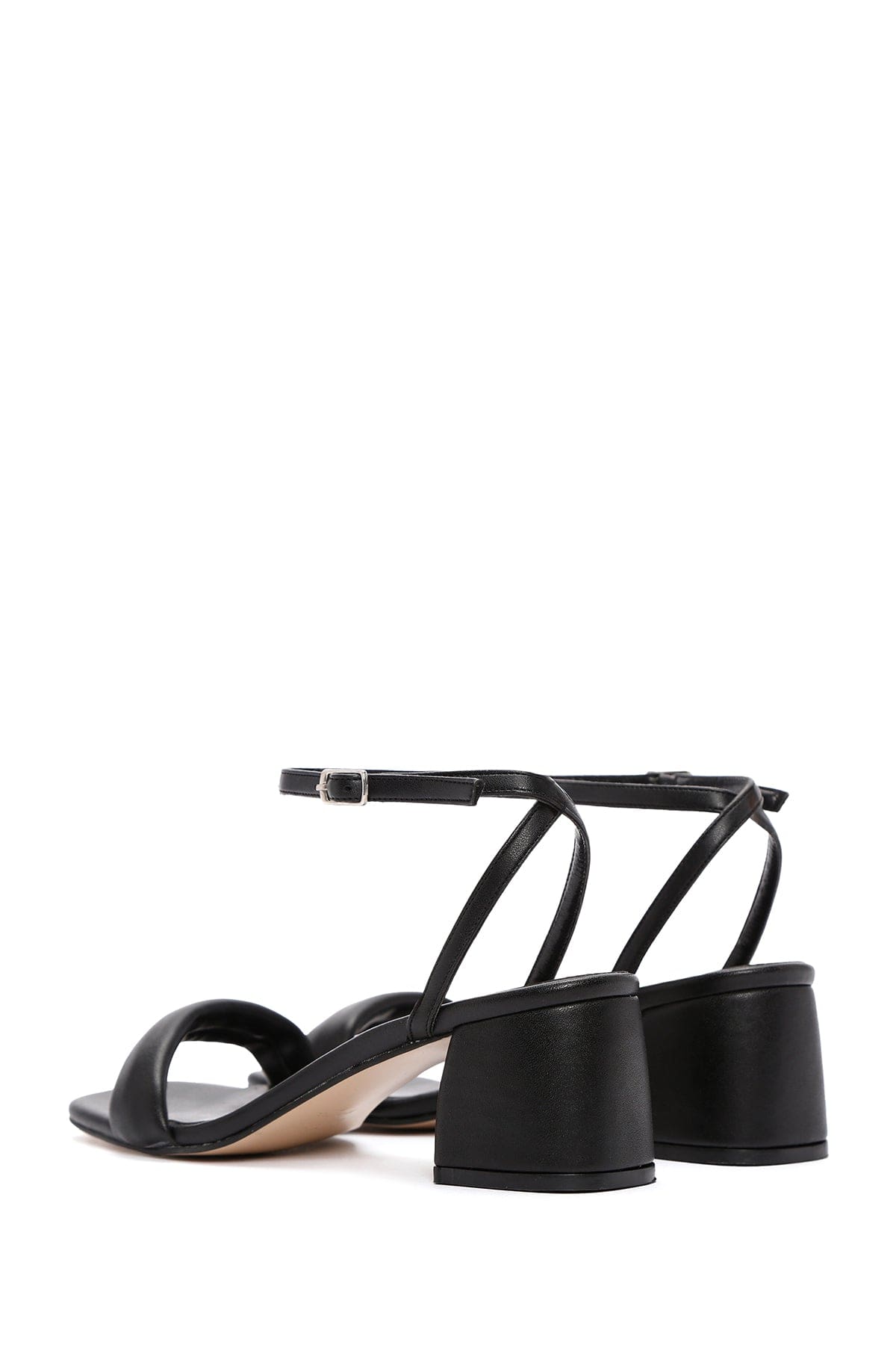 Kadın Siyah Bilekten Bantlı Kalın Topuklu Sandalet