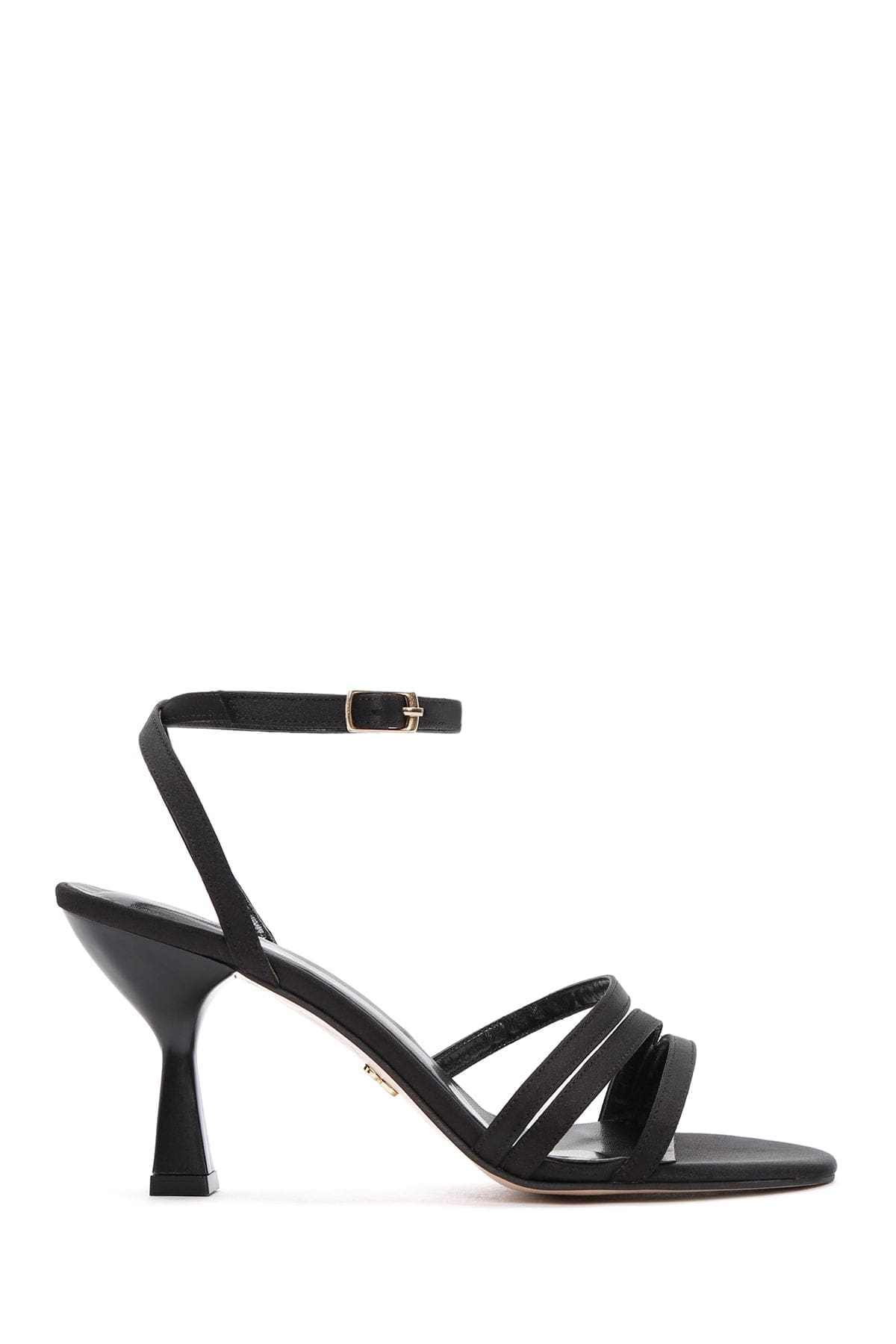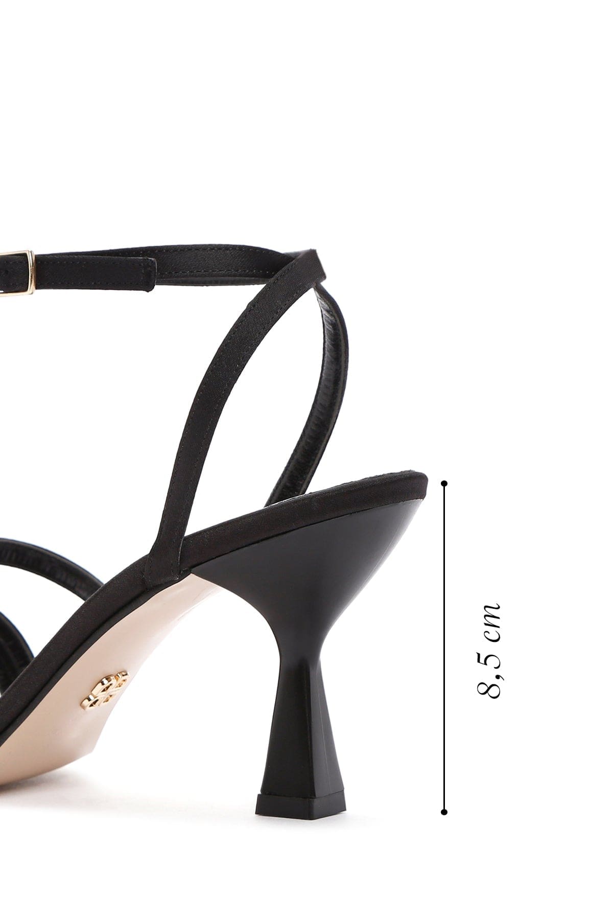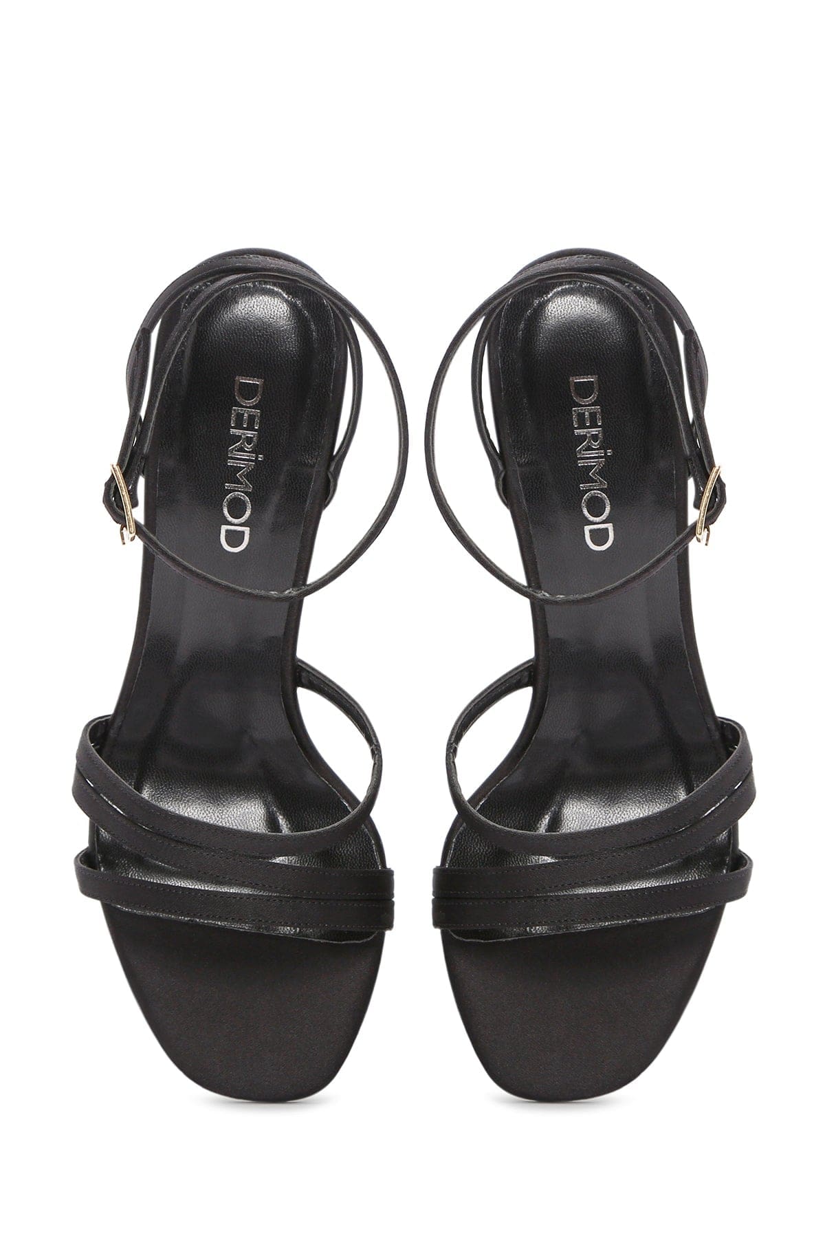 Kadın Siyah Bilekten Bantlı Topuklu Sandalet
