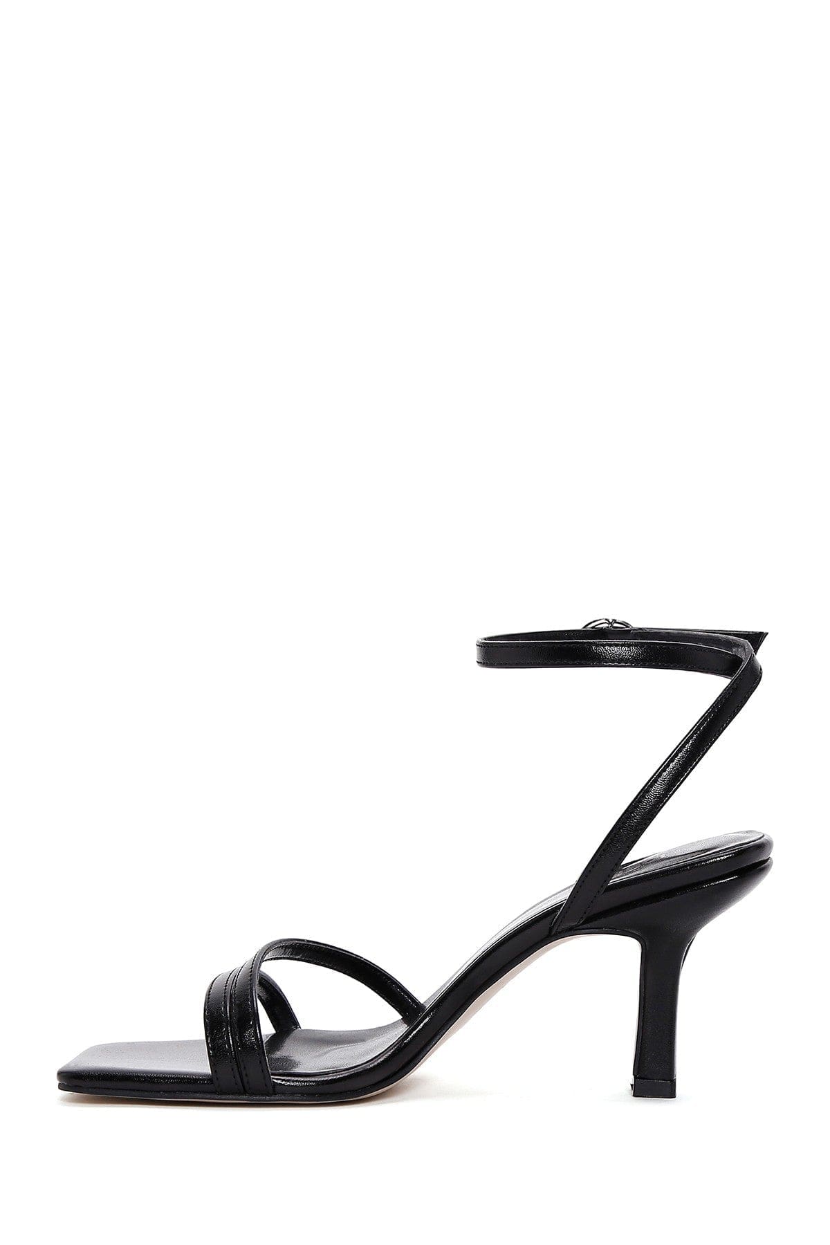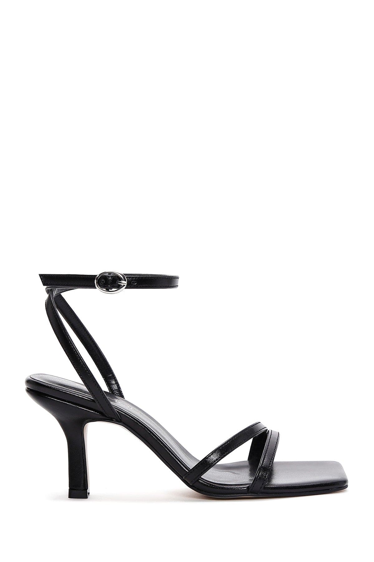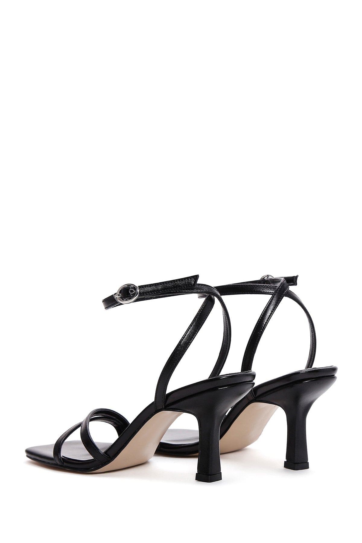 Kadın Siyah Bilekten Bantlı Topuklu Sandalet