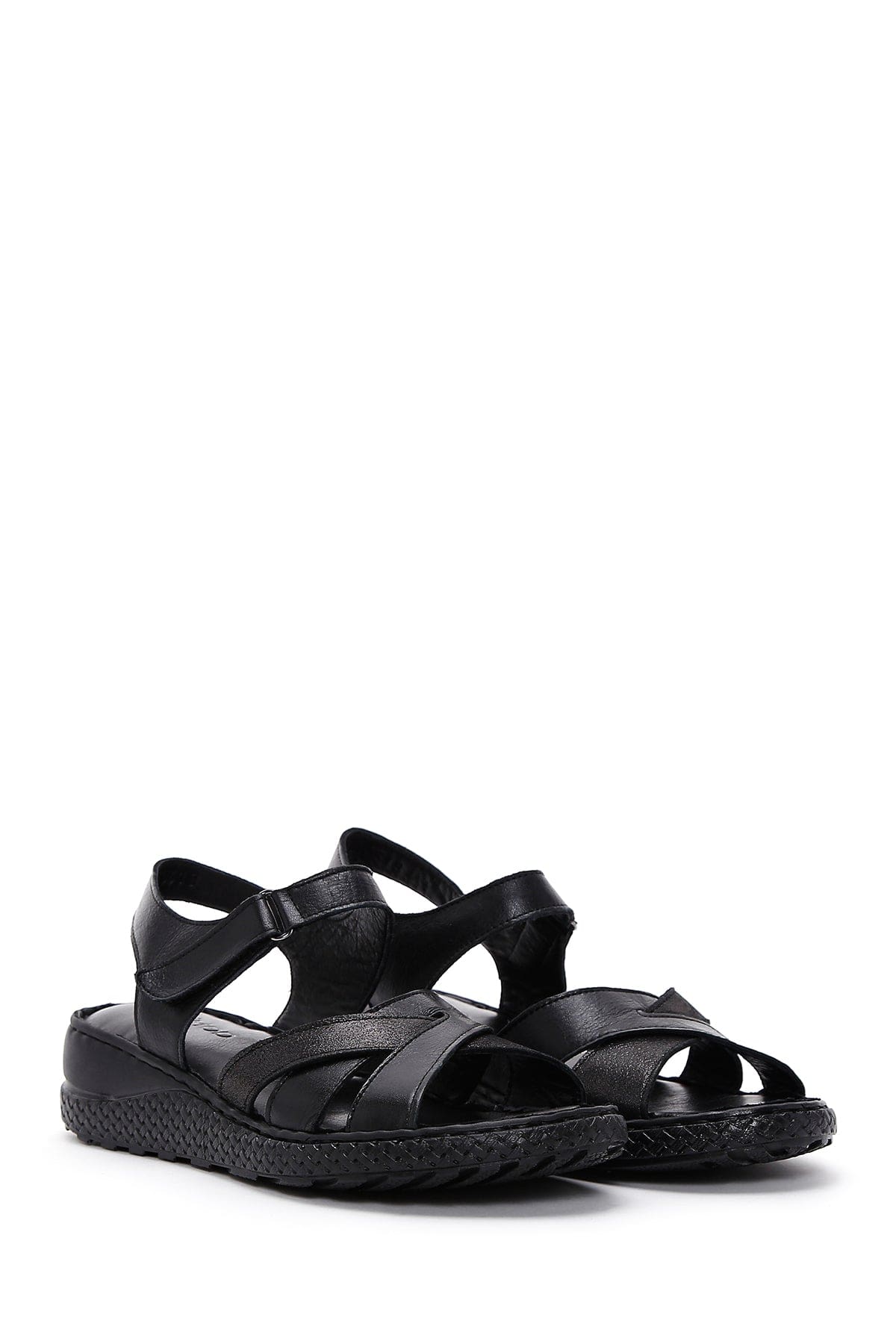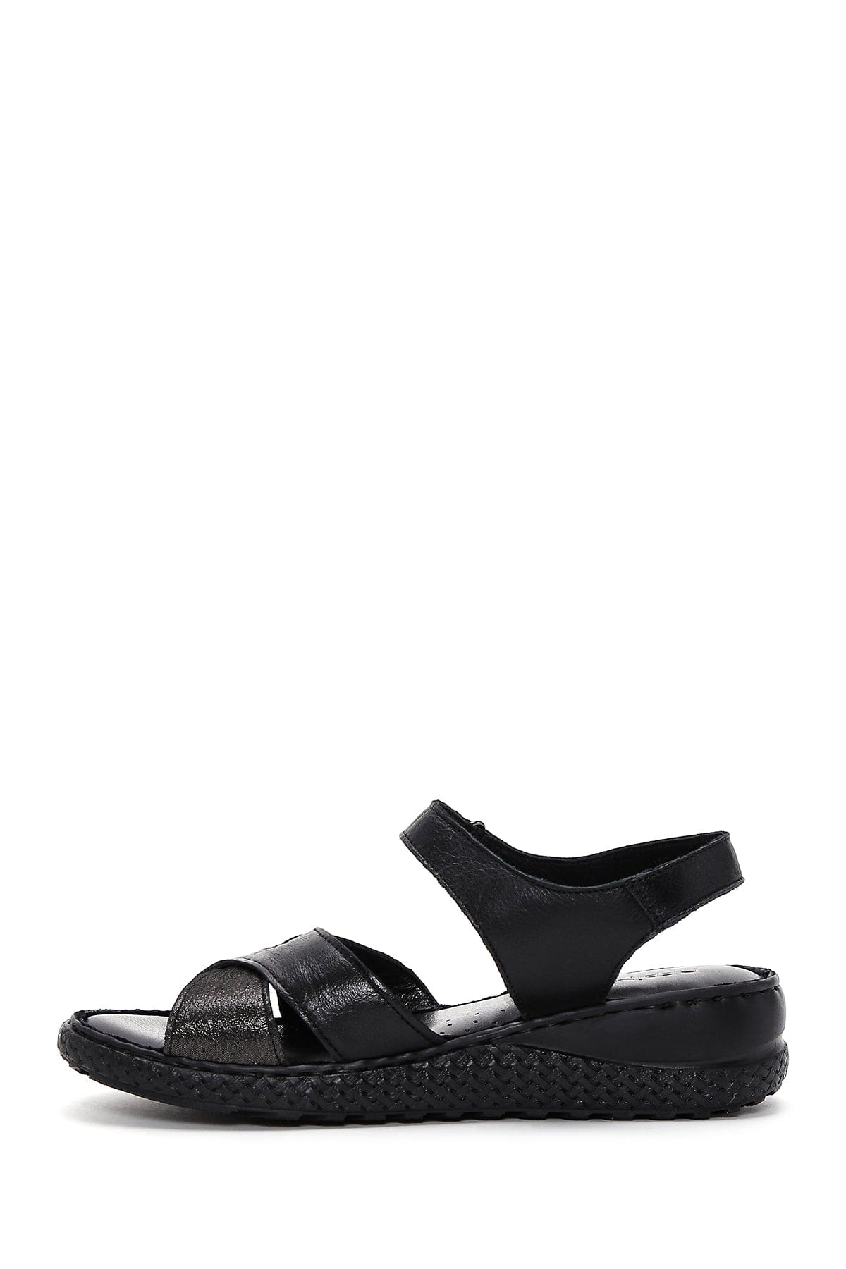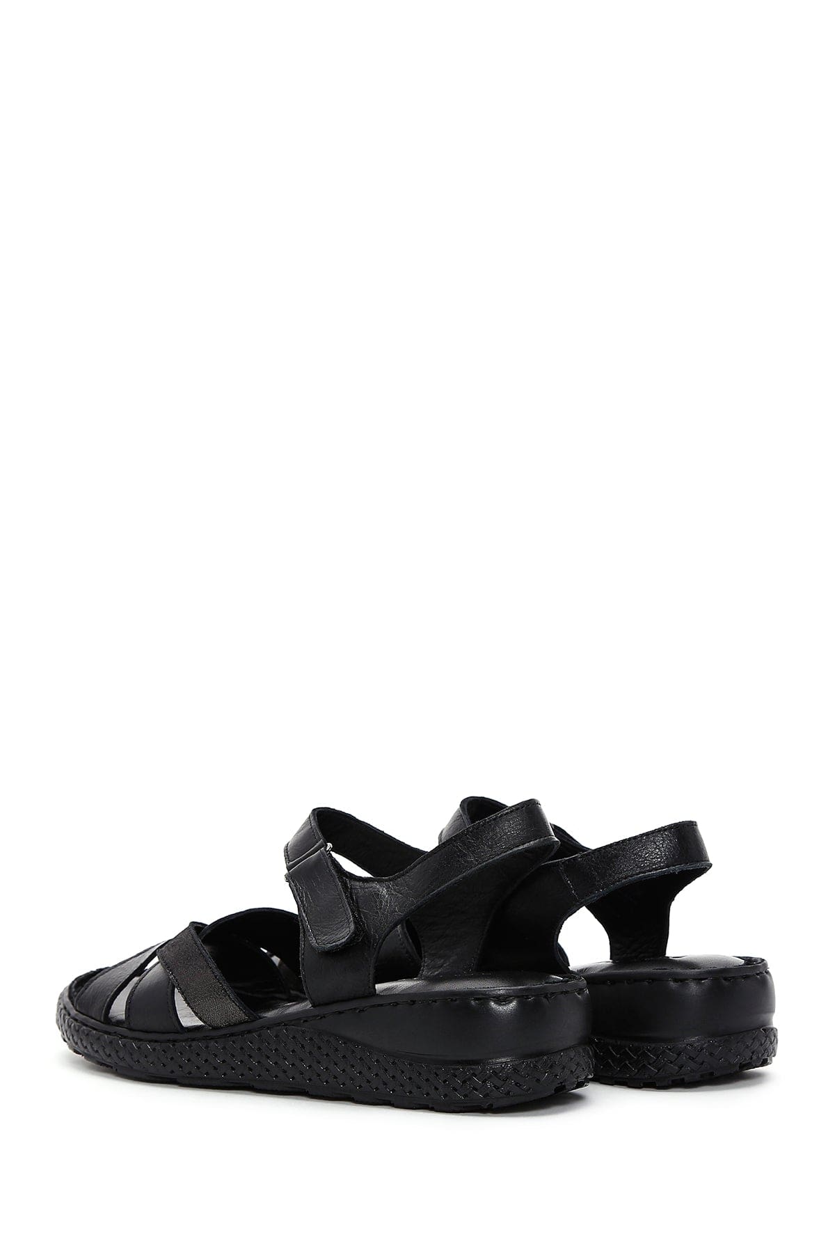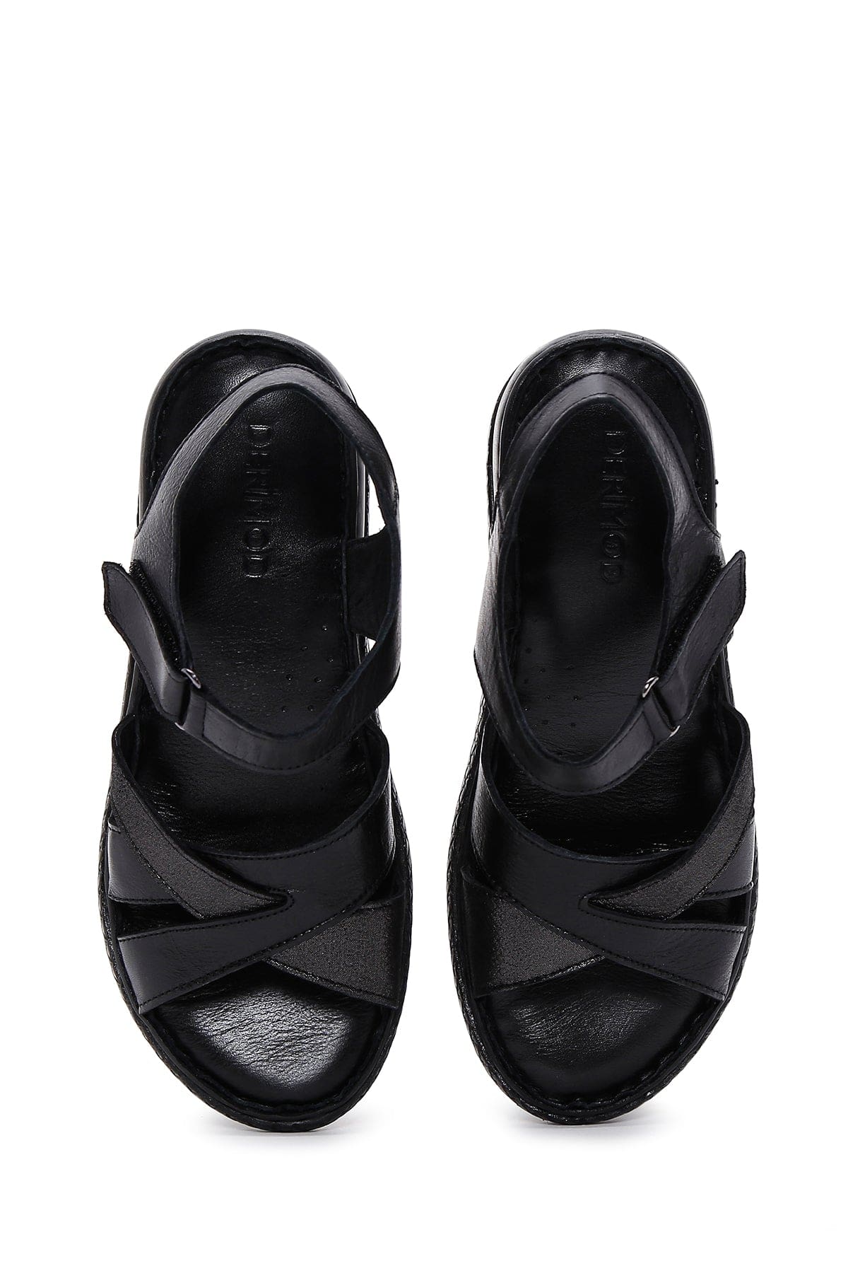 Kadın Siyah Bilekten Bantlı Deri Comfort Sandalet