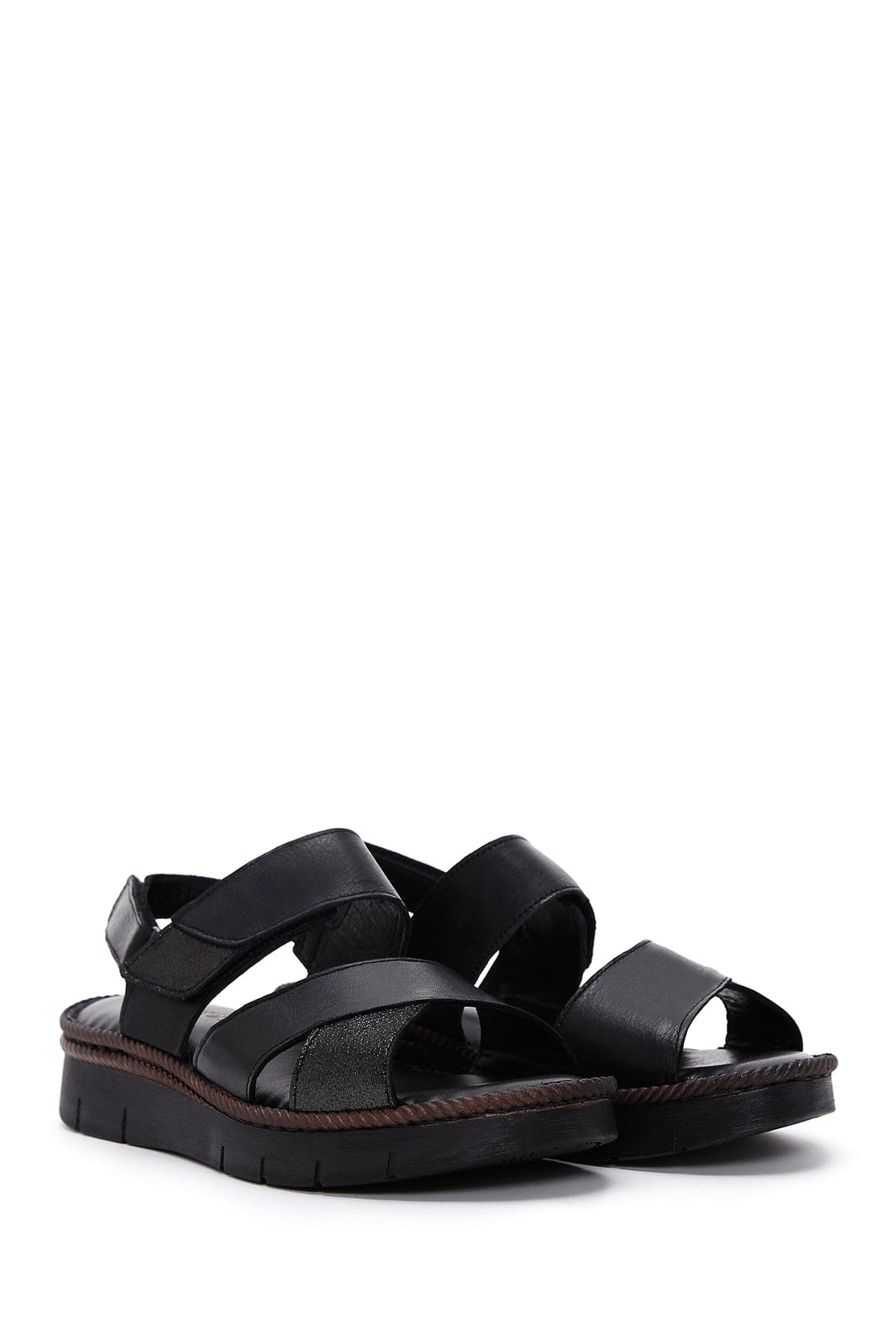 Kadın Siyah Bilekten Bantlı Deri Comfort Sandalet