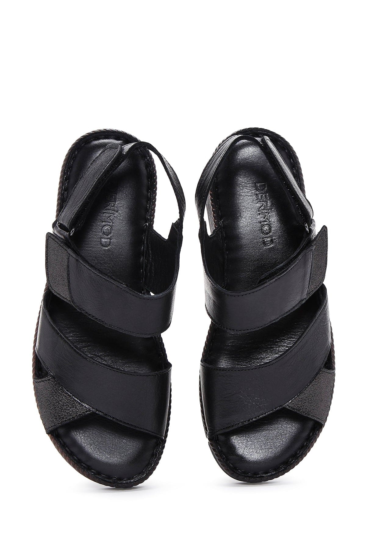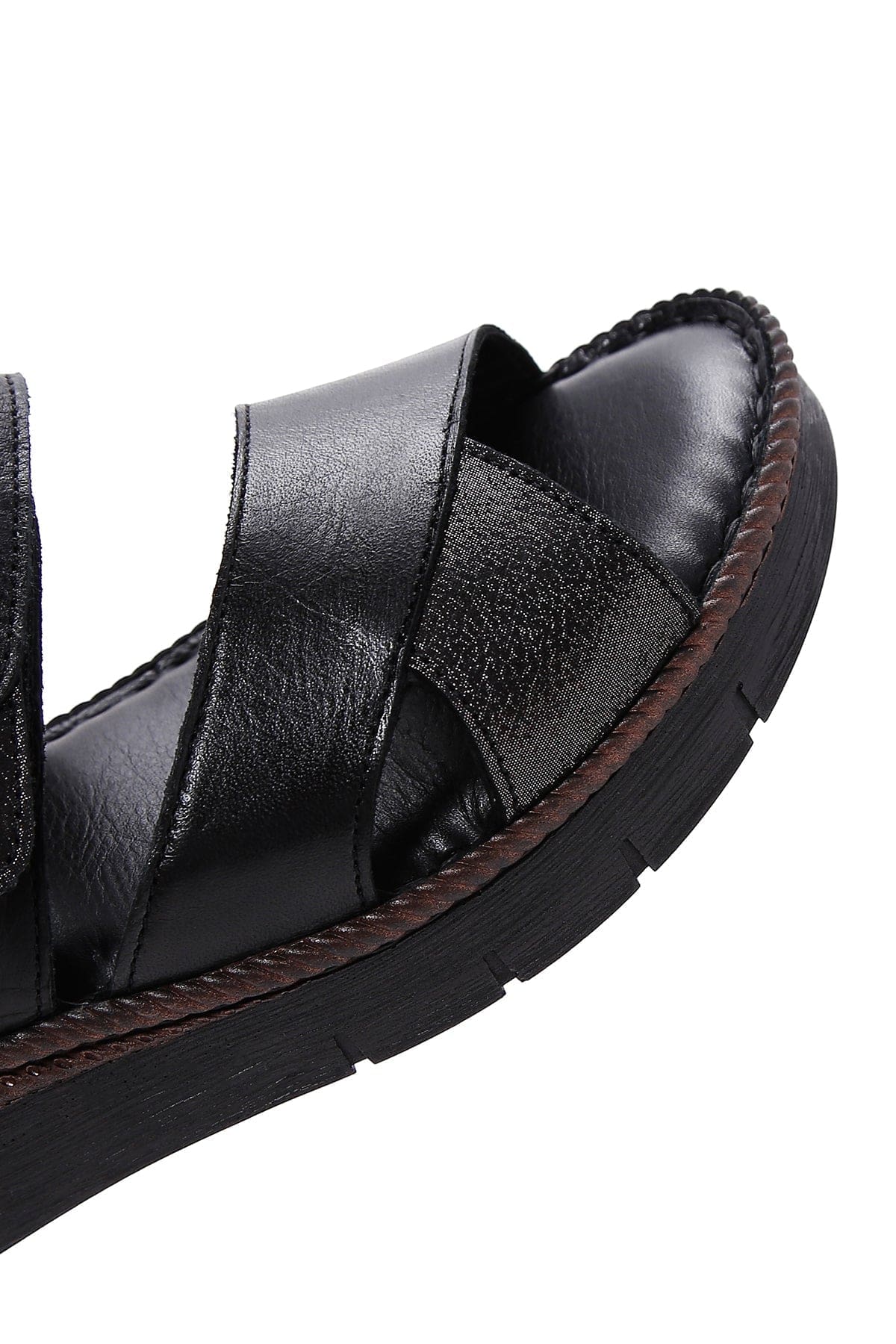 صندل زنانه مشکی بندی چرمی راحتی دری مد