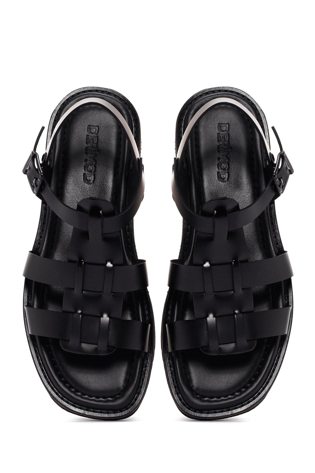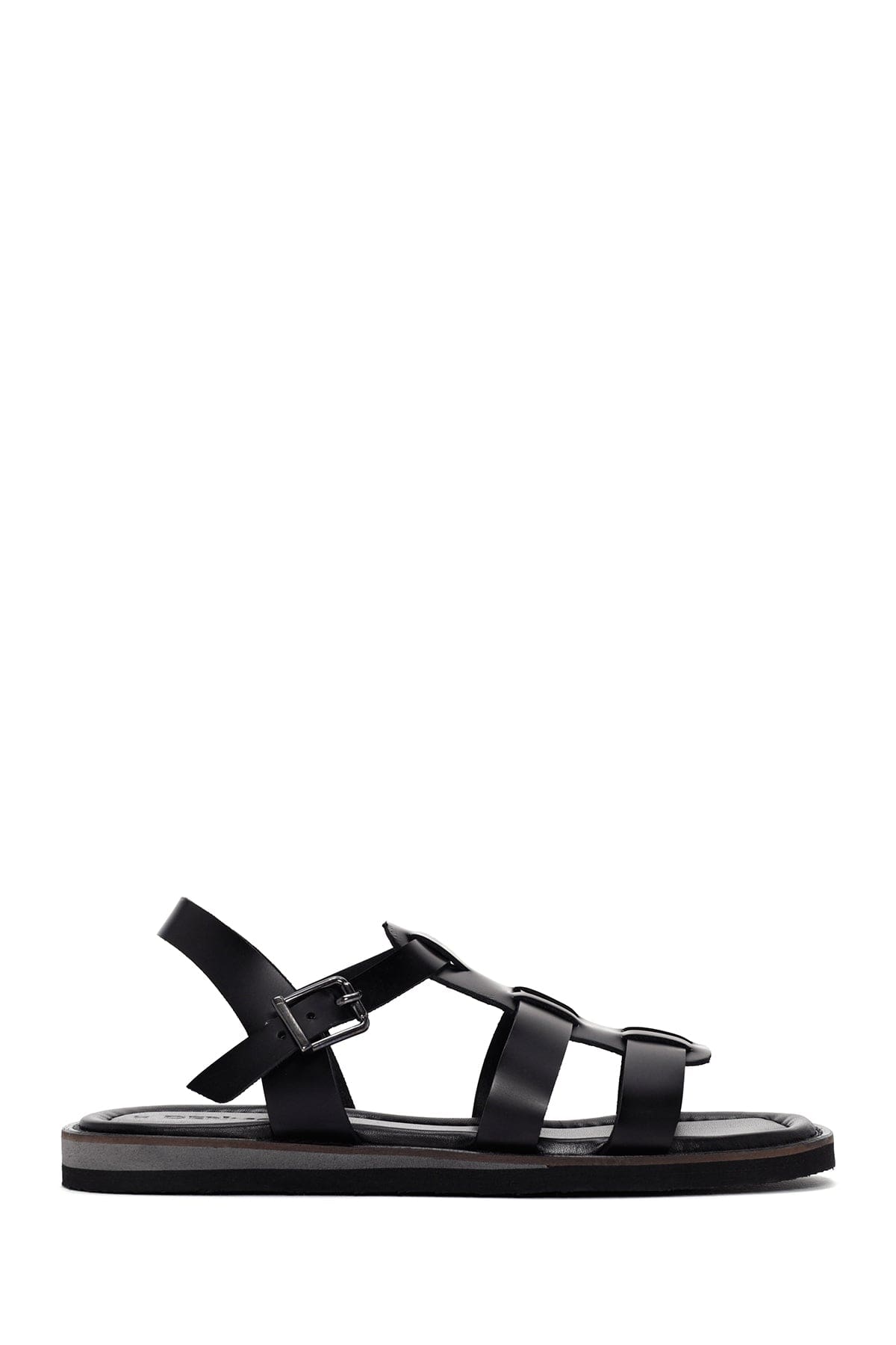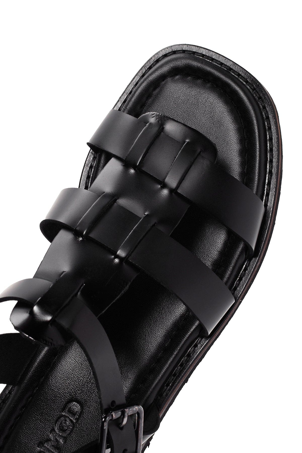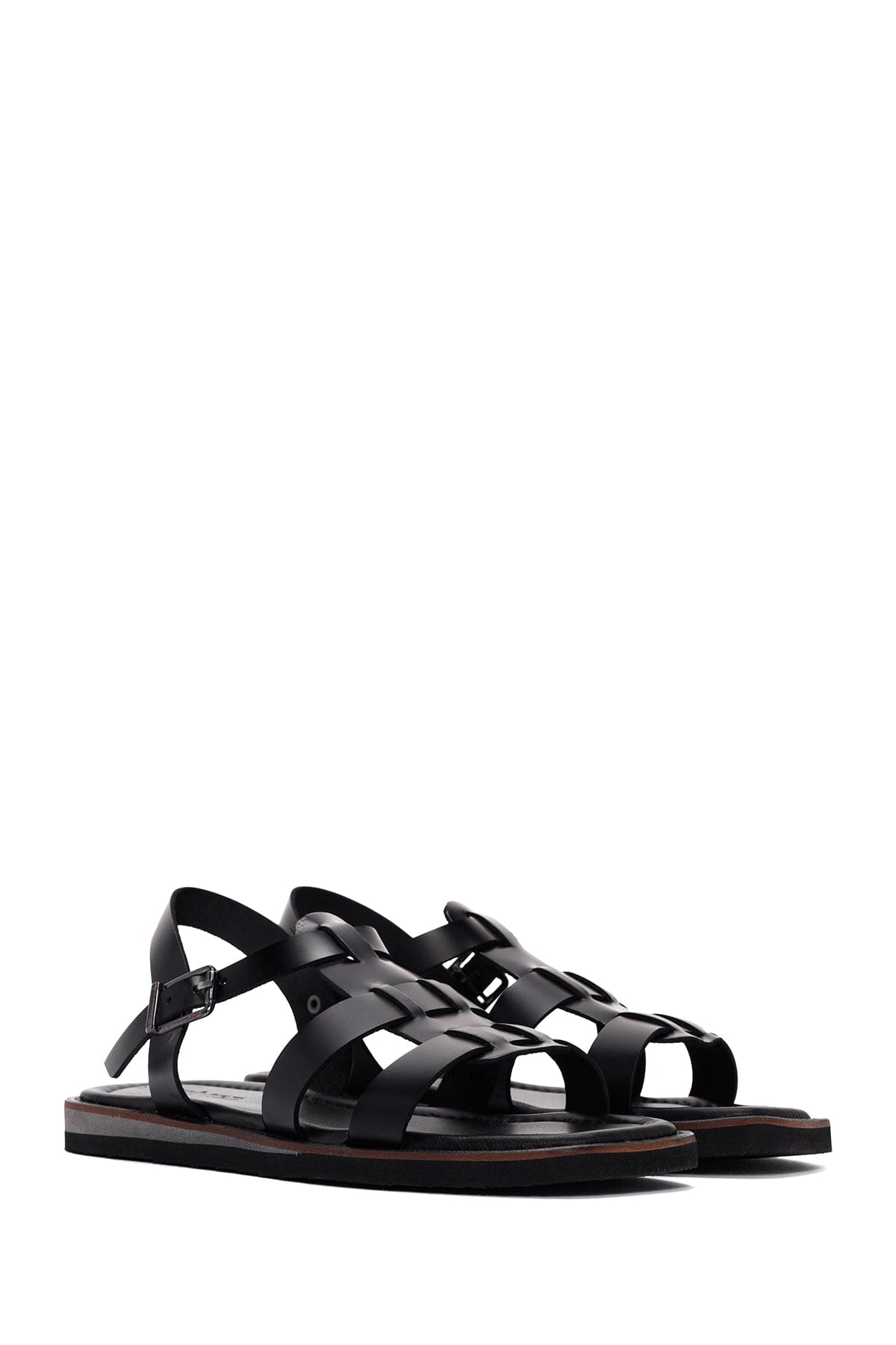 Kadın Siyah Bilekten Bantlı Deri Sandalet