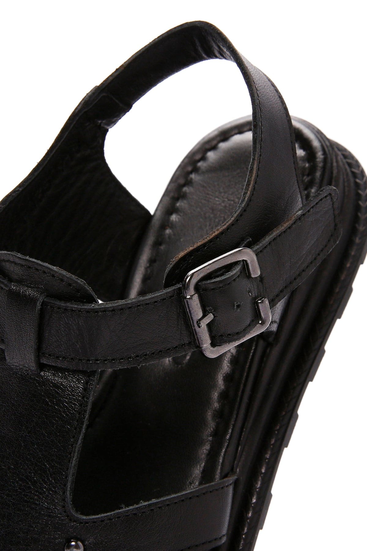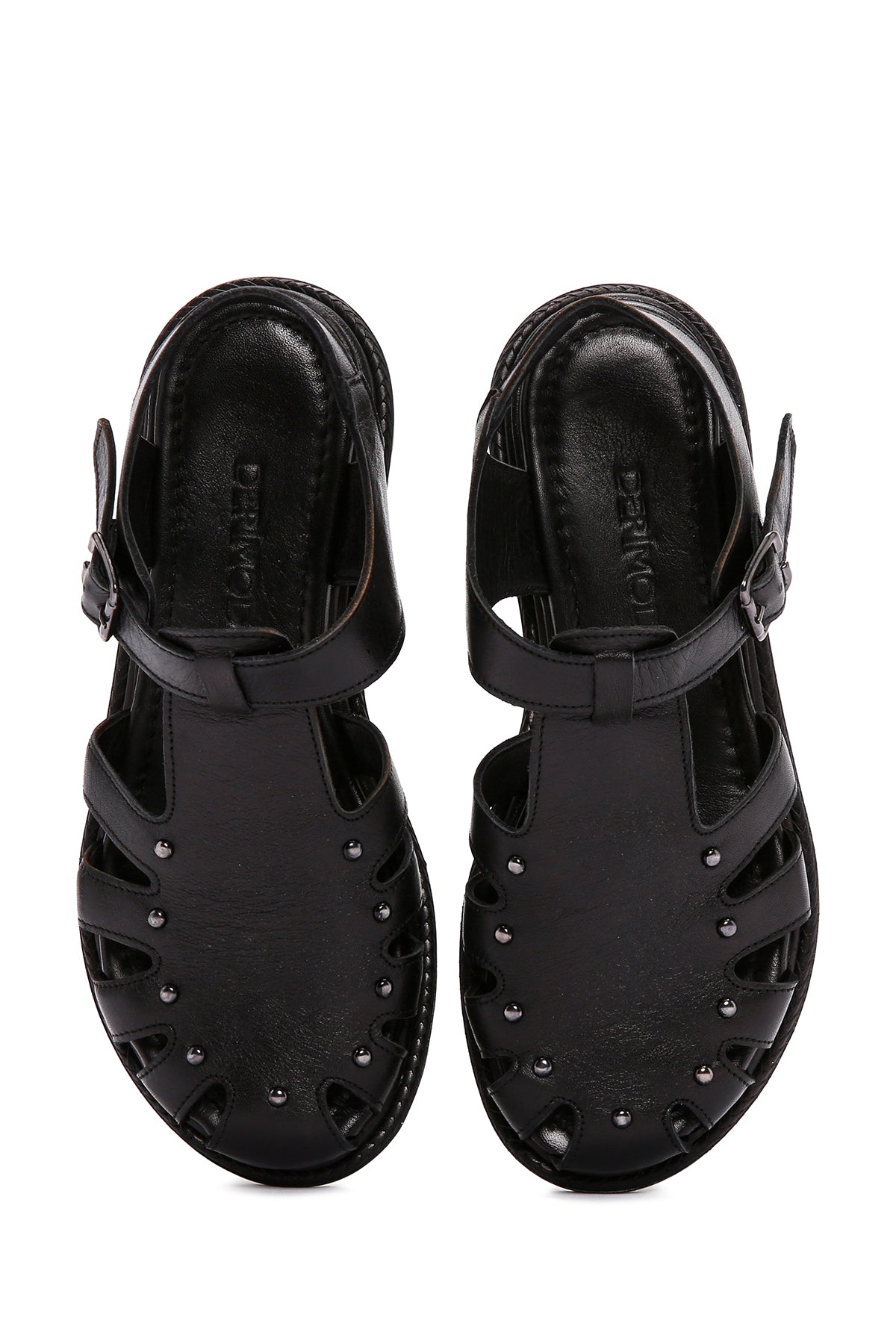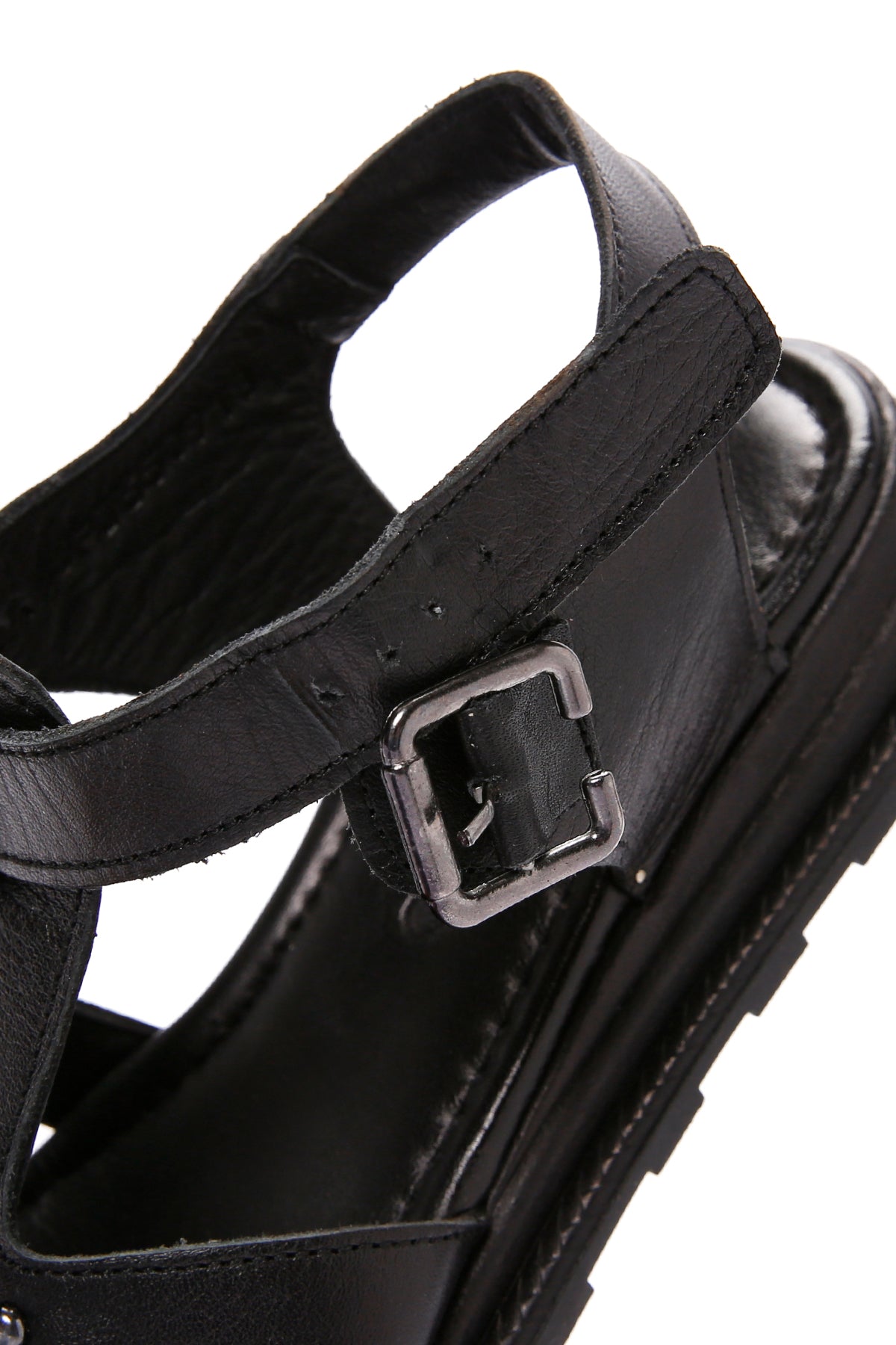 Kadın Siyah Bilekten Bantlı Deri Sandalet