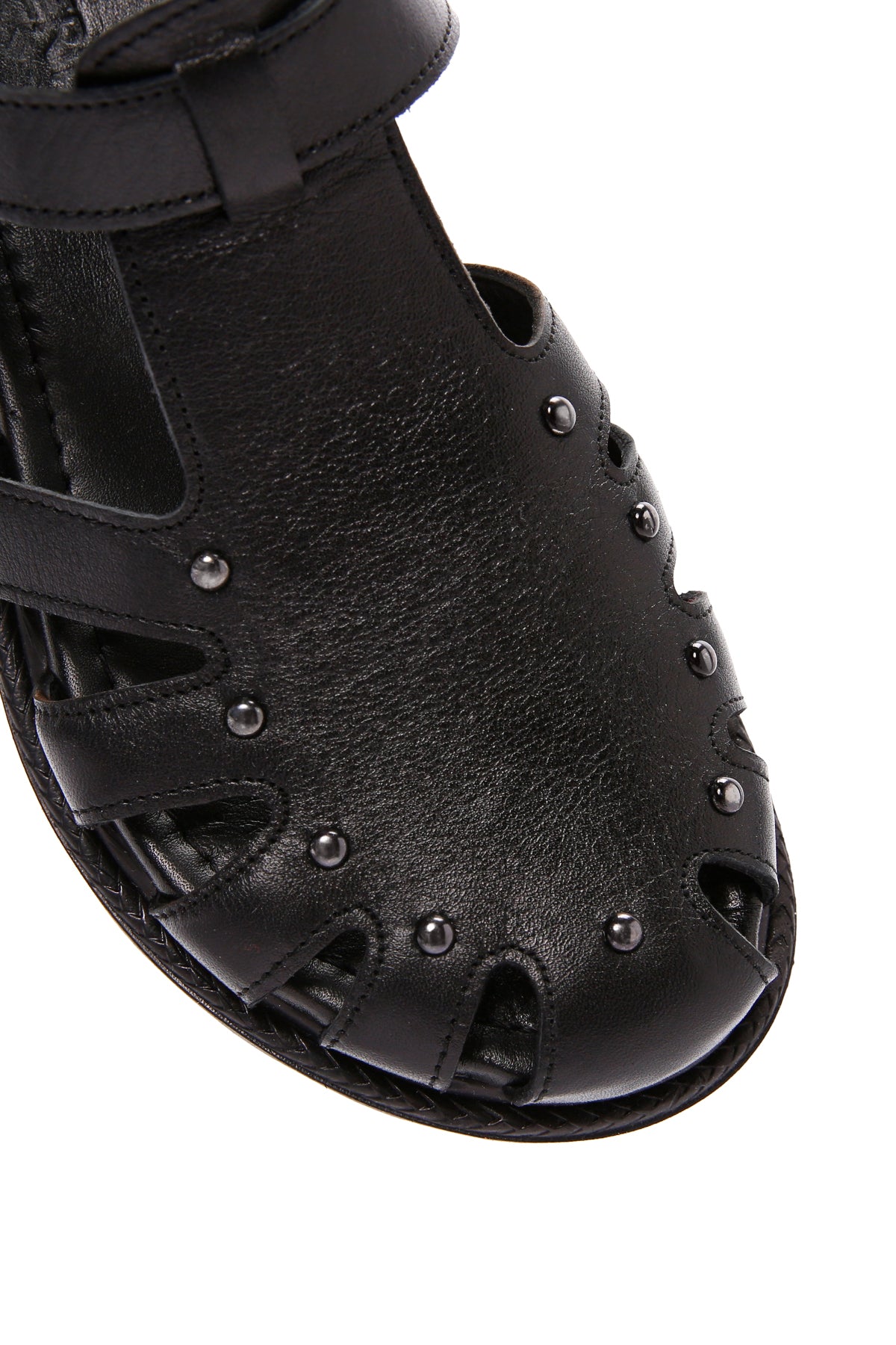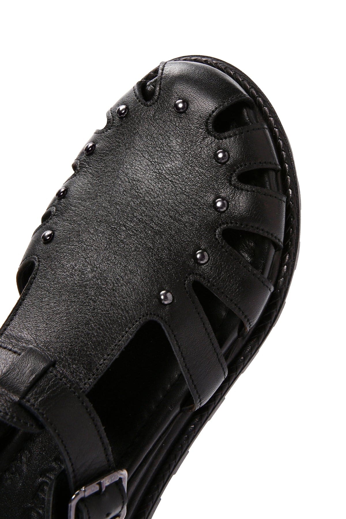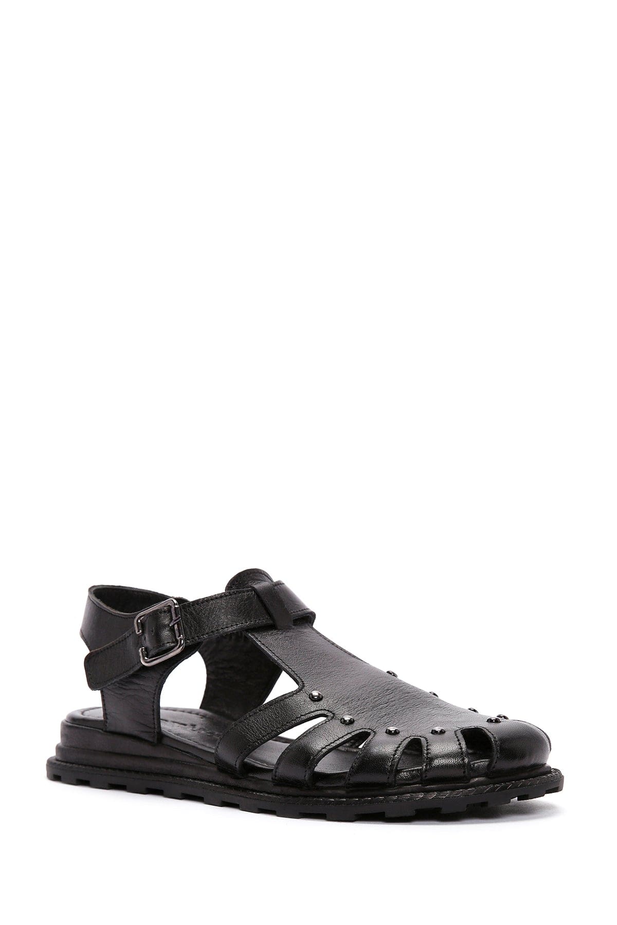 Kadın Siyah Bilekten Bantlı Deri Sandalet
