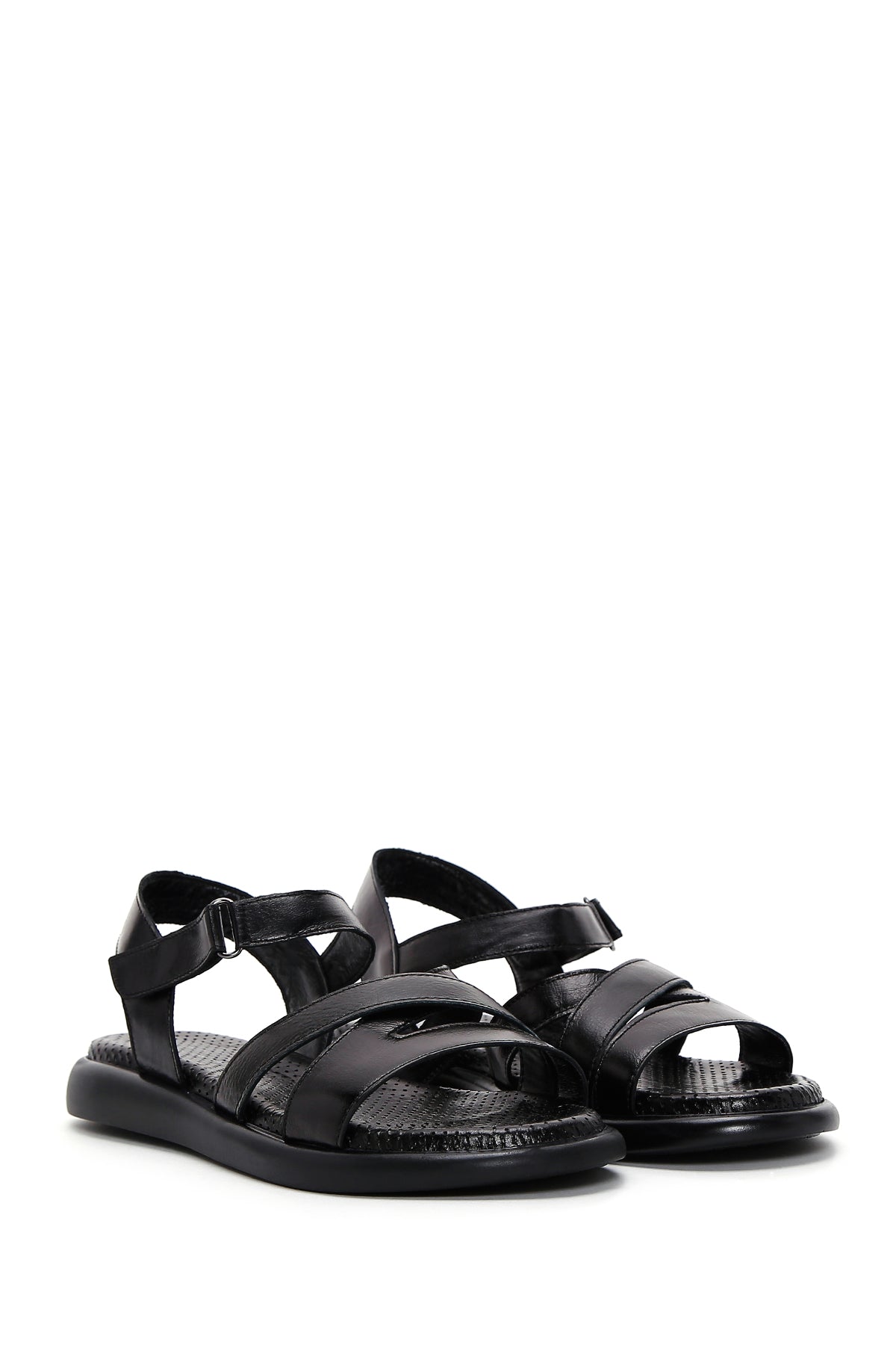 Kadın Siyah Bilekten Bantlı Deri Sandalet