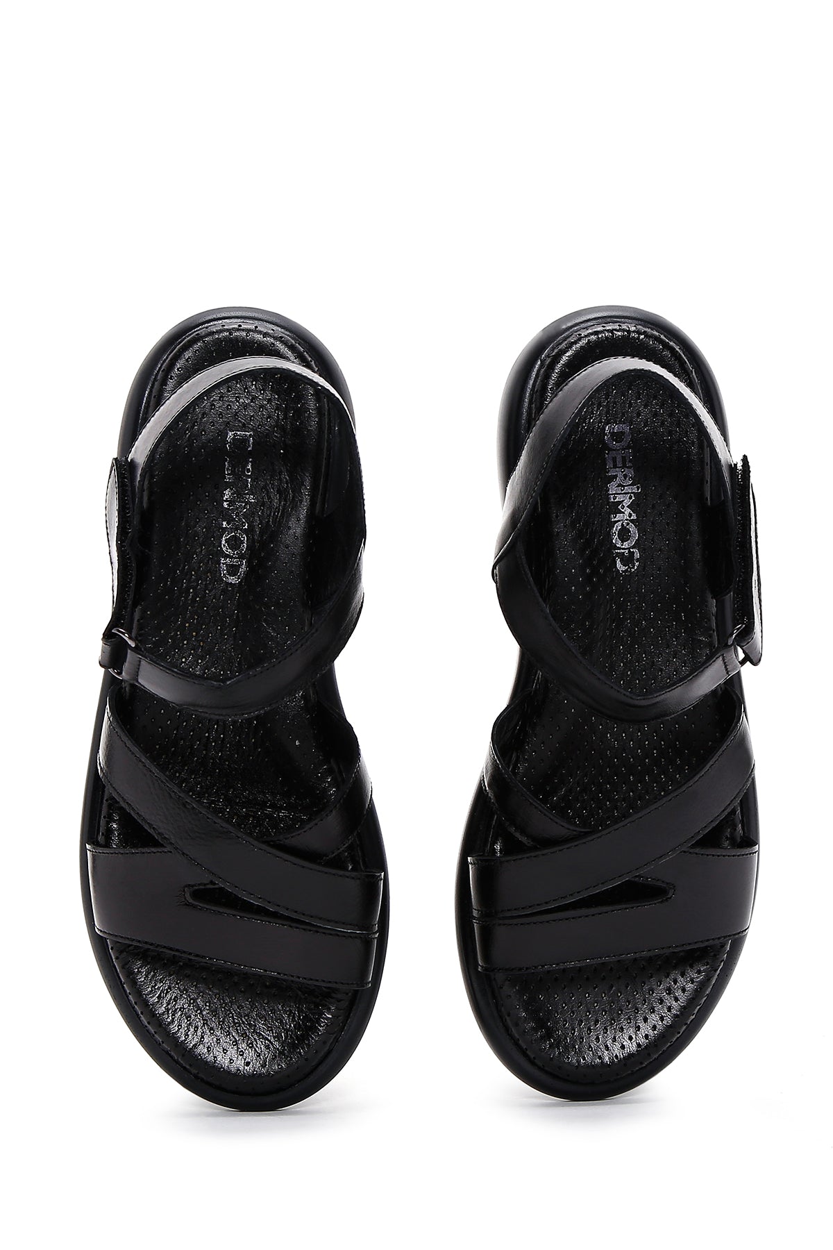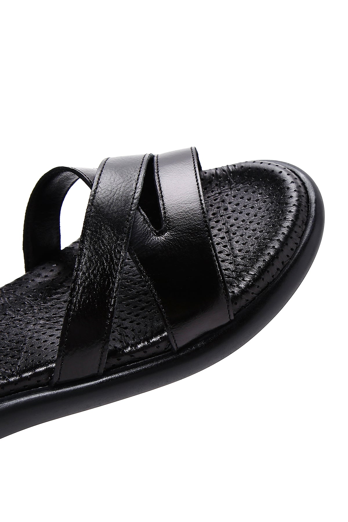 صندل زنانه مشکی بندی چرمی دری مد