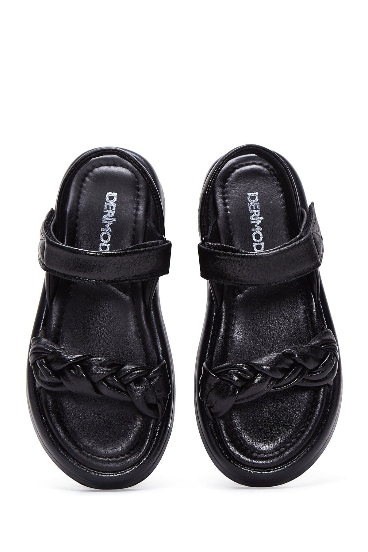 Kadın Siyah Bilekten Bantlı Deri Sandalet
