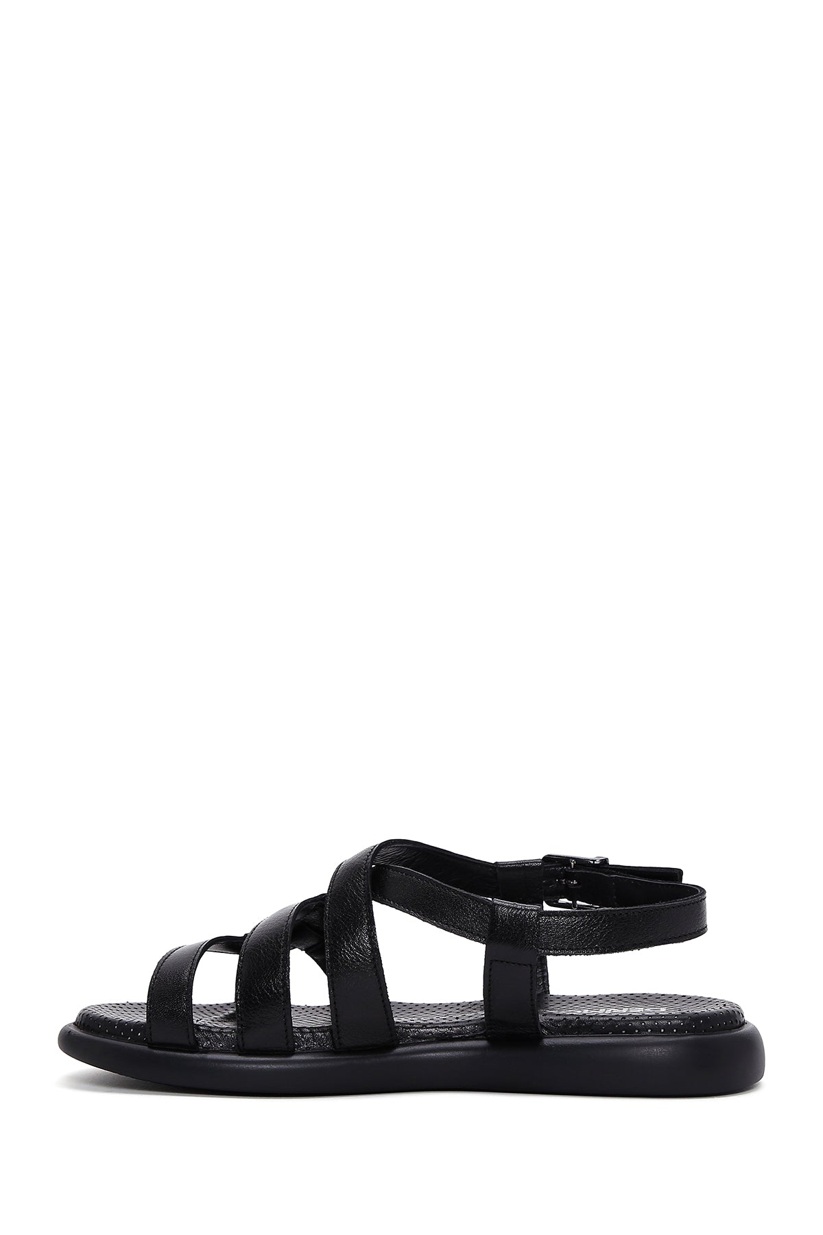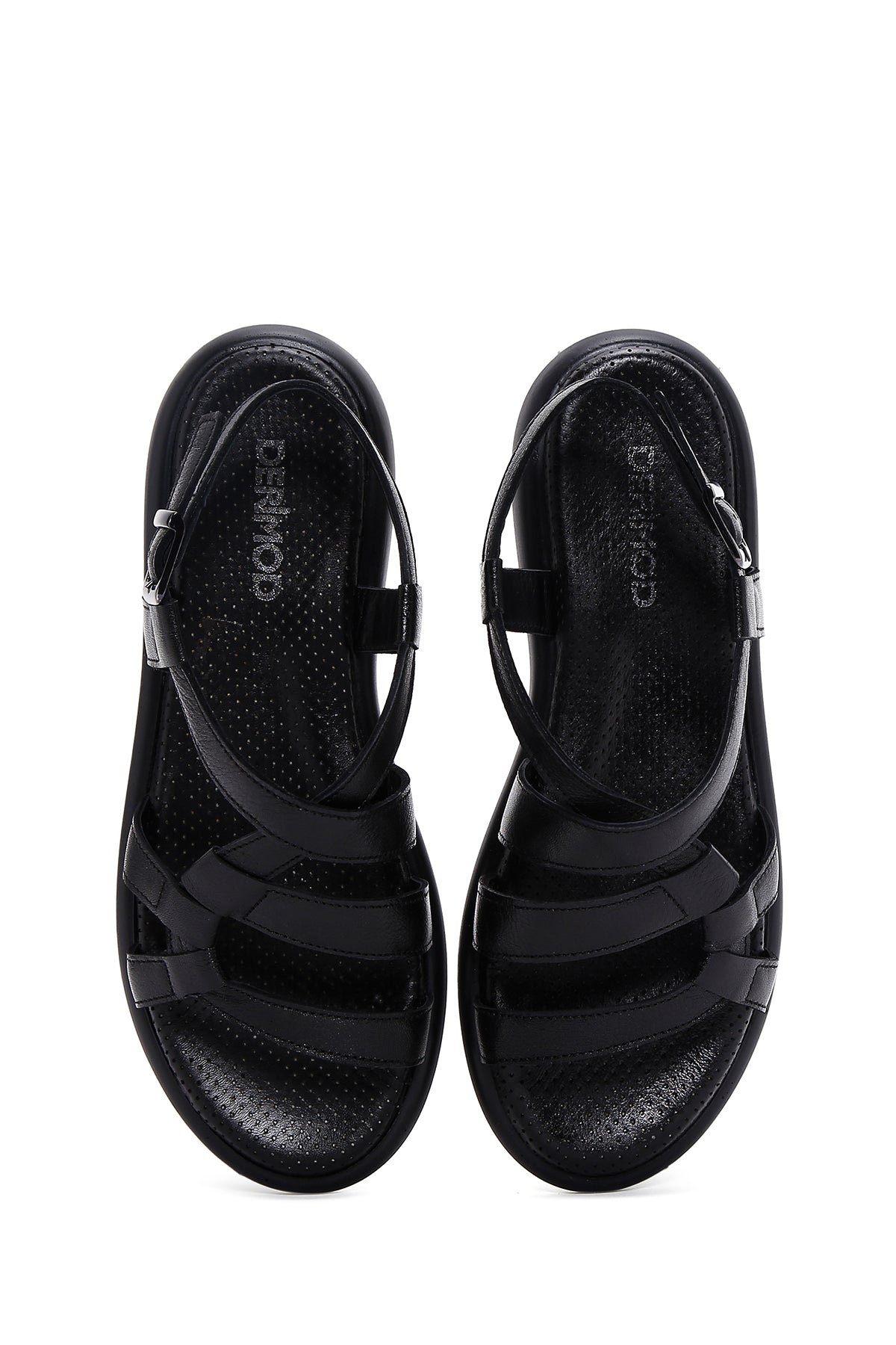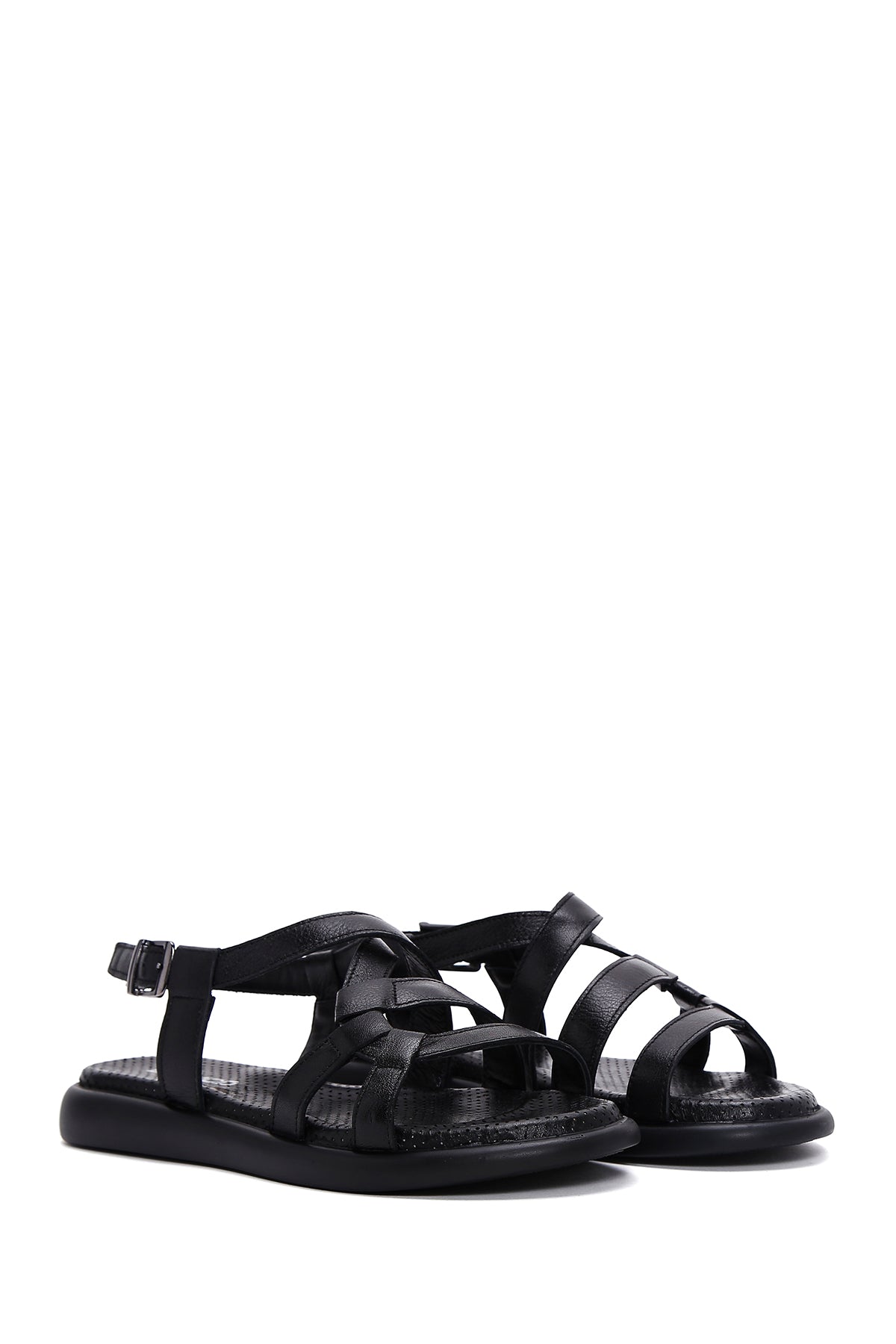 Kadın Siyah Bilekten Tokalı Deri Sandalet