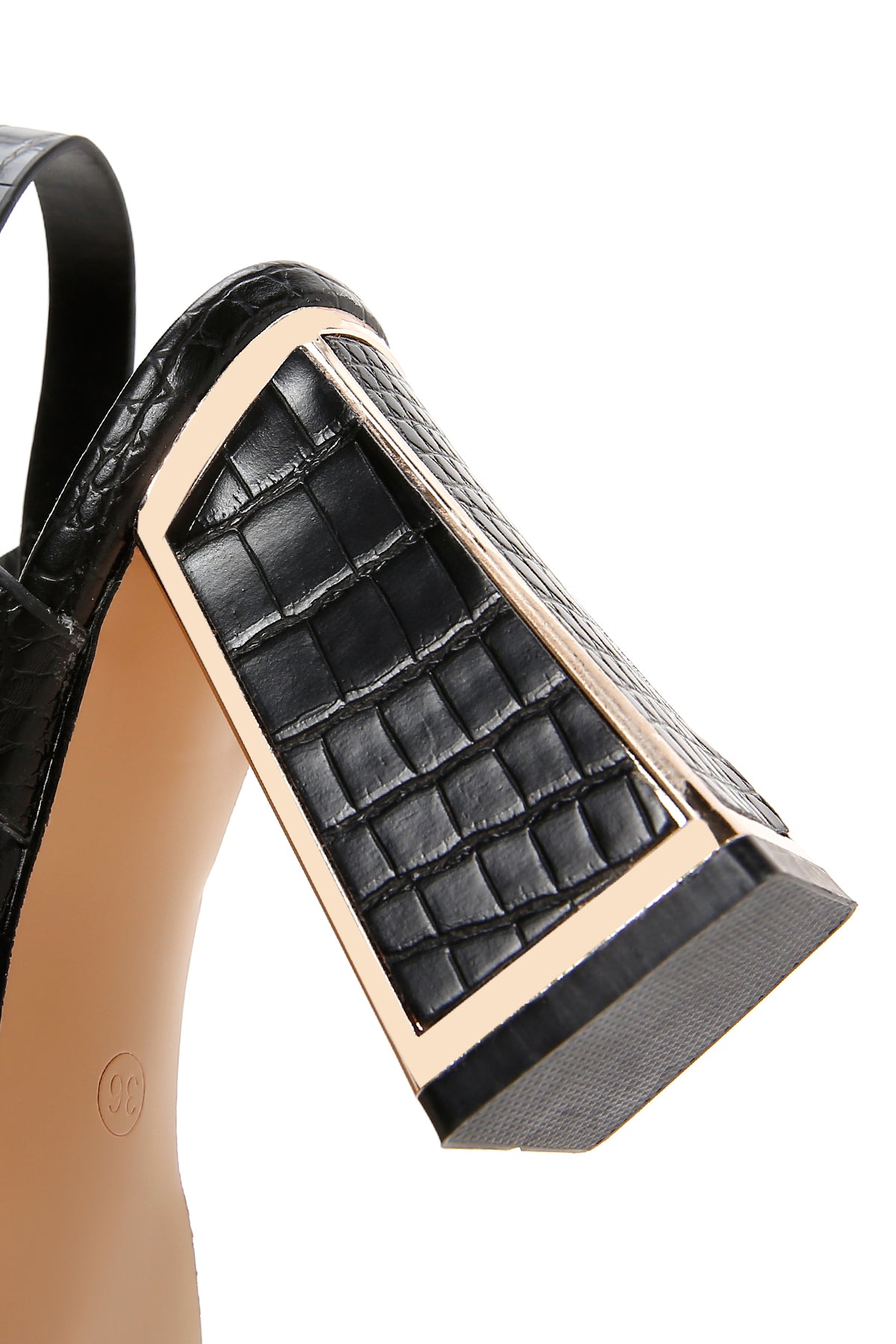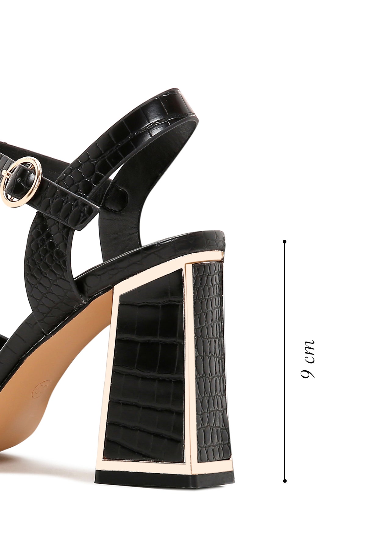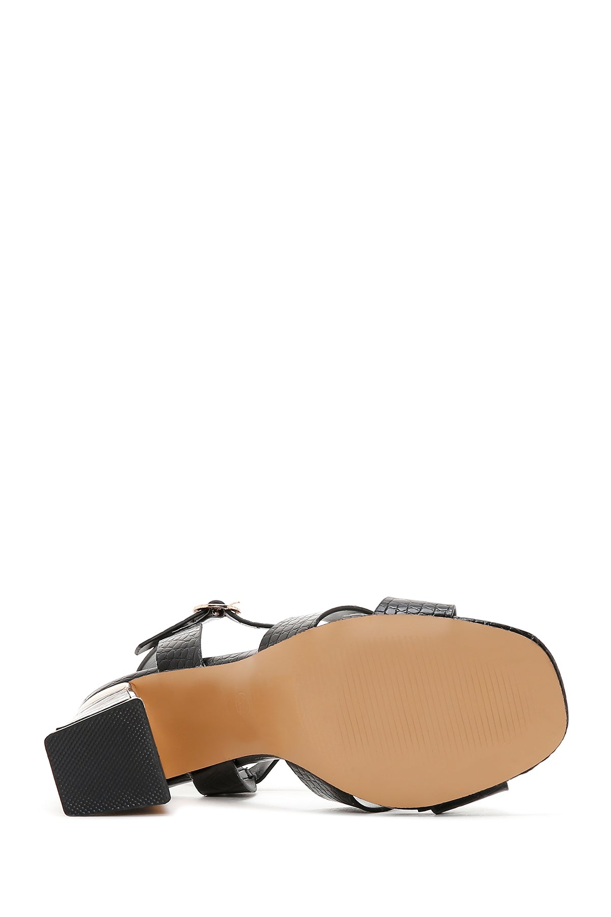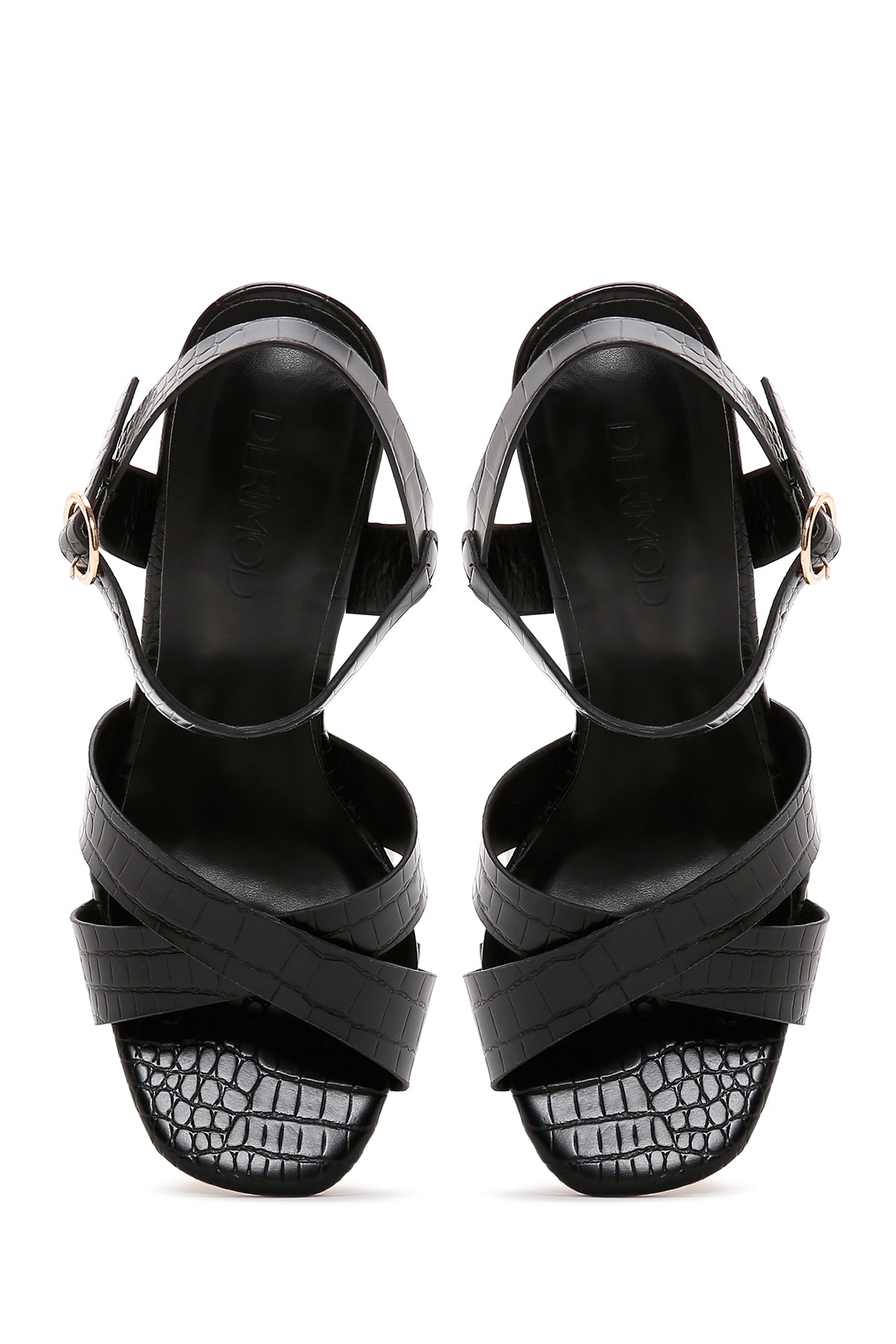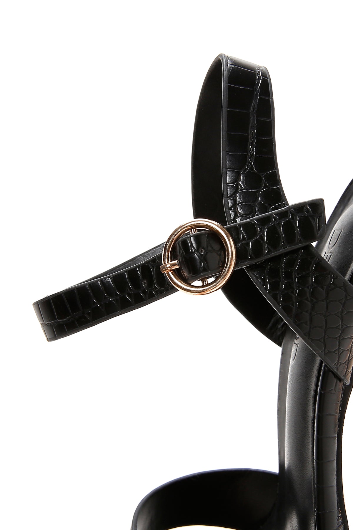 Kadın Siyah Bilekten Bantlı Kalın Topuklu Kroko Sandalet