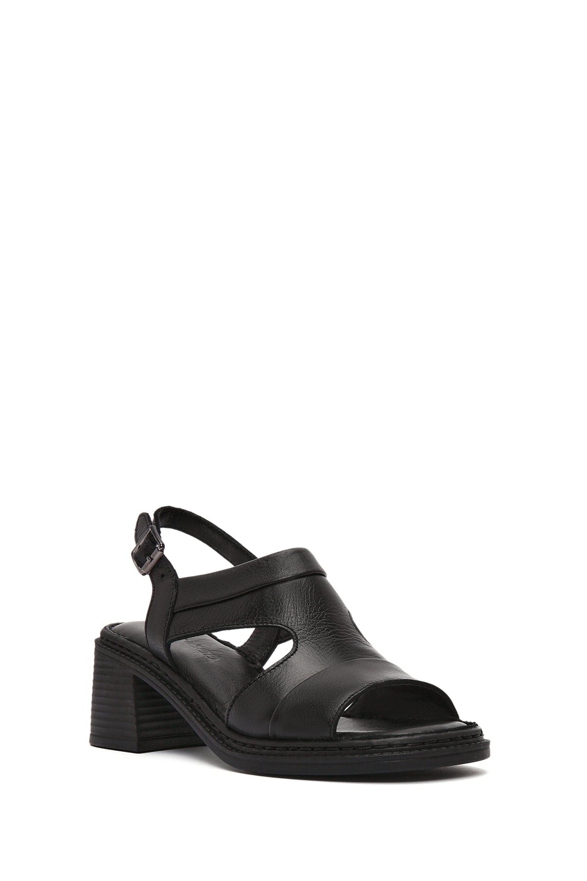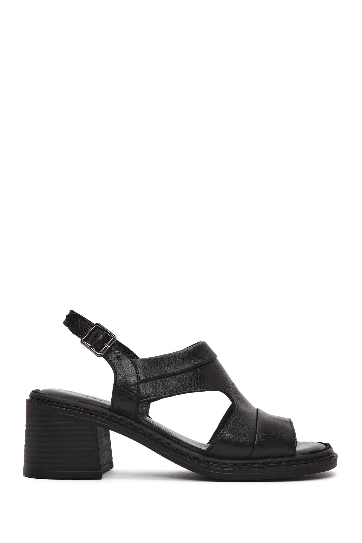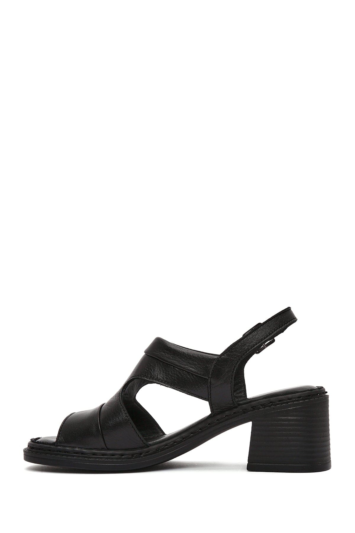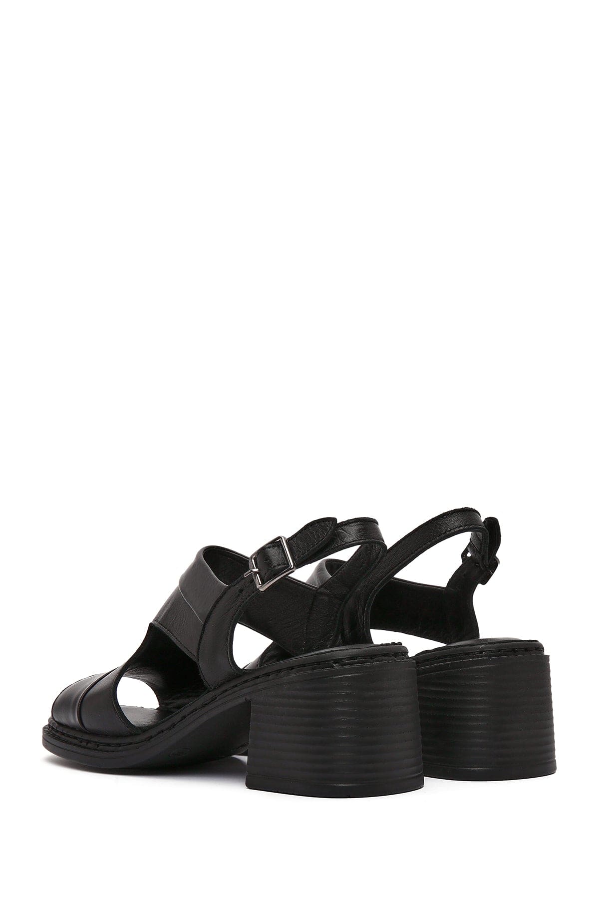 Kadın Siyah Bilekten Bantlı Kalın Topuklu Deri Sandalet