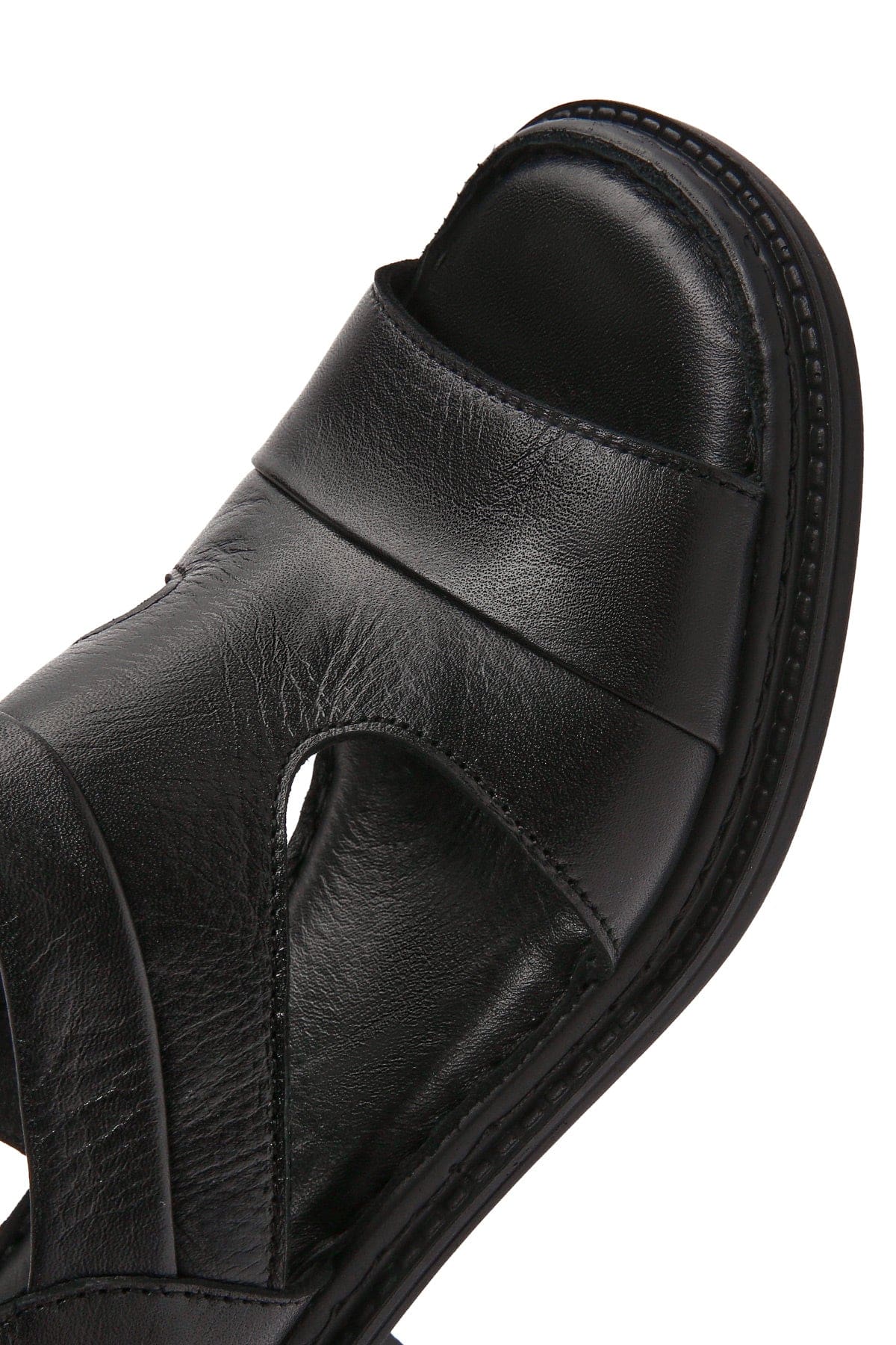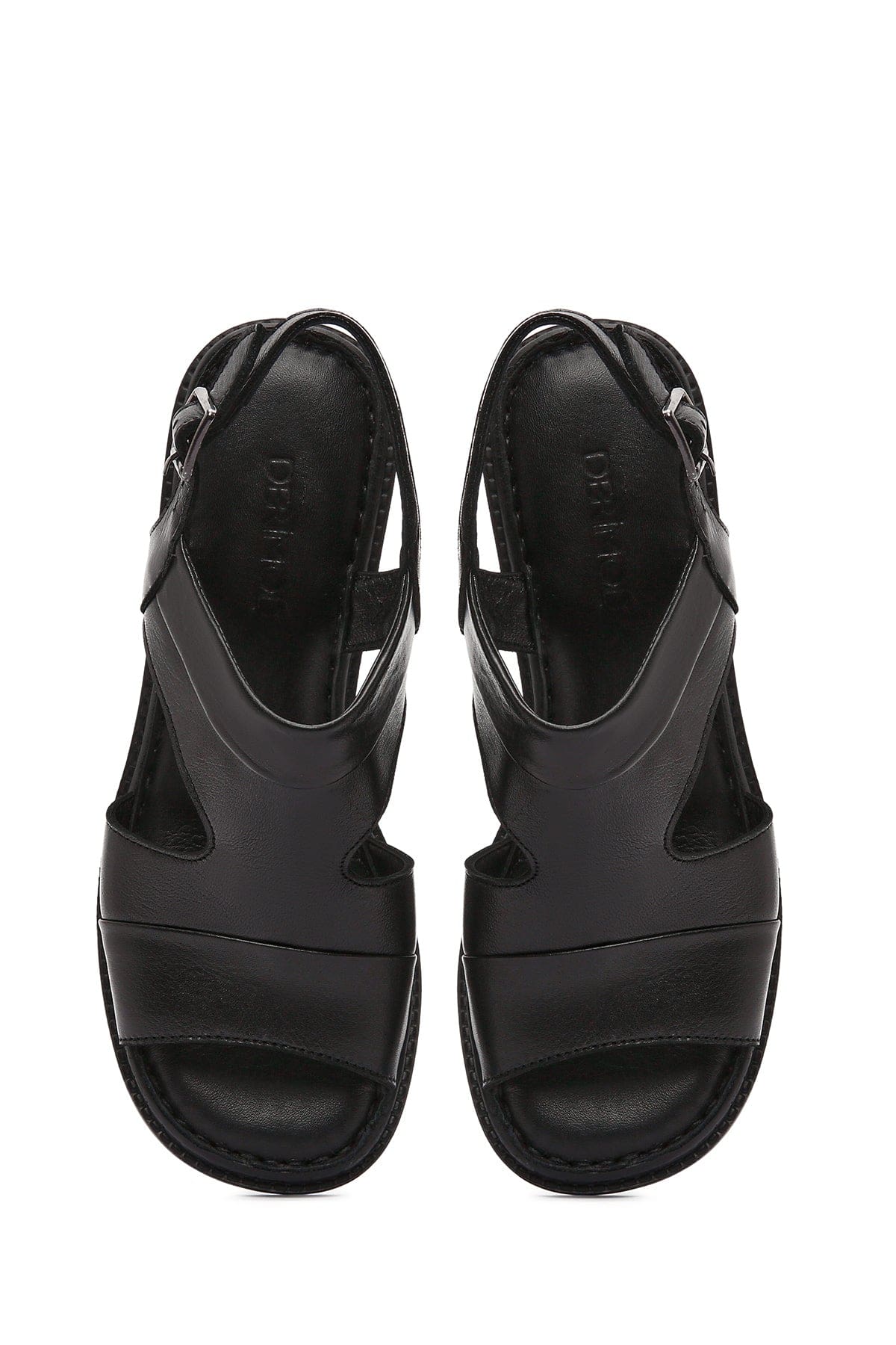 صندل زنانه مشکی بندی پاشنهبلند ضخیم چرمی دری مد