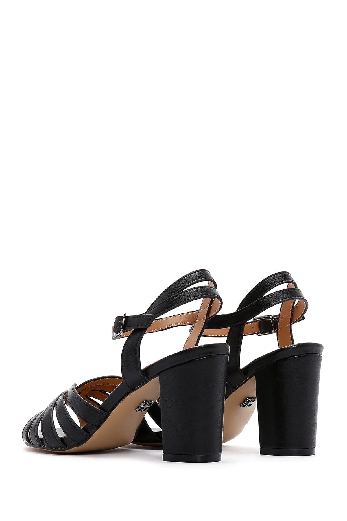Kadın Siyah Bilekten Bantlı Kalın Topuklu Sandalet