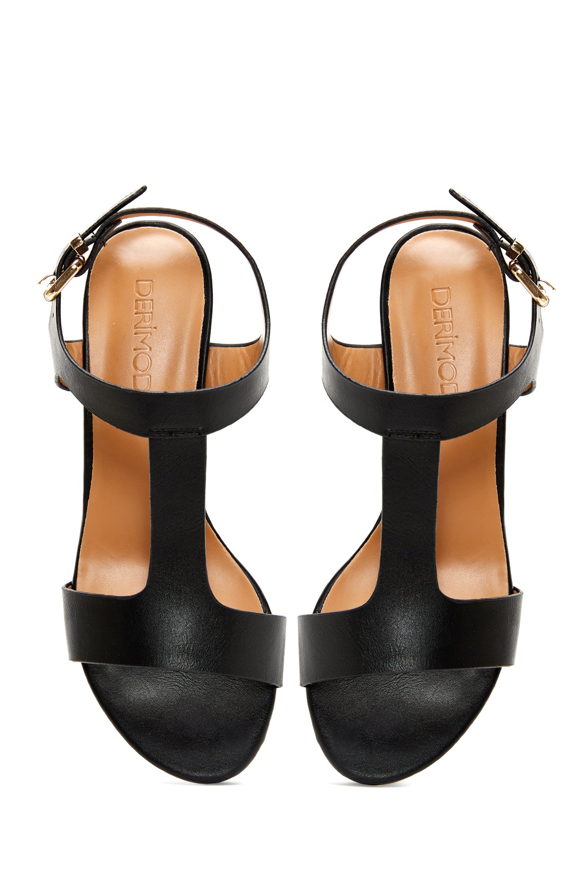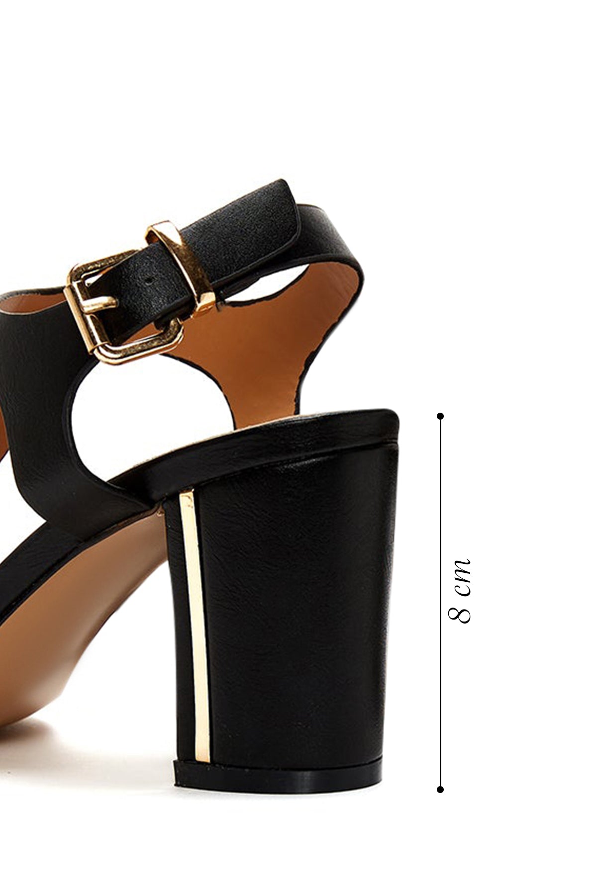 Kadın Siyah Bilekten Bantlı Kalın Topuklu Sandalet