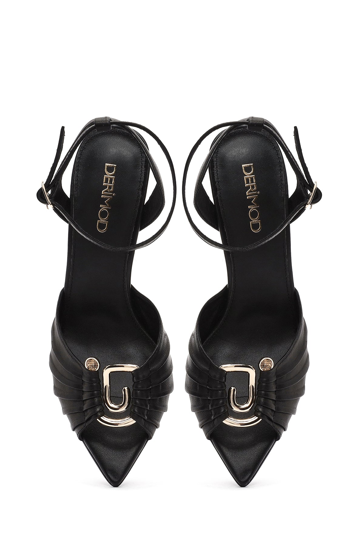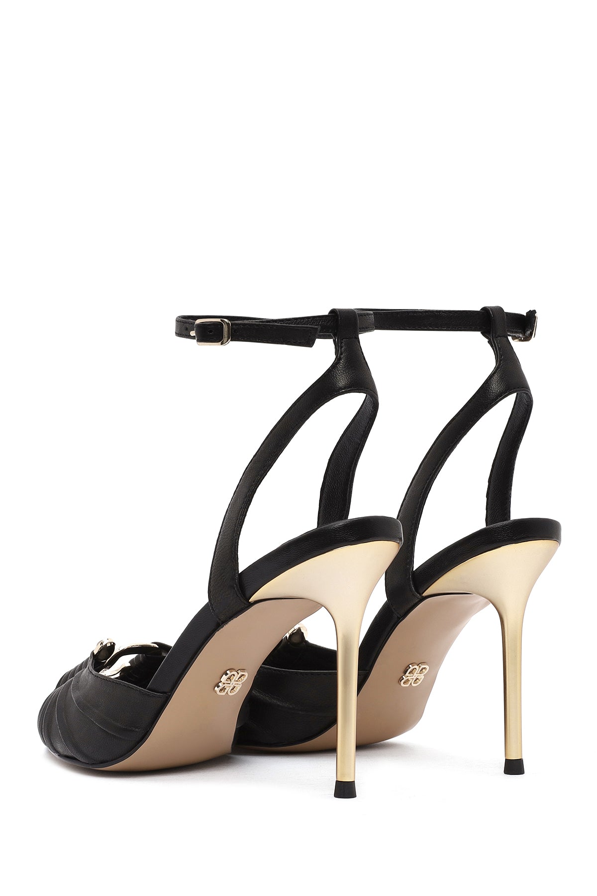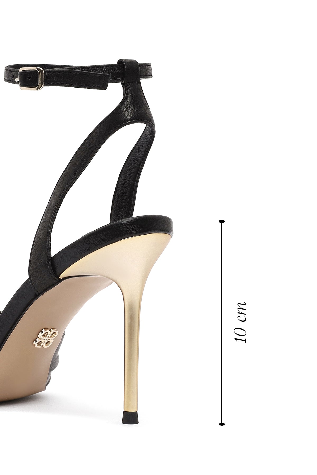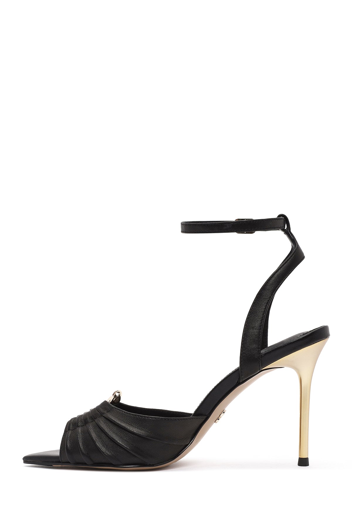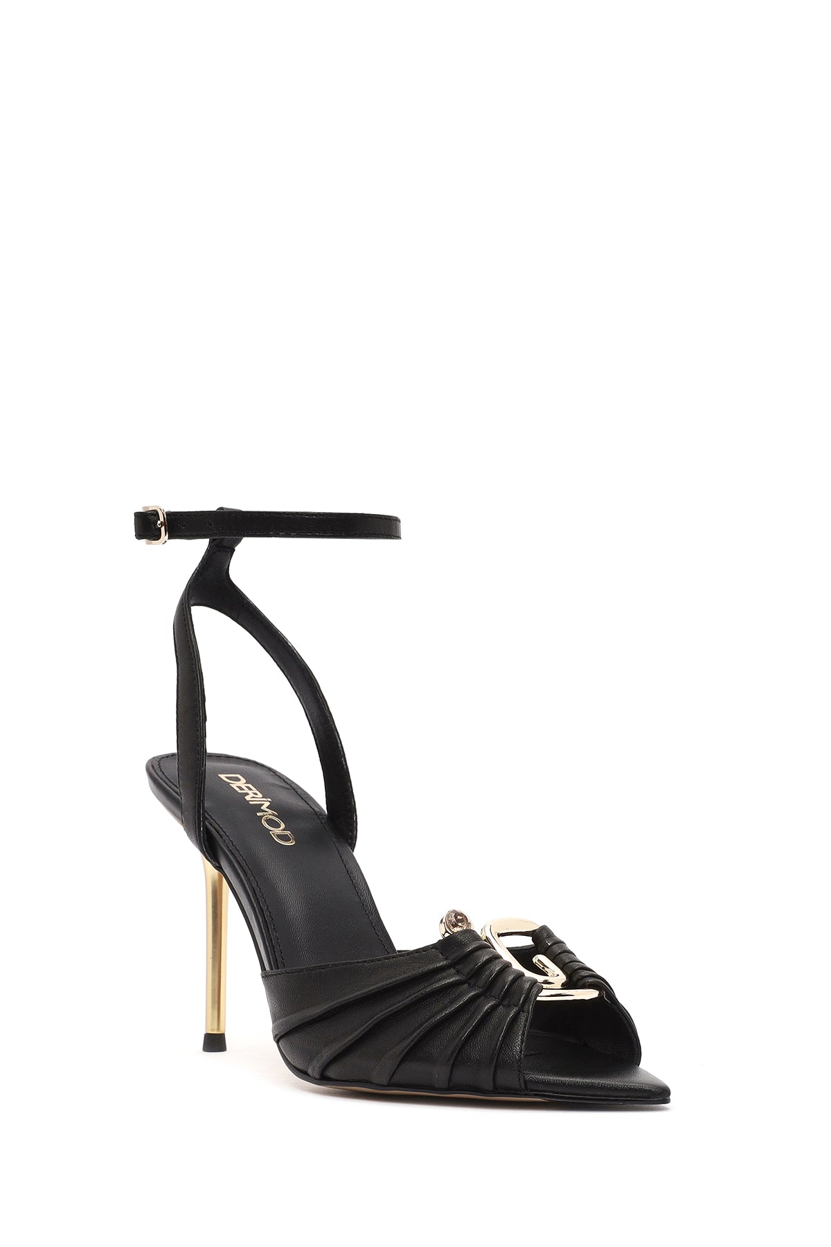 Kadın Siyah Bilekten Bantlı Deri Yüksek İnce Topuklu Sandalet