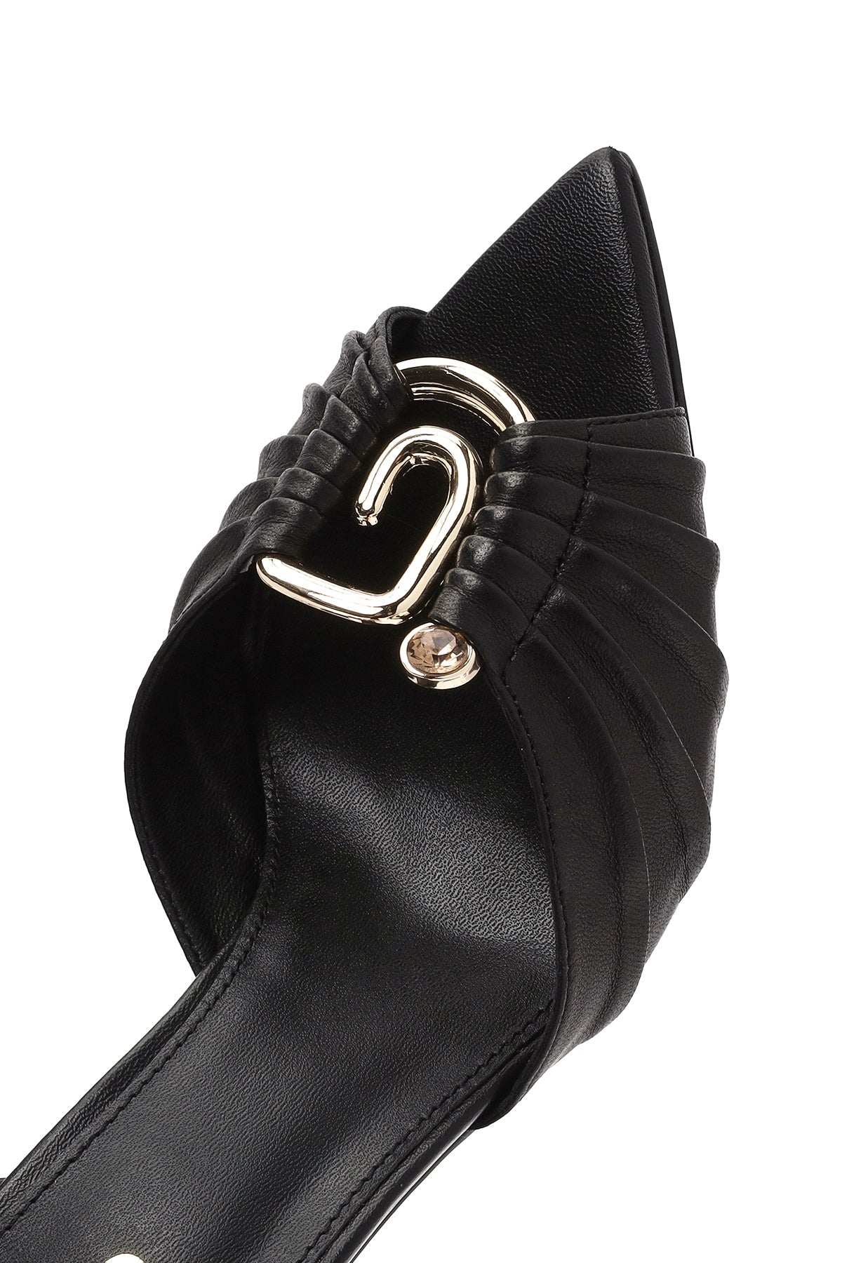 صندل زنانه چرم مشکی پاشنهبلند نازک مچی بنددار دری مد