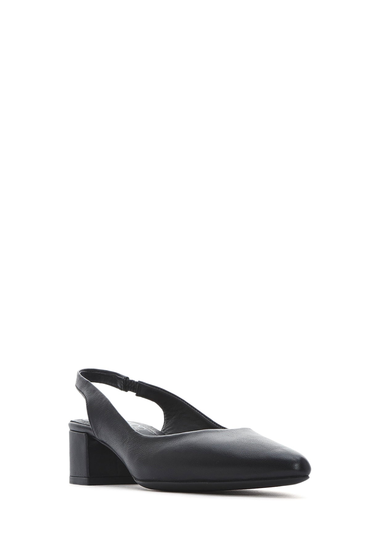 Kadın Siyah Arkası Açık Kalın Kısa Topuklu Deri Ayakkabı