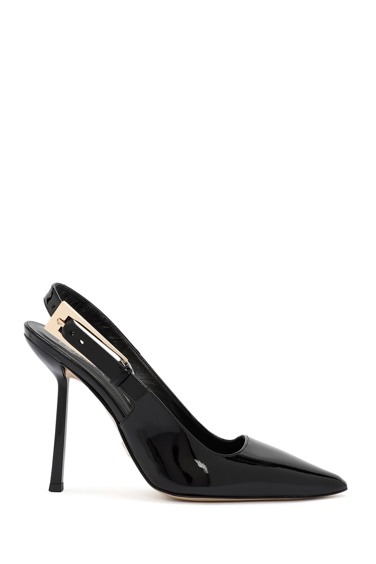 Kadın Siyah Arkası Açık Yüksek İnce Topuklu Rugan Deri Ayakkabı