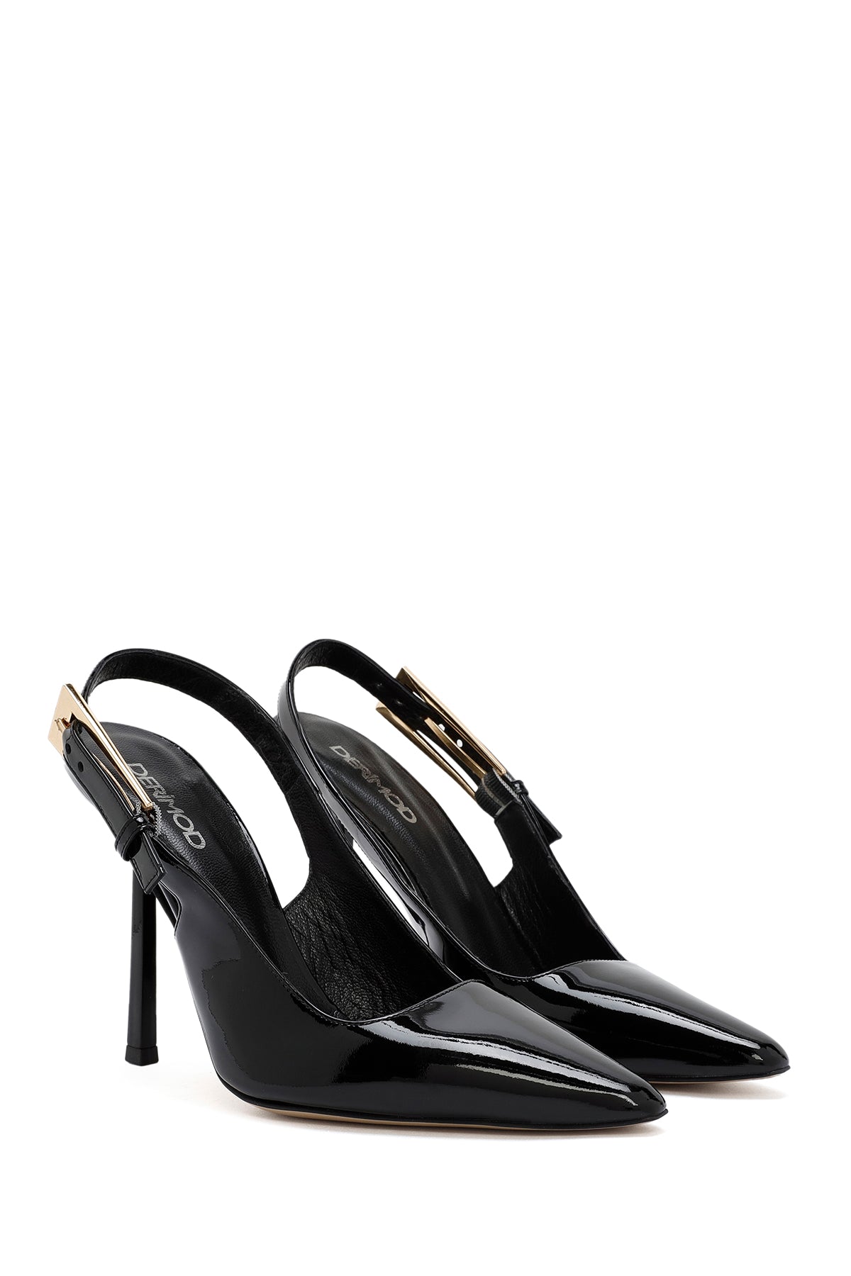 کفش زنانه ورنی مشکی پشتباز پاشنهبلند نازک دری مد
