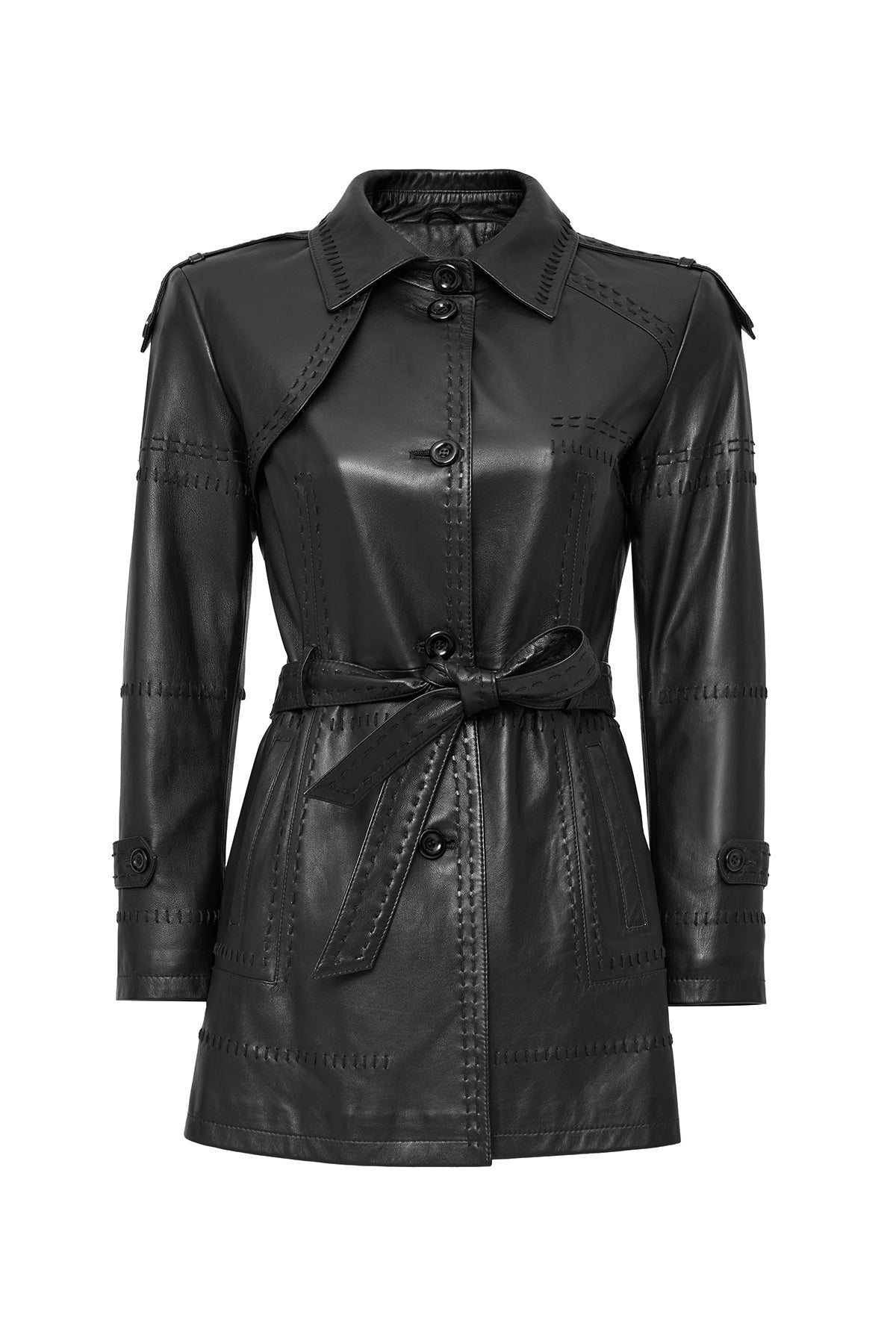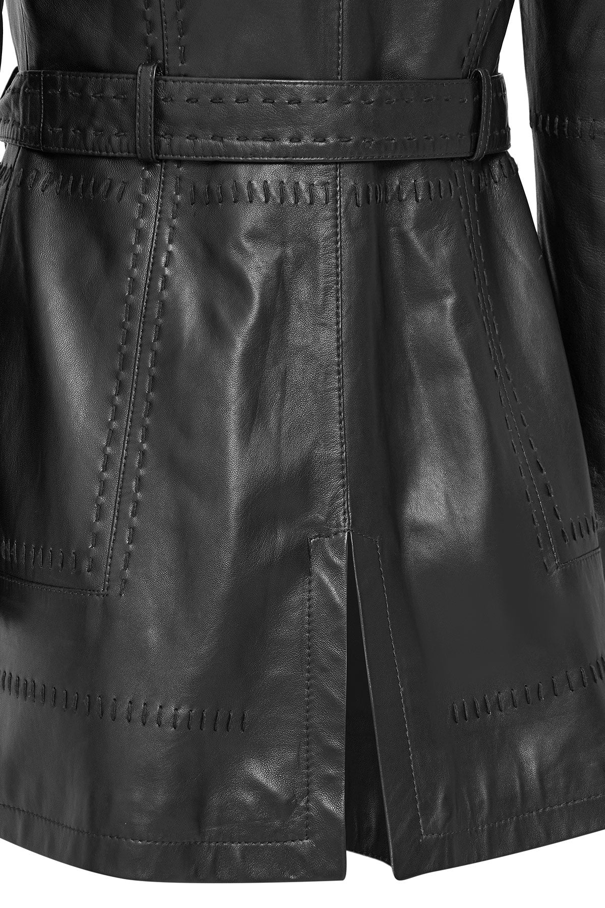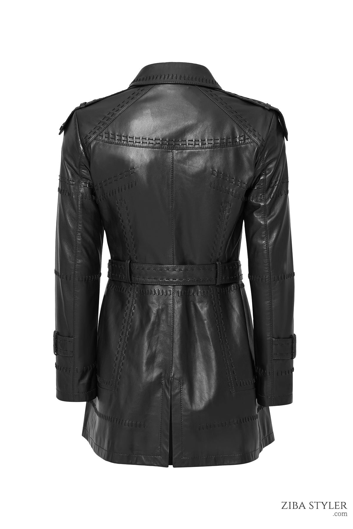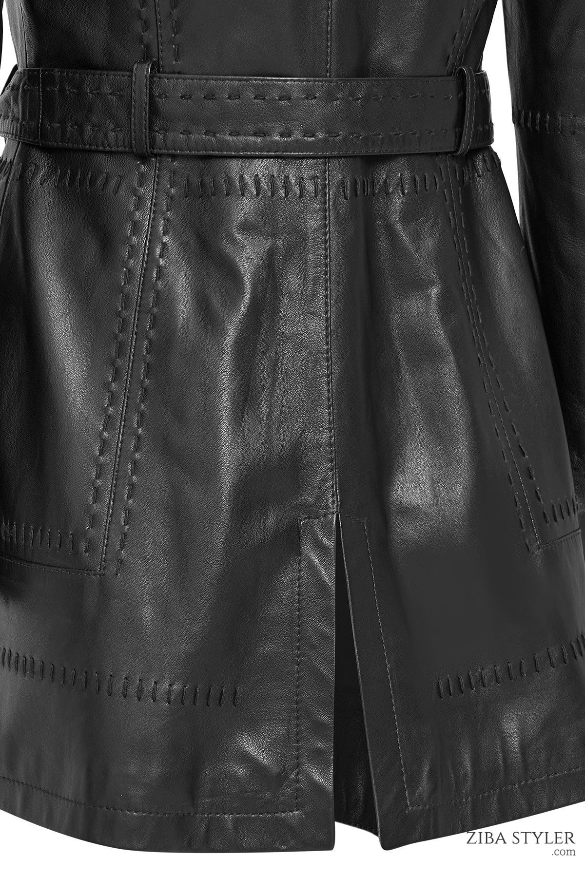 ترنچ کت چرمی زنانه مشکی کمربنددار Annamaria دری مد
