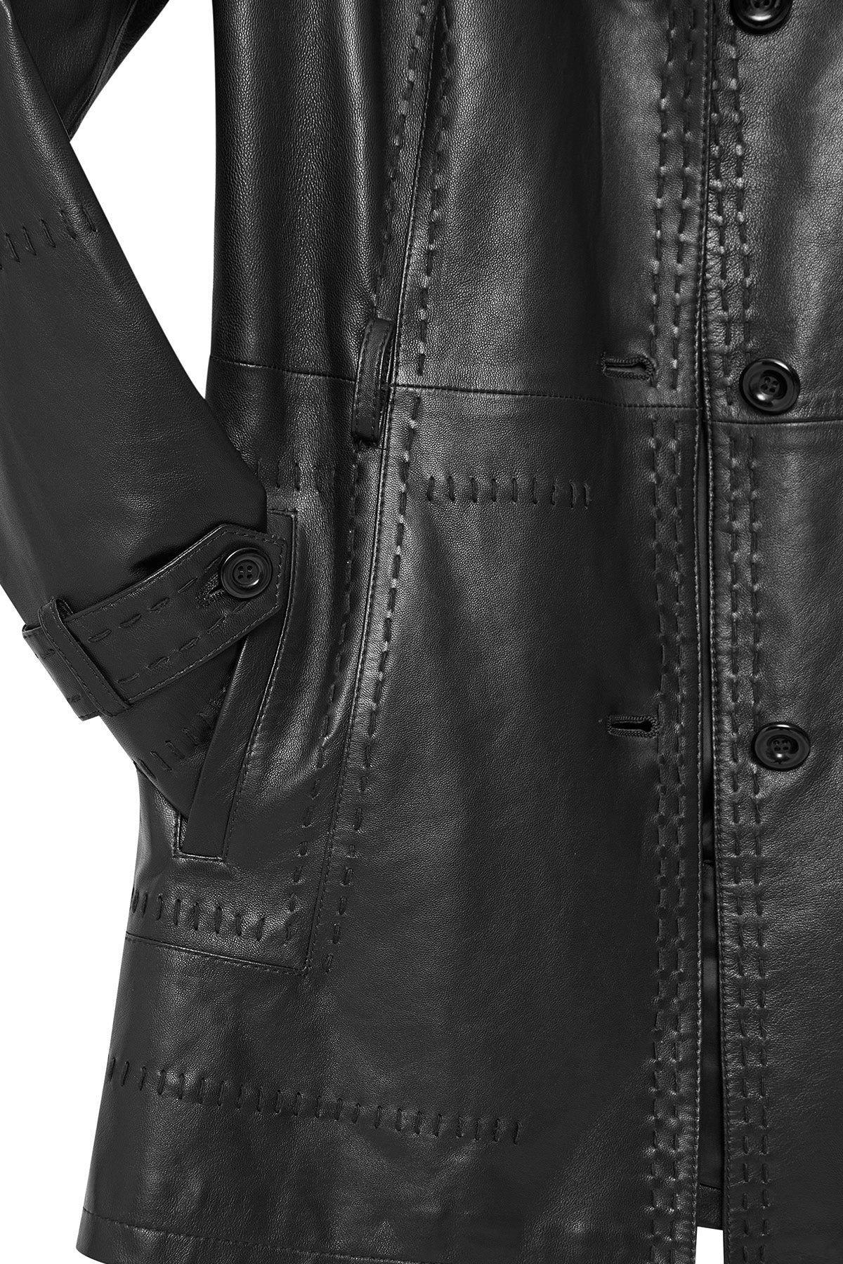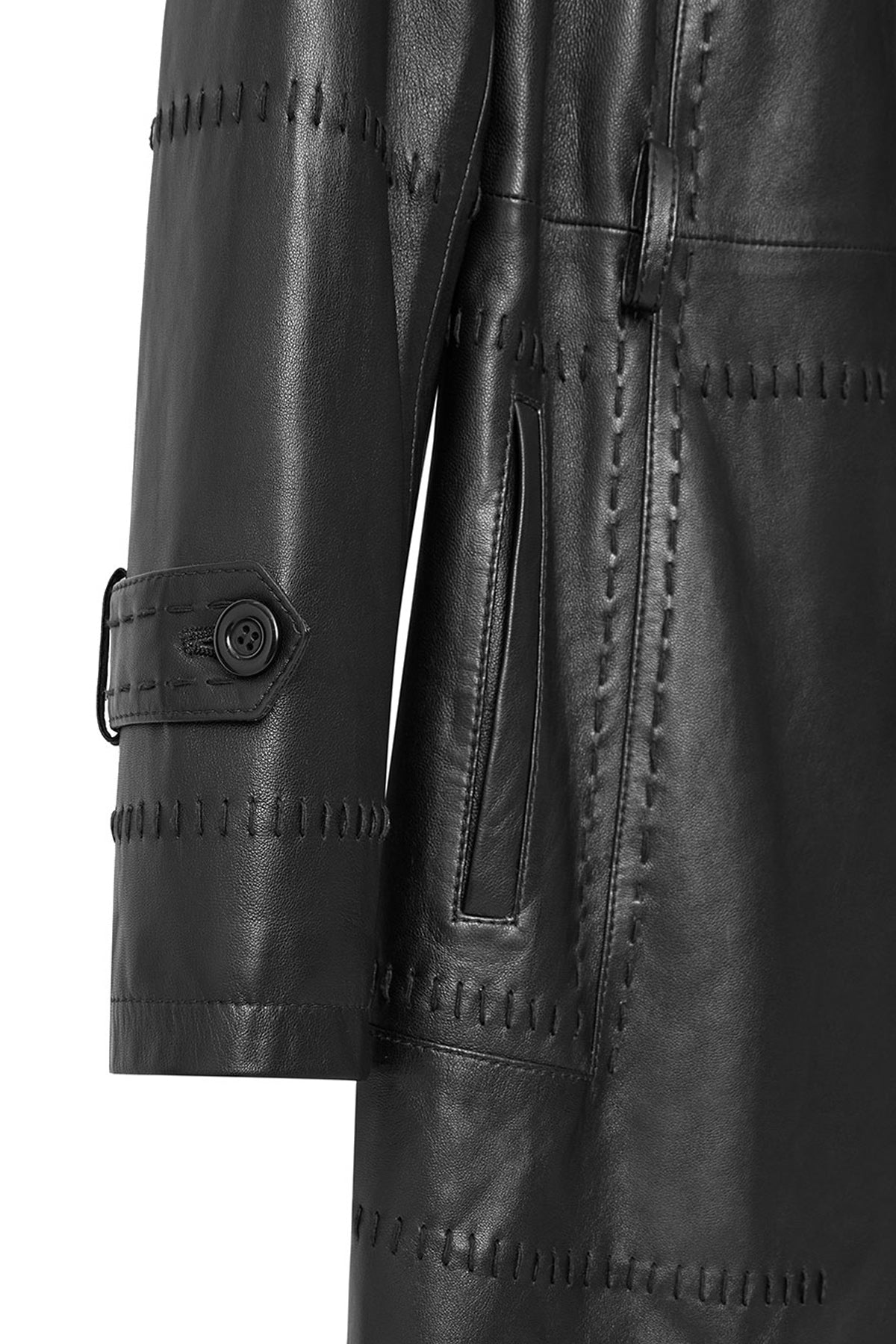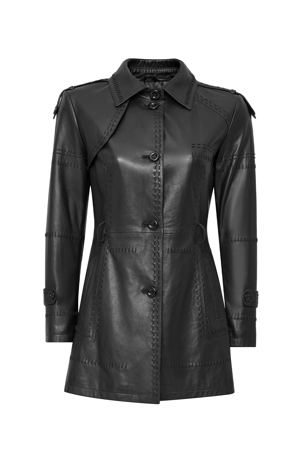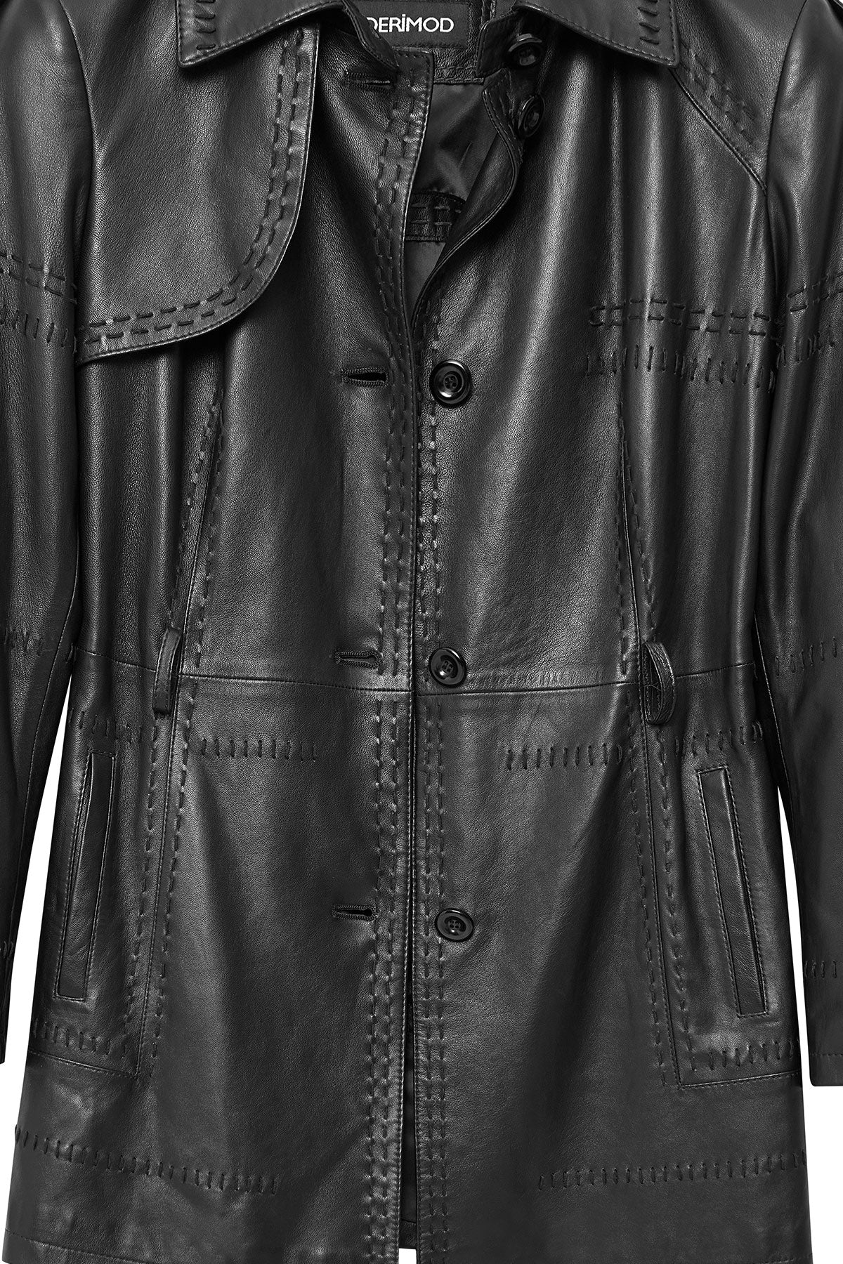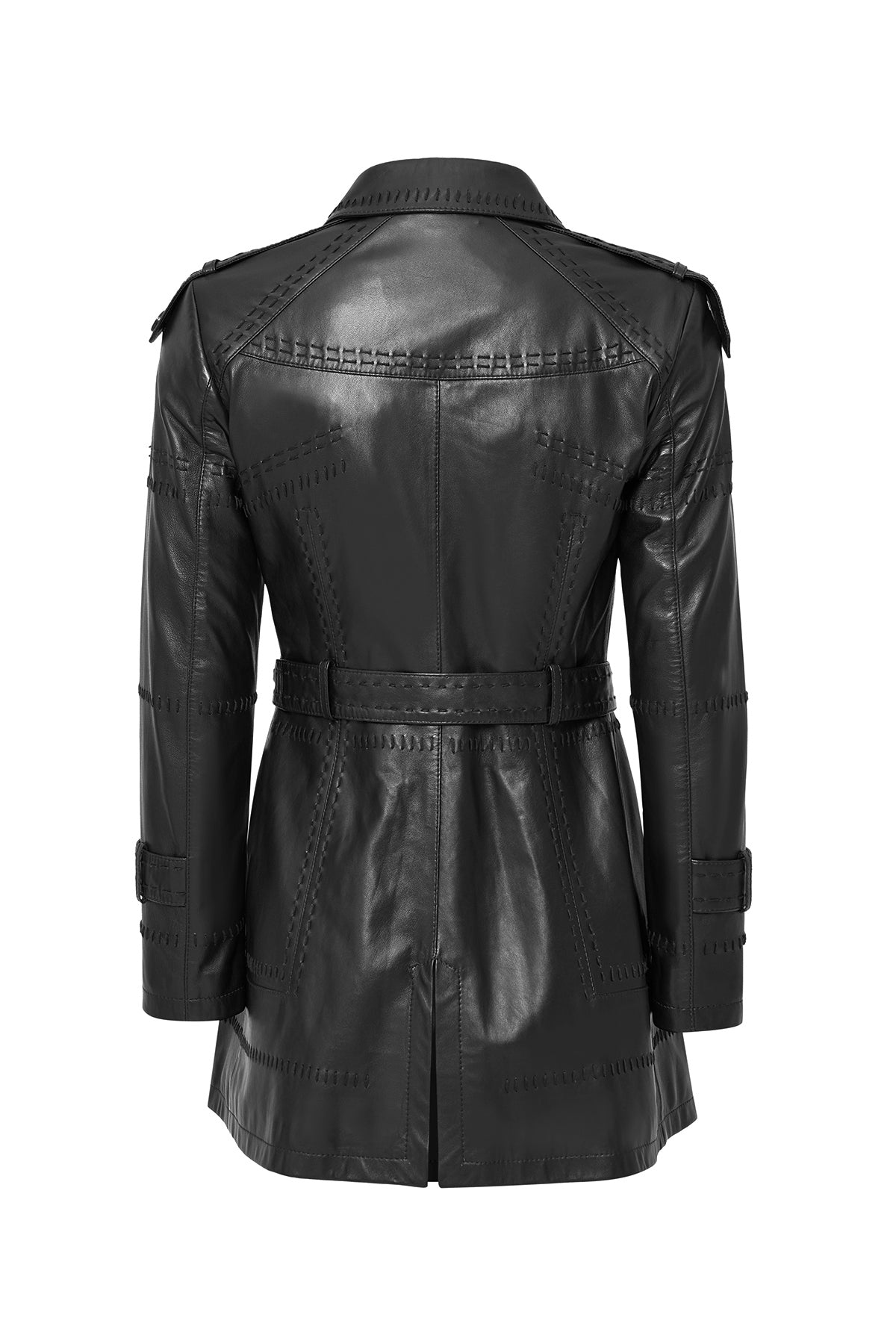 ترنچ کت چرمی زنانه مشکی کمربنددار Annamaria دری مد