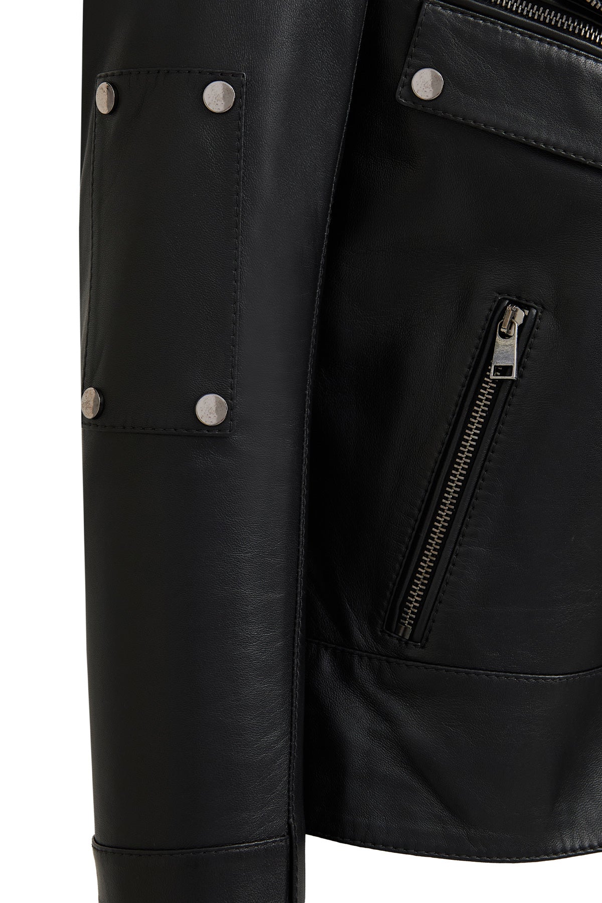 Roma Kadın Siyah Biker Deri Ceket