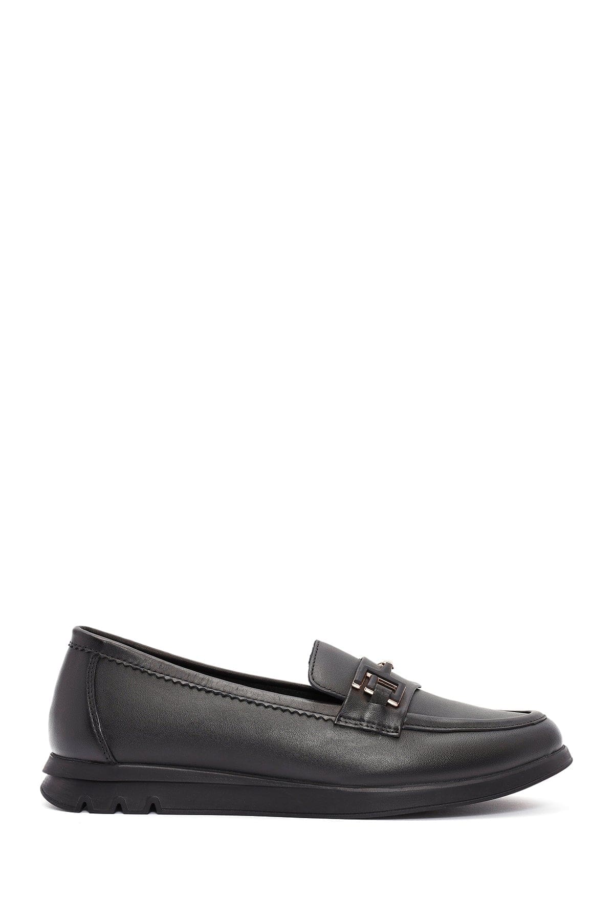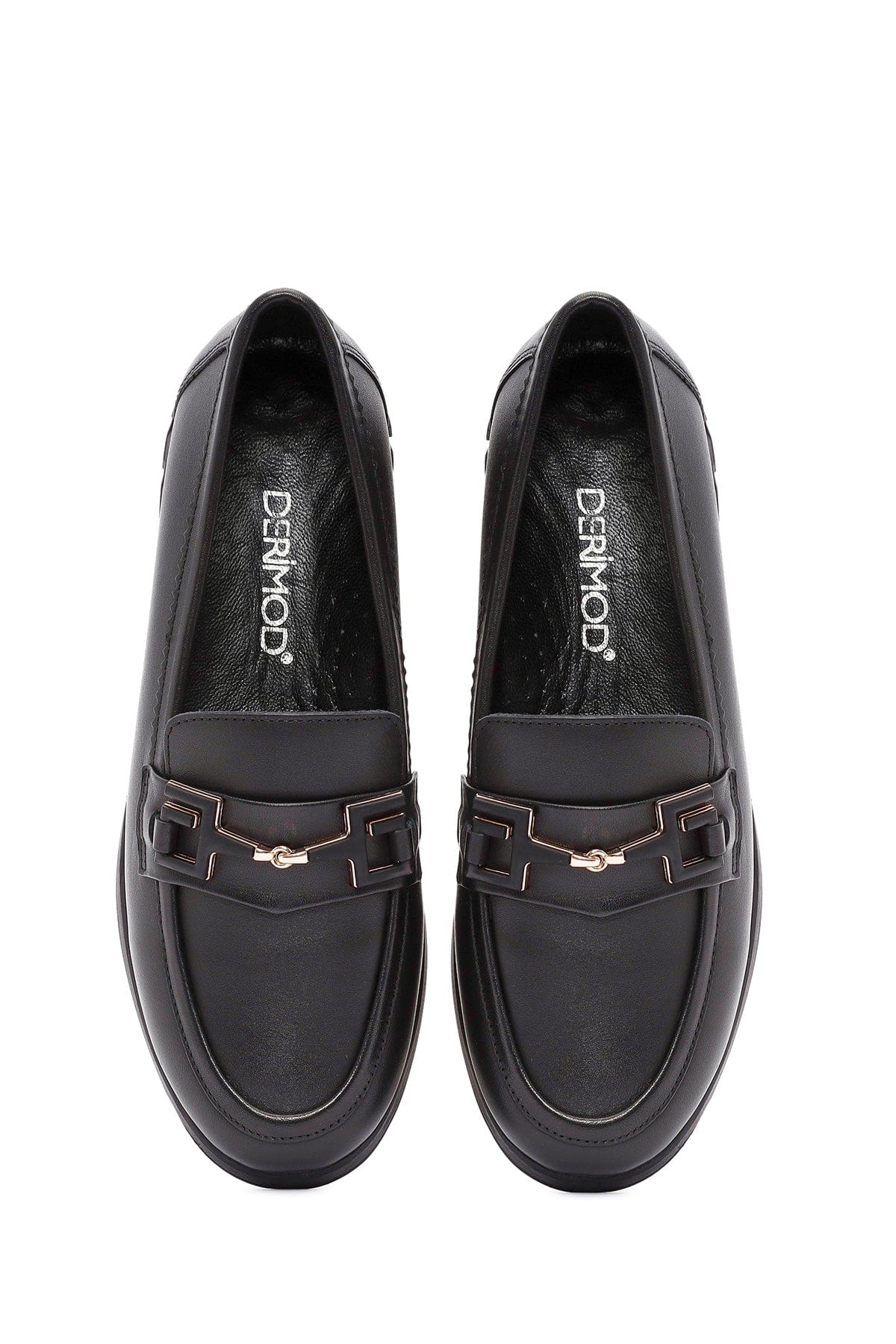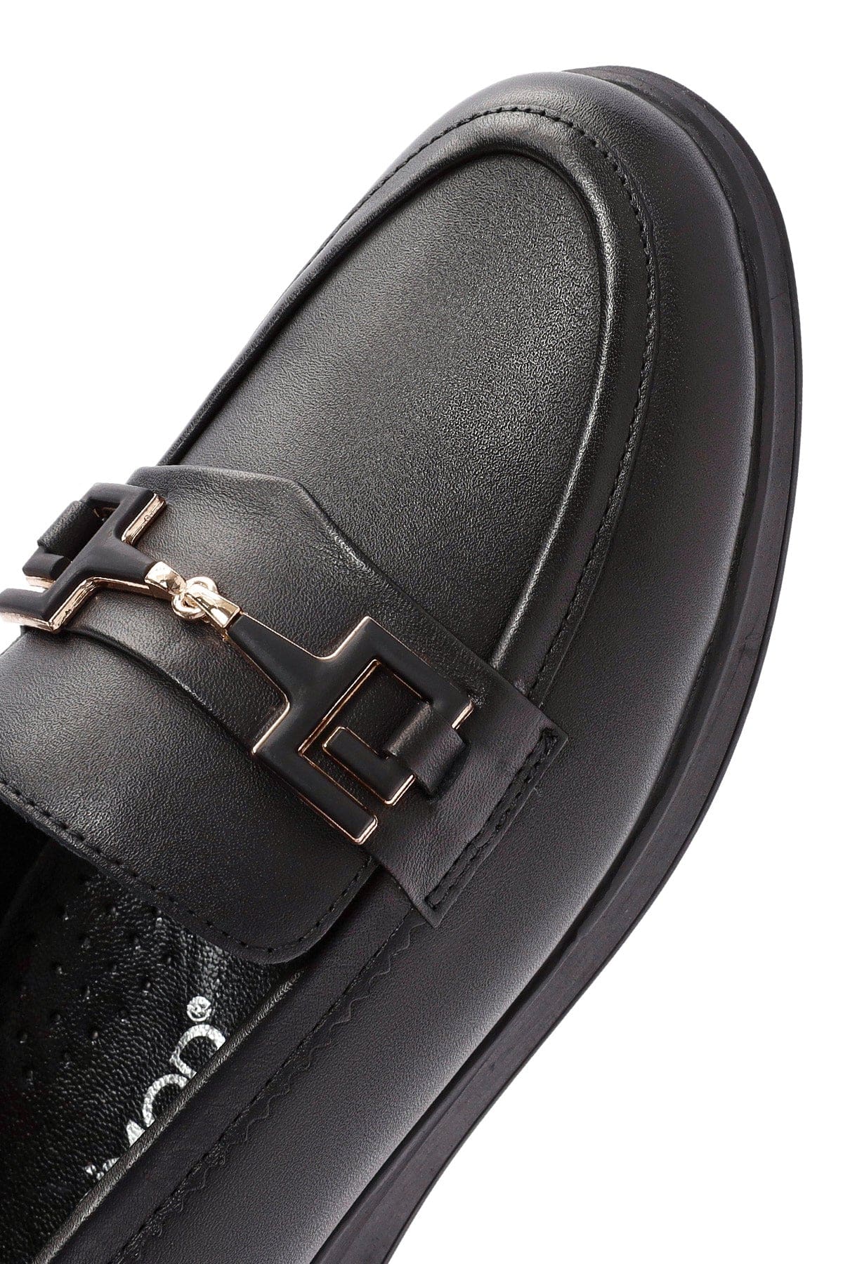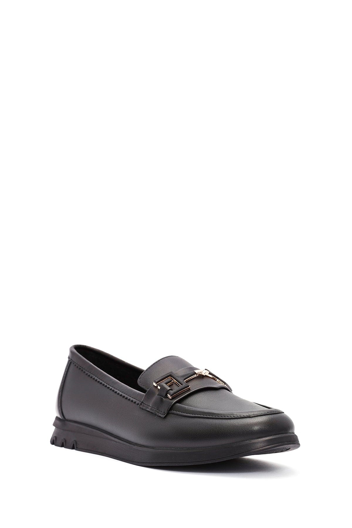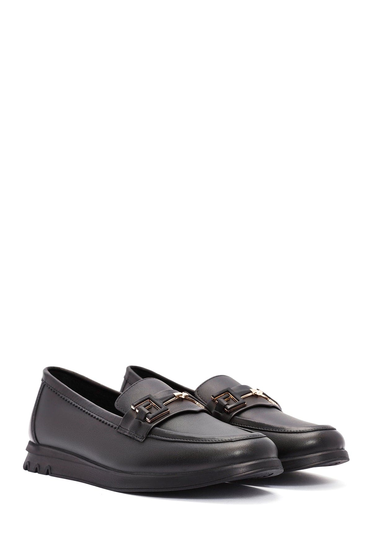 Kadın Siyah Toka Detaylı Deri Comfort Loafer