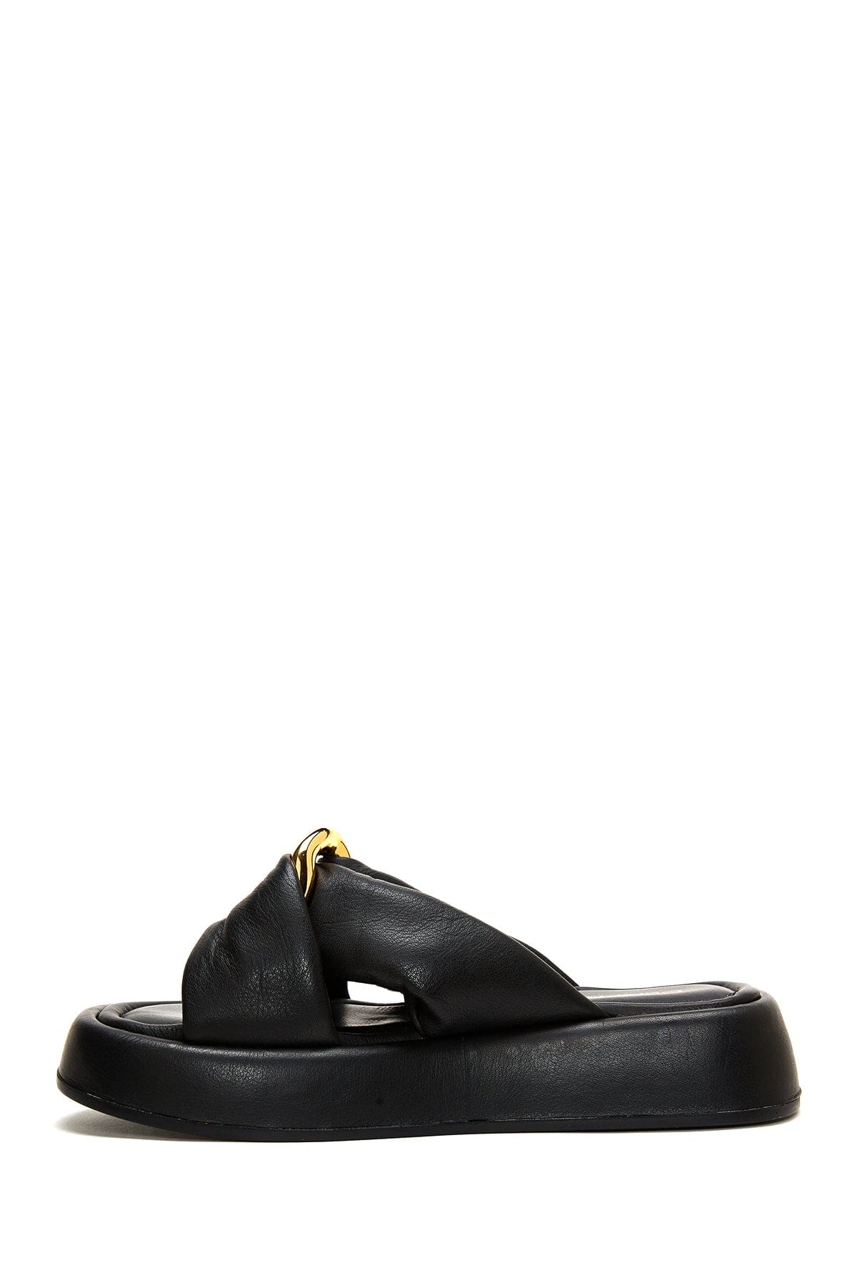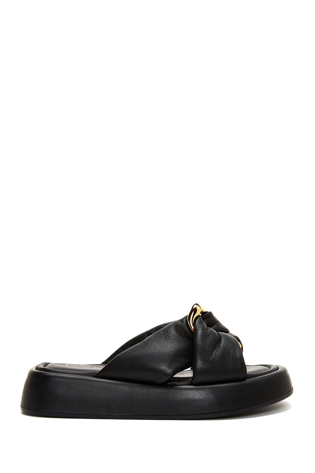 دمپایی زنانه چرمی مشکی با جزئیات سگک دری مد