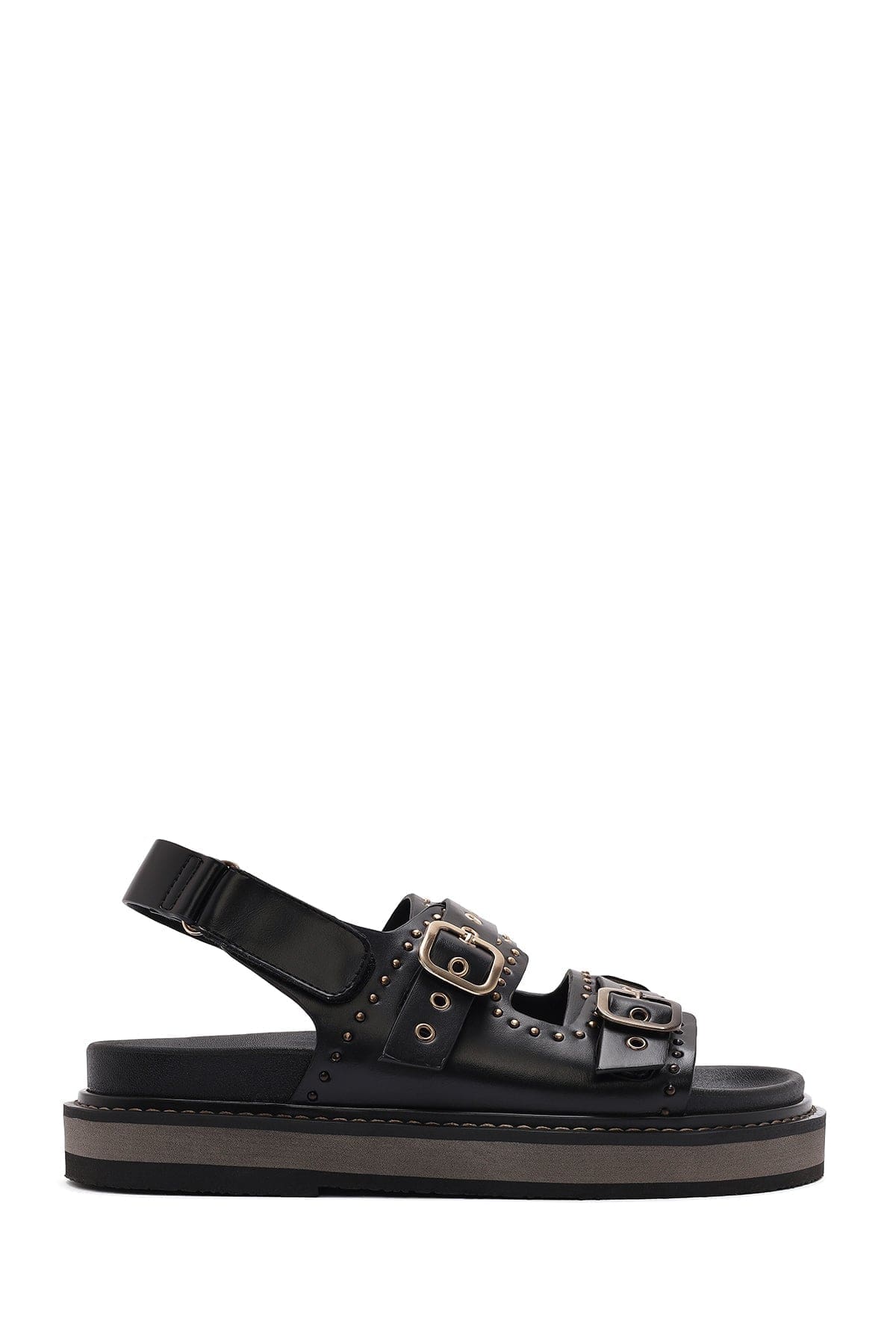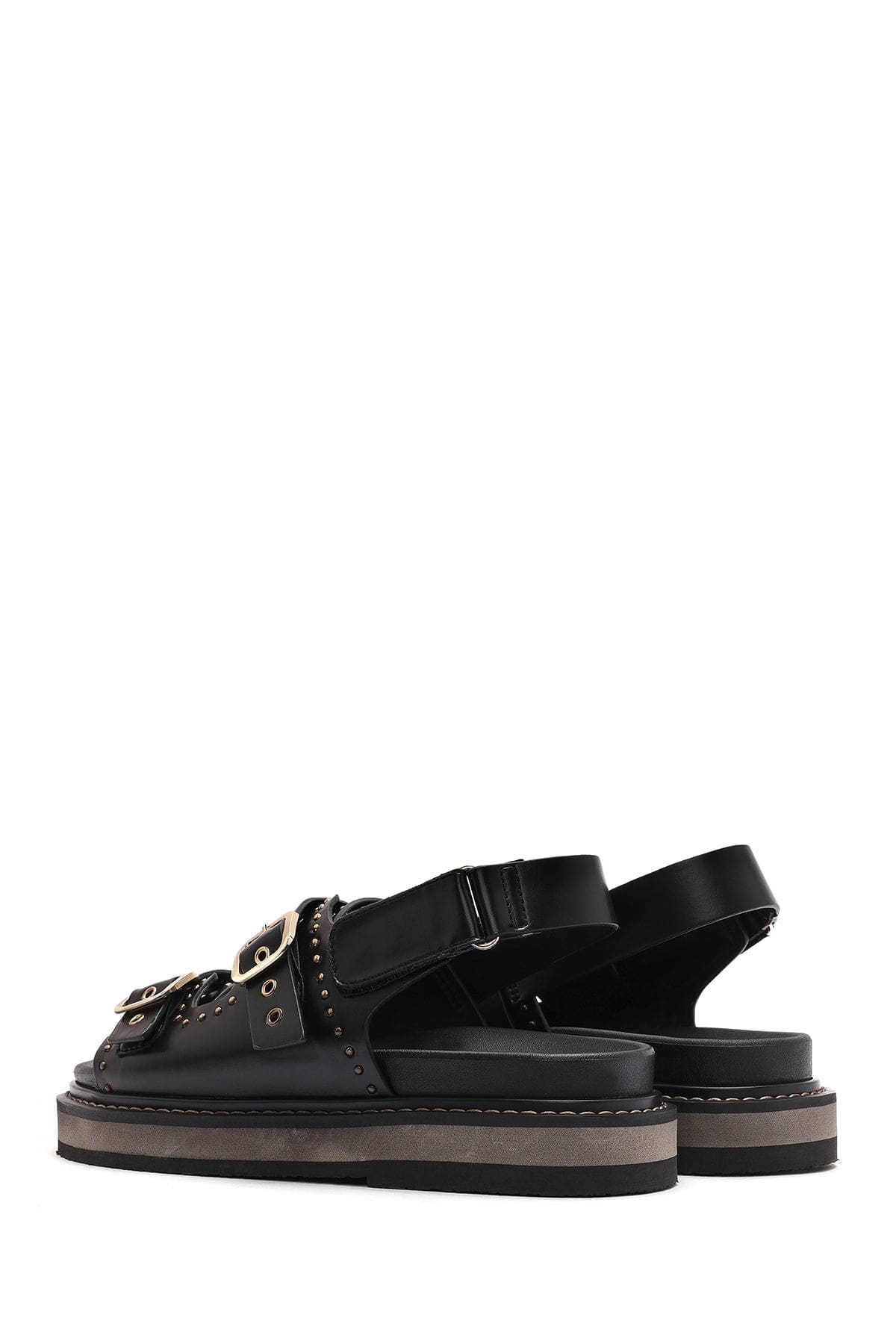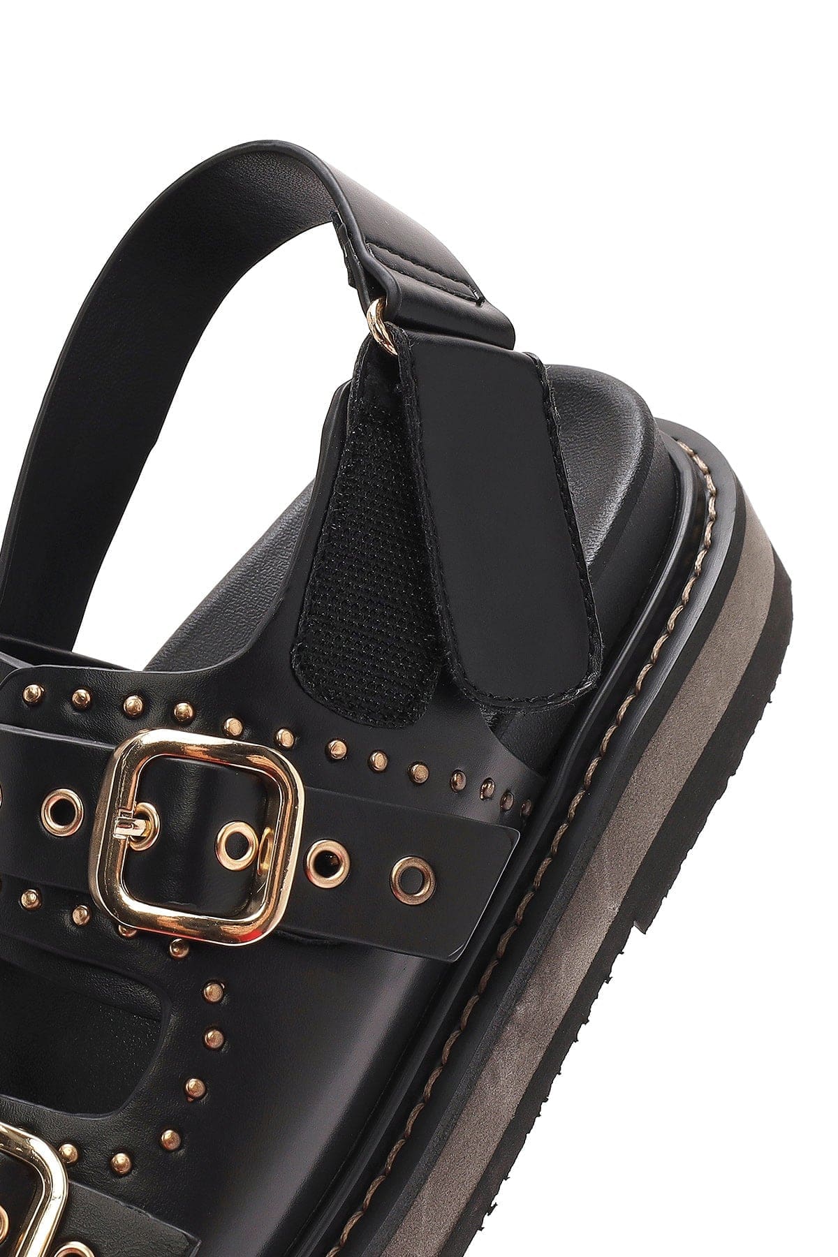 صندل زنانه مشکی سگکدار تخت ضخیم دری مد