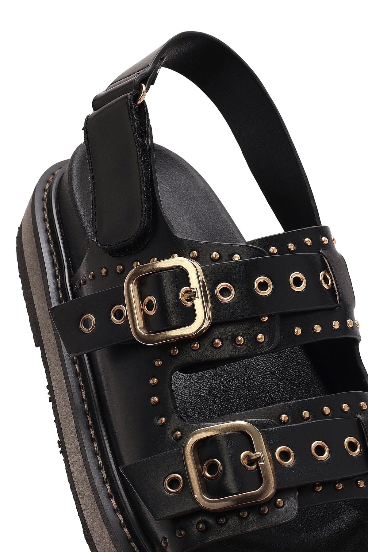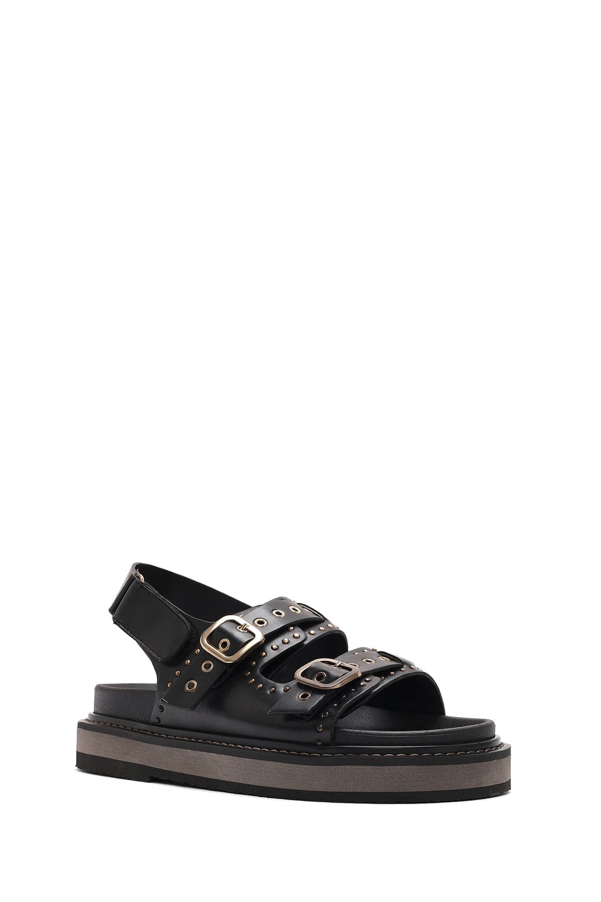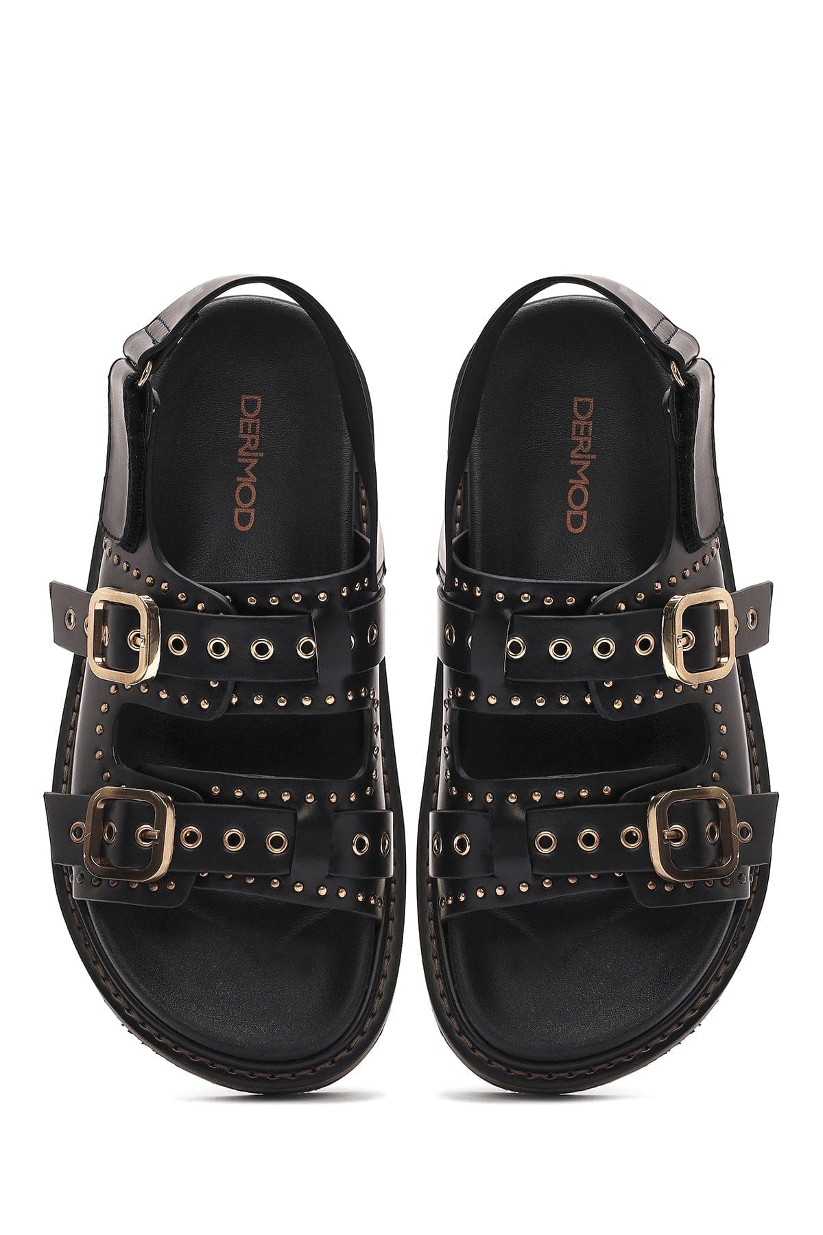 صندل زنانه مشکی سگکدار تخت ضخیم دری مد