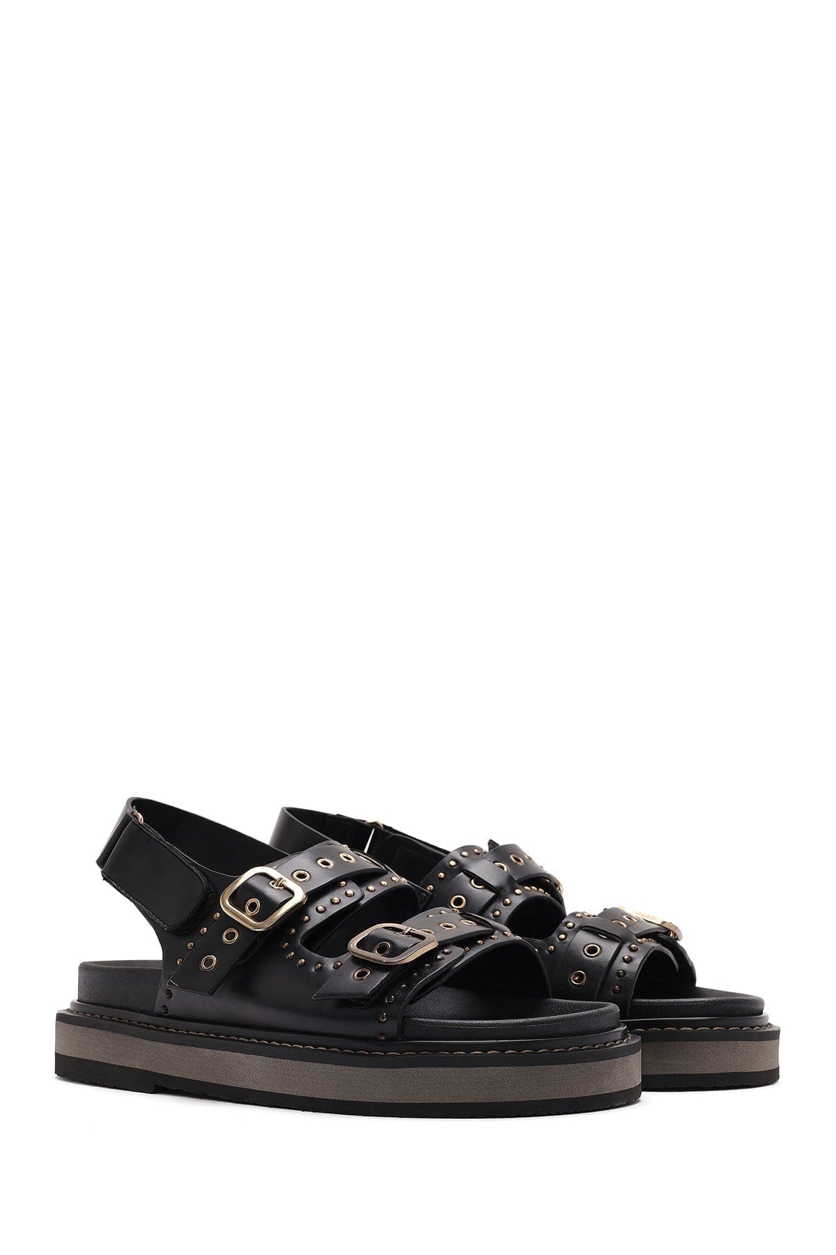 Kadın Siyah Tokalı Kalın Tabanlı Sandalet
