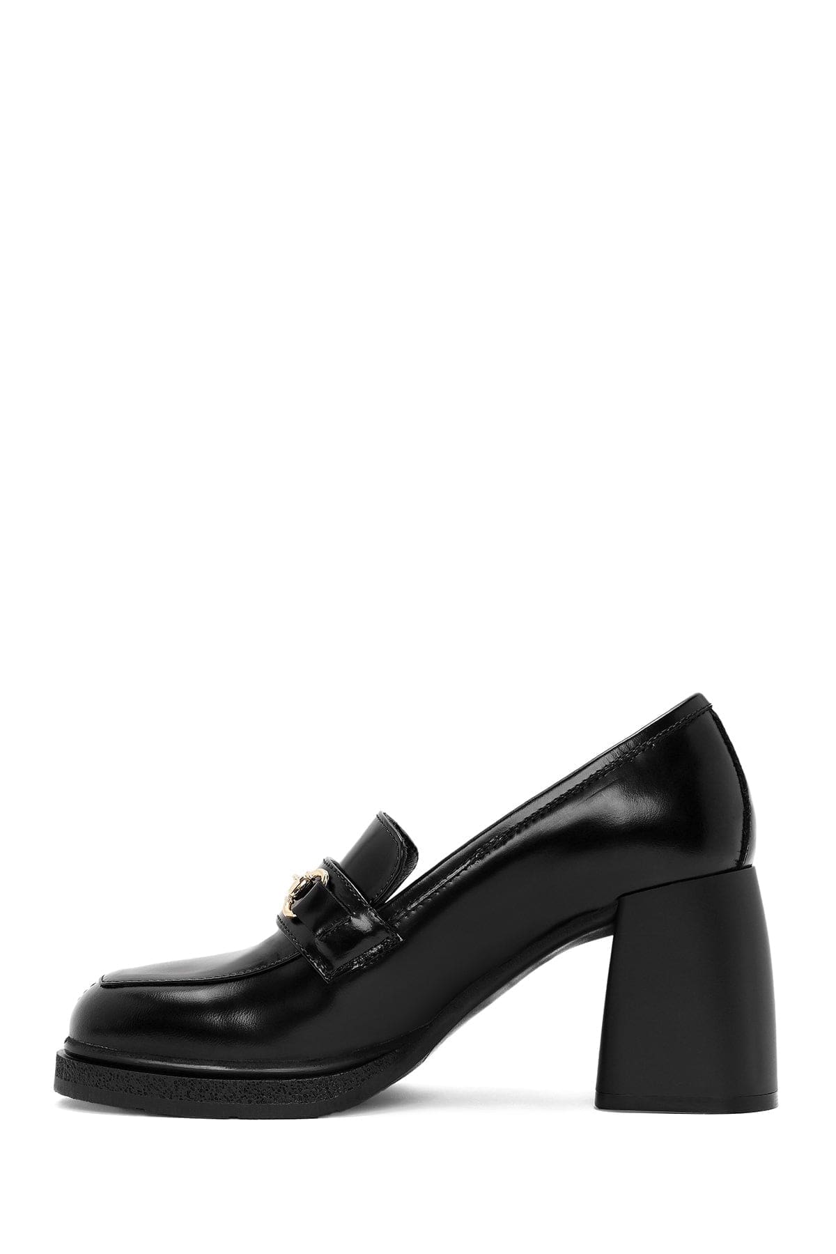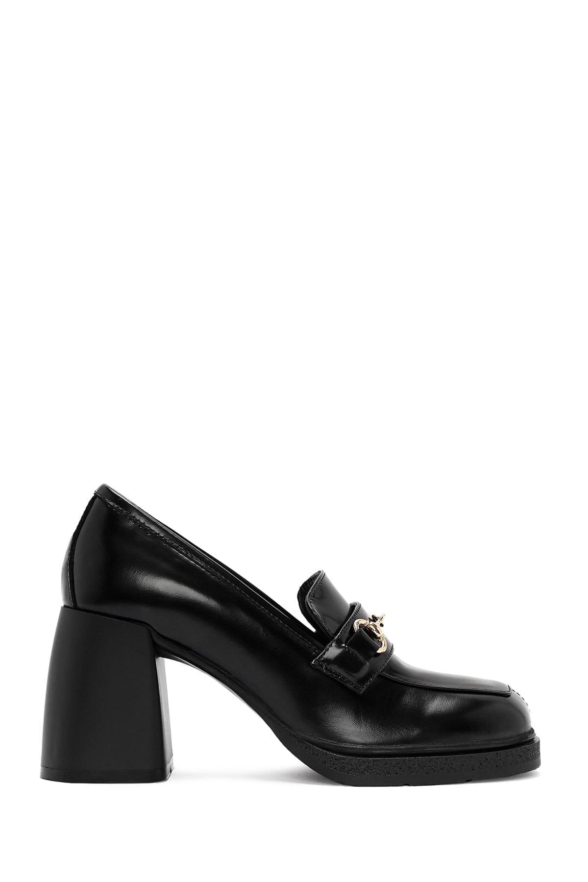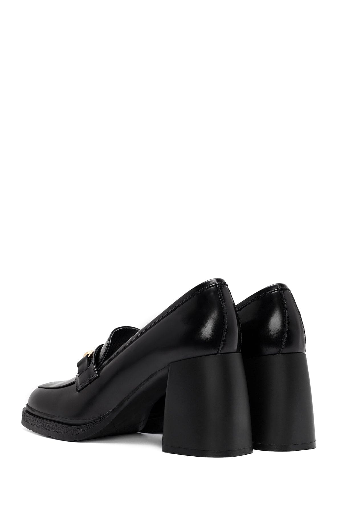 Kadın Siyah Toka Detaylı Kalın Yüksek Topuklu Deri Loafer