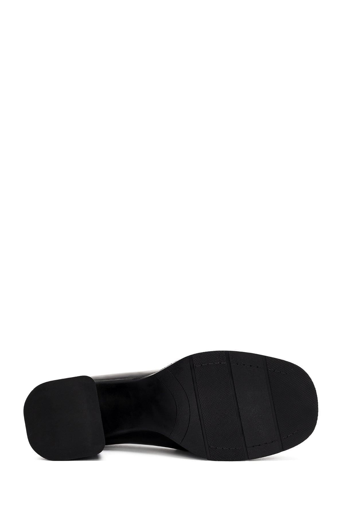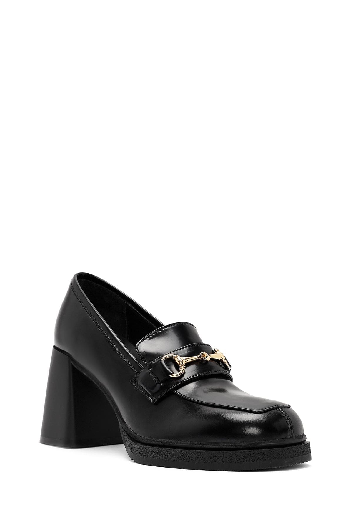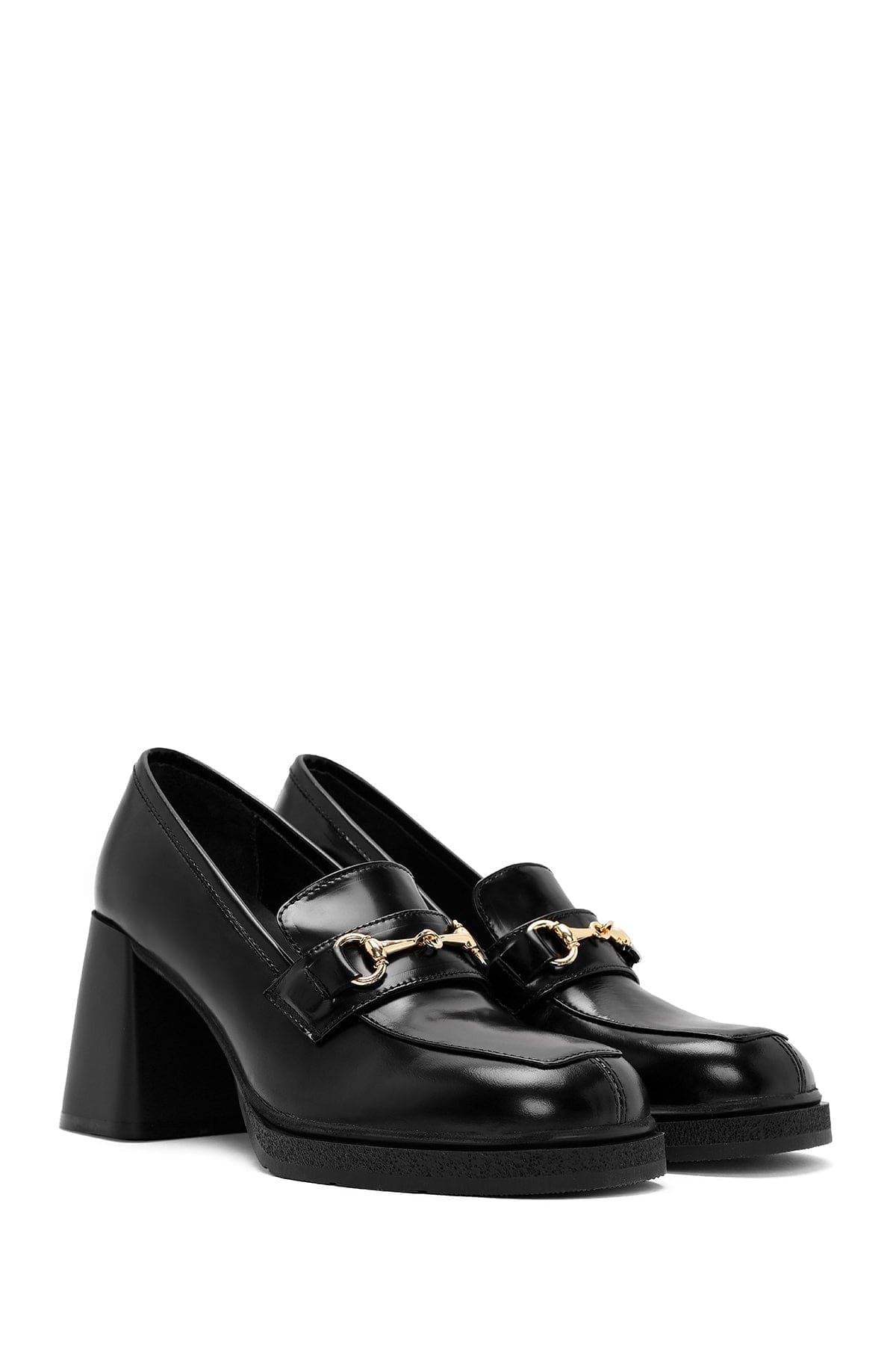 Kadın Siyah Toka Detaylı Kalın Yüksek Topuklu Deri Loafer