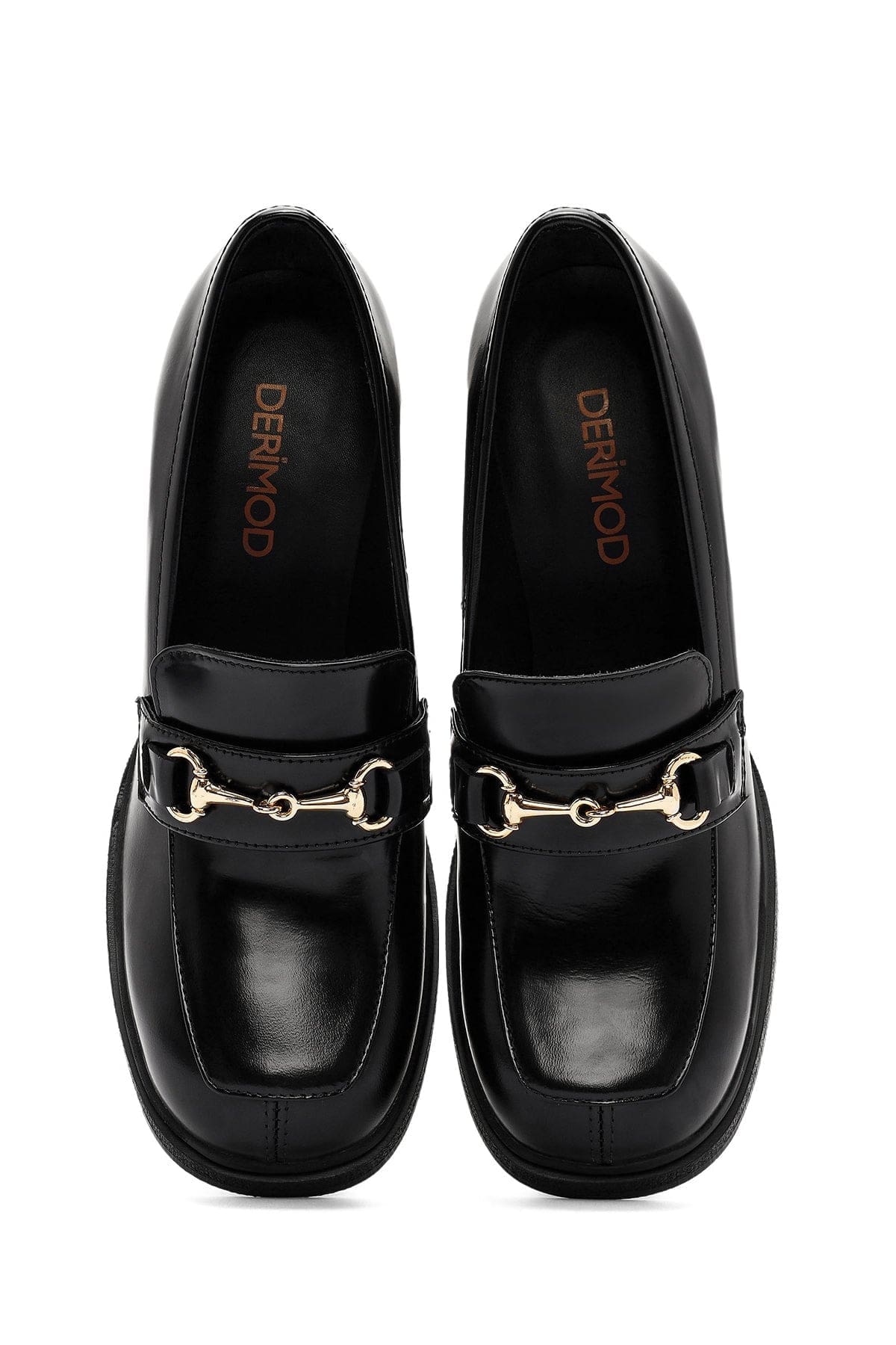 کفش لوفر زنانه مشکی چرمی با تکههای پاشنه بلند دری مد