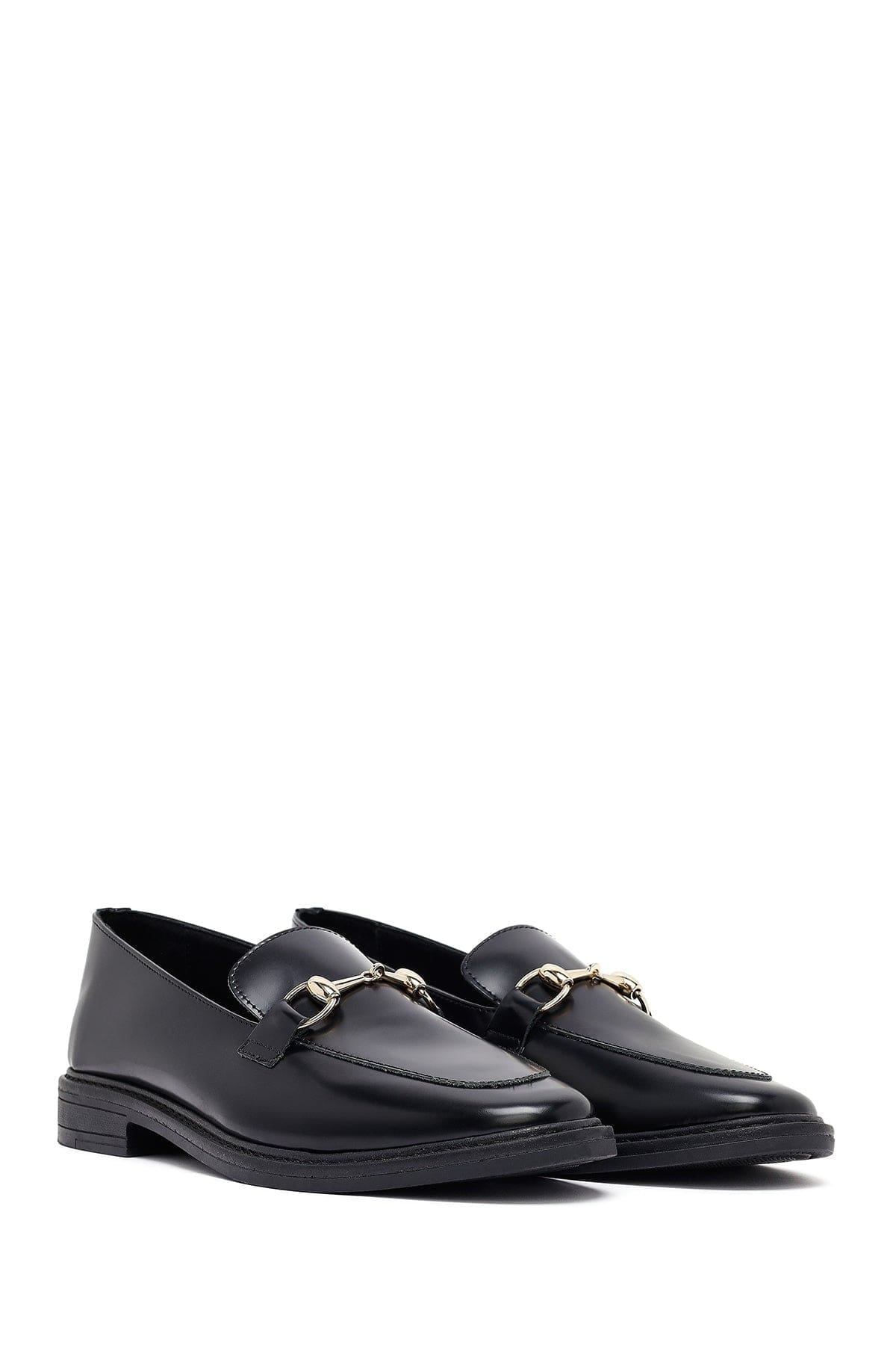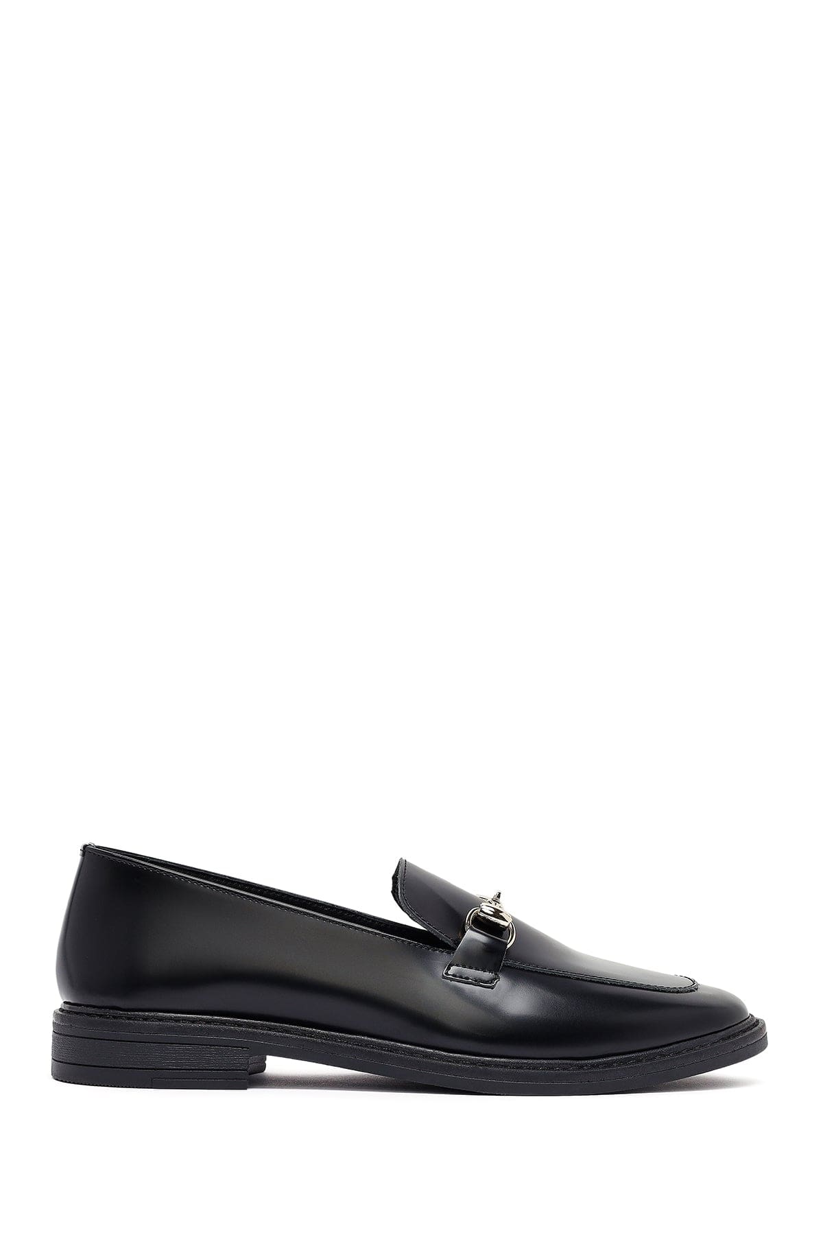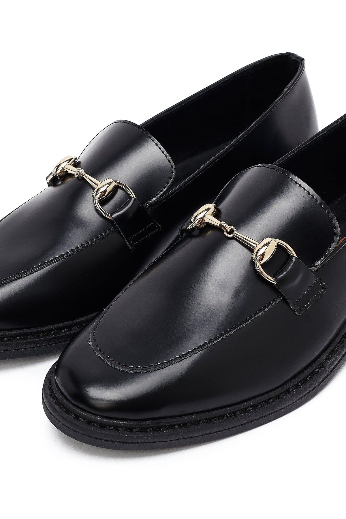 Kadın Siyah Tokalı Deri Maskülen Loafer