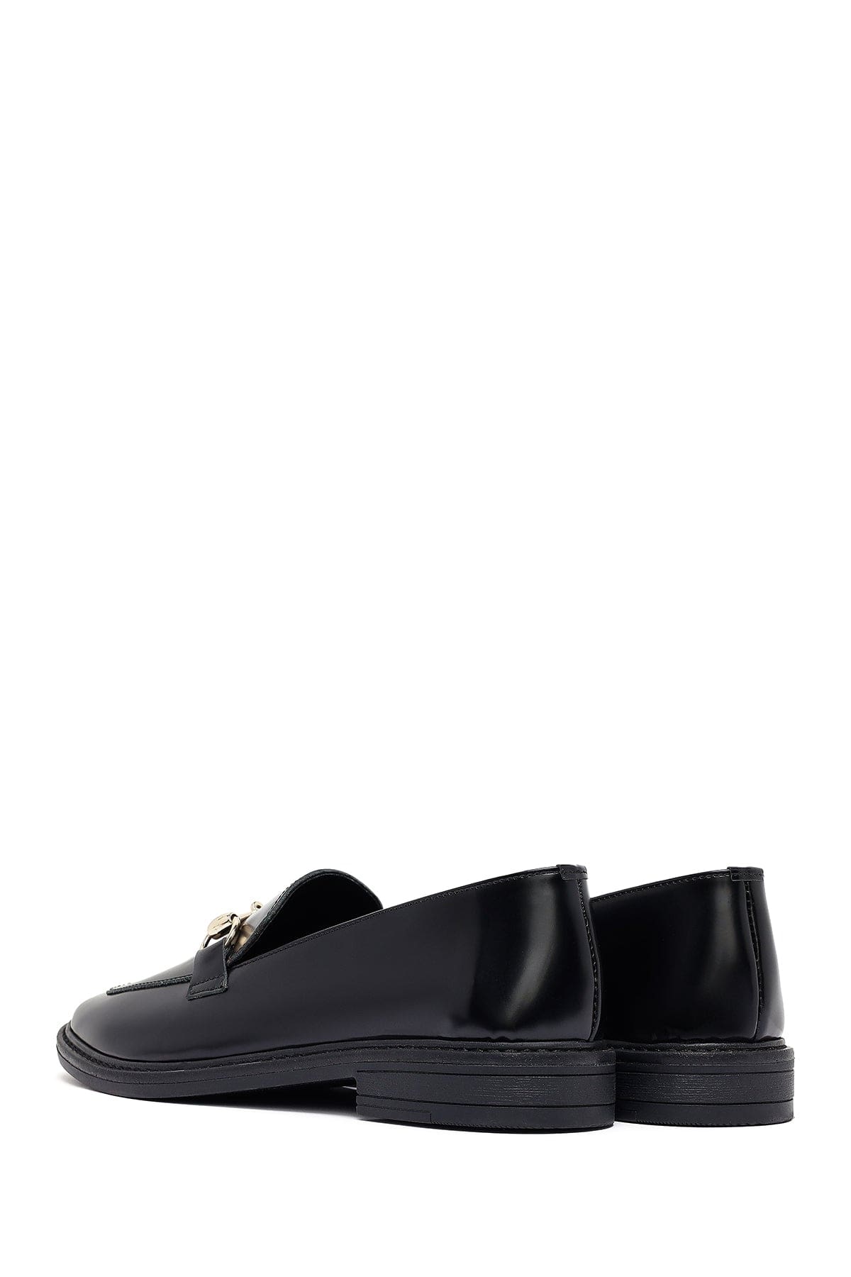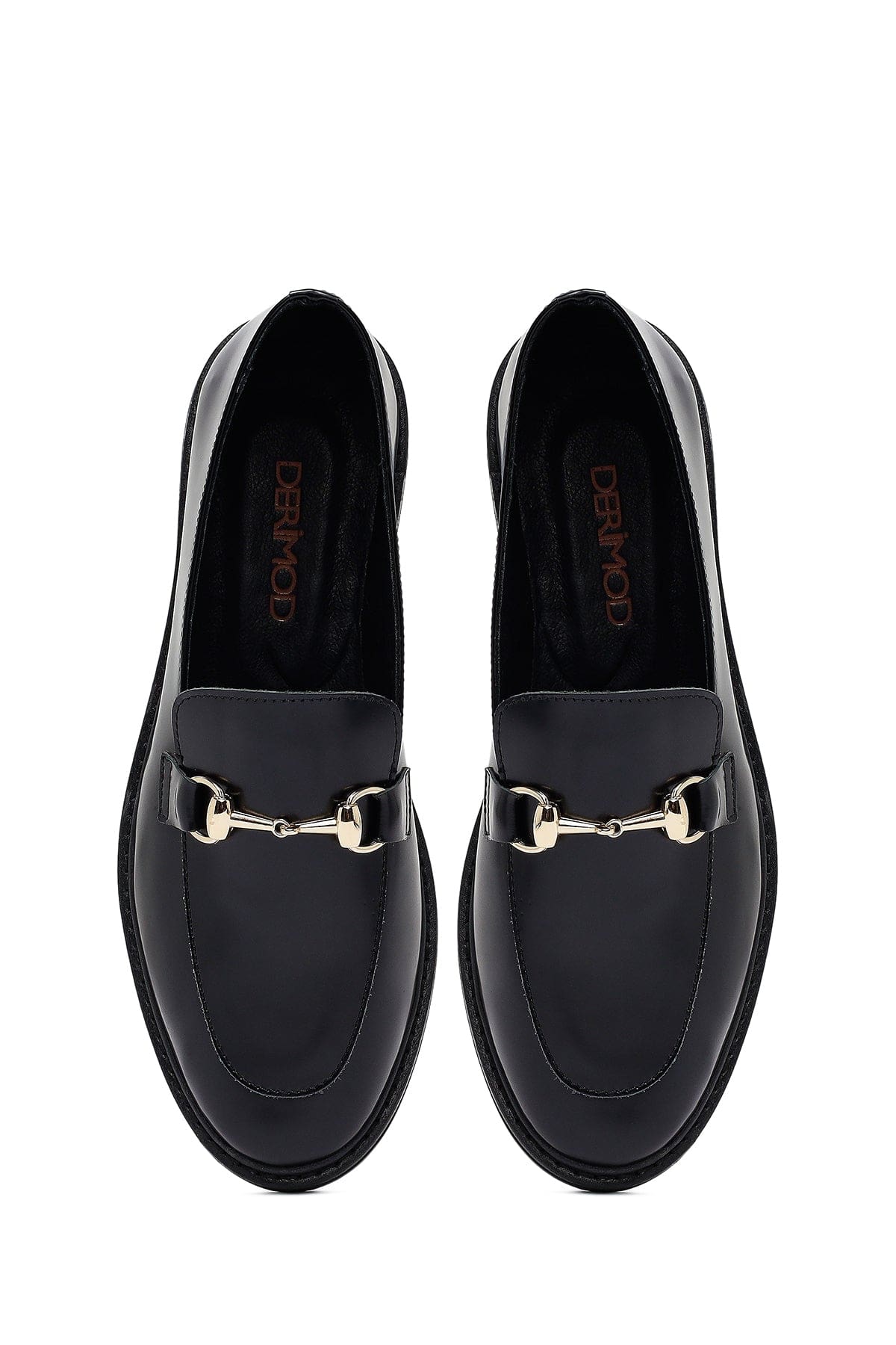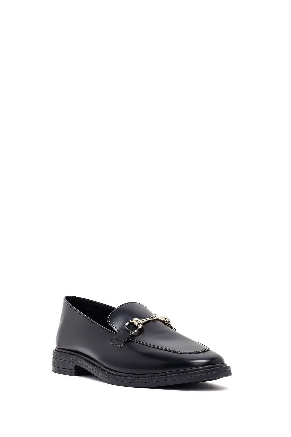 Kadın Siyah Tokalı Deri Maskülen Loafer