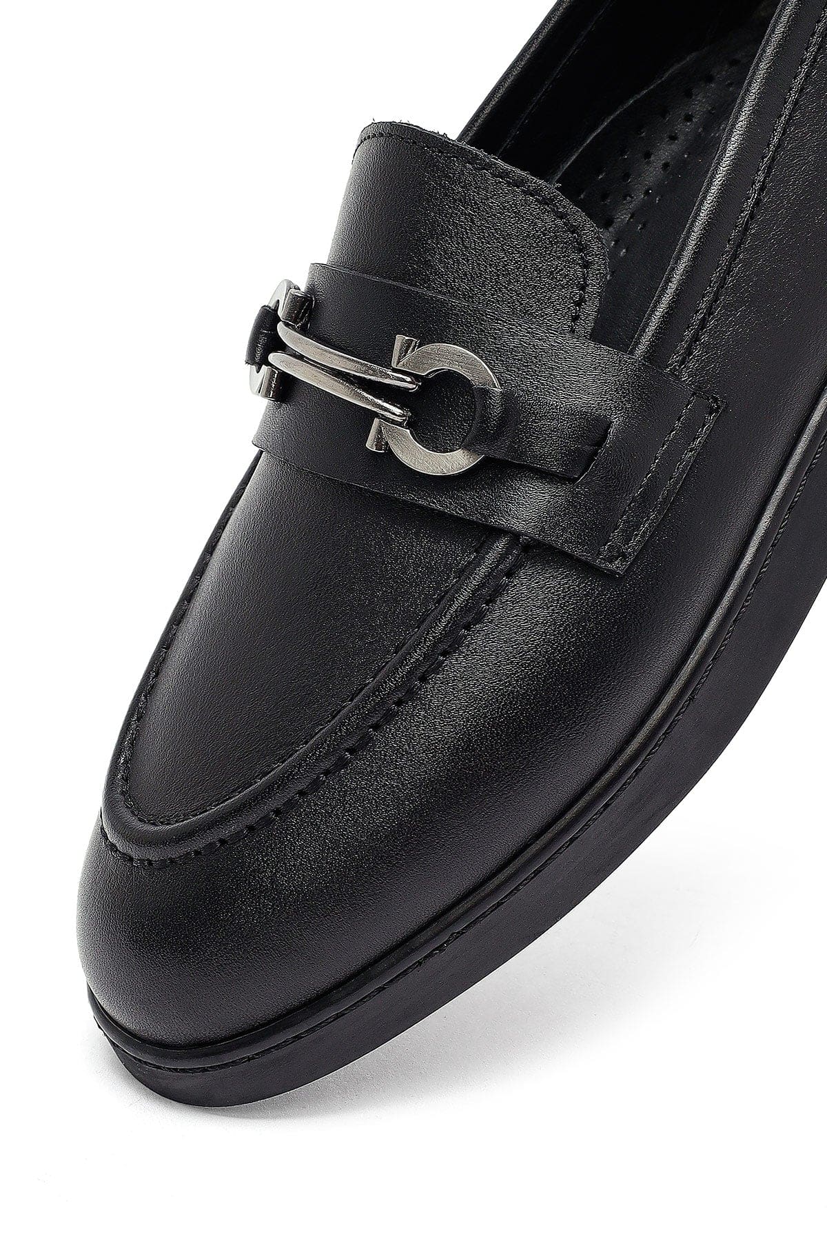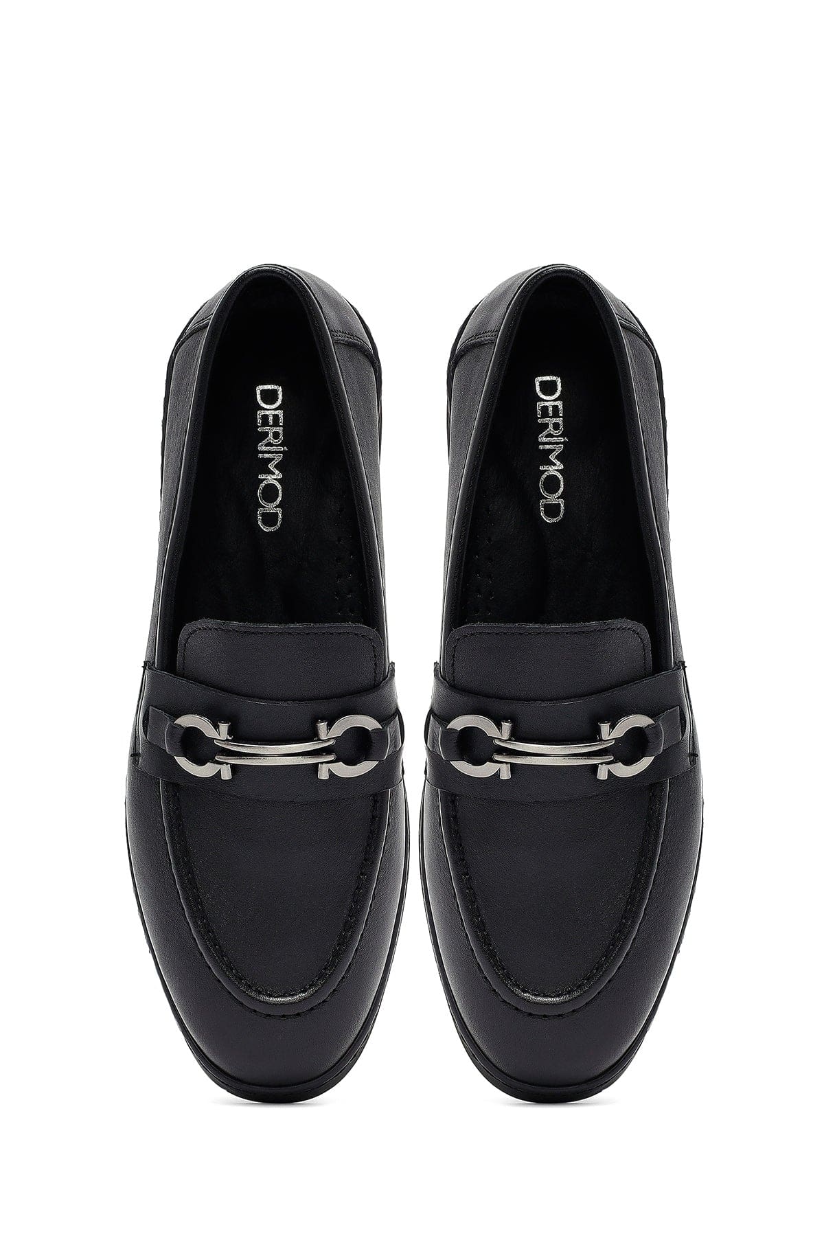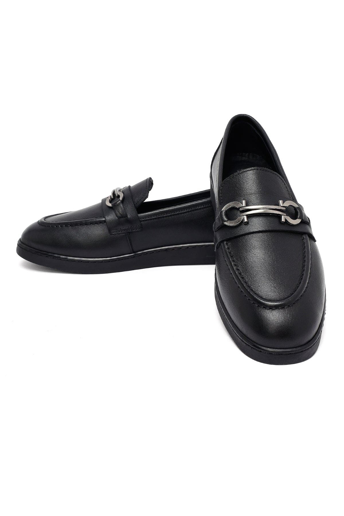 کفش لوفر زنانه مشکی چرمی بنددار دری مد