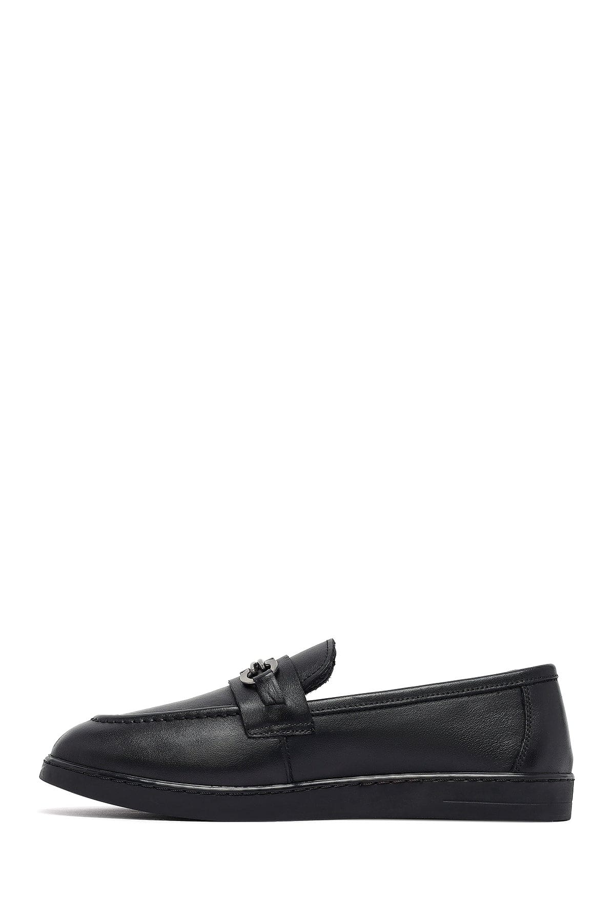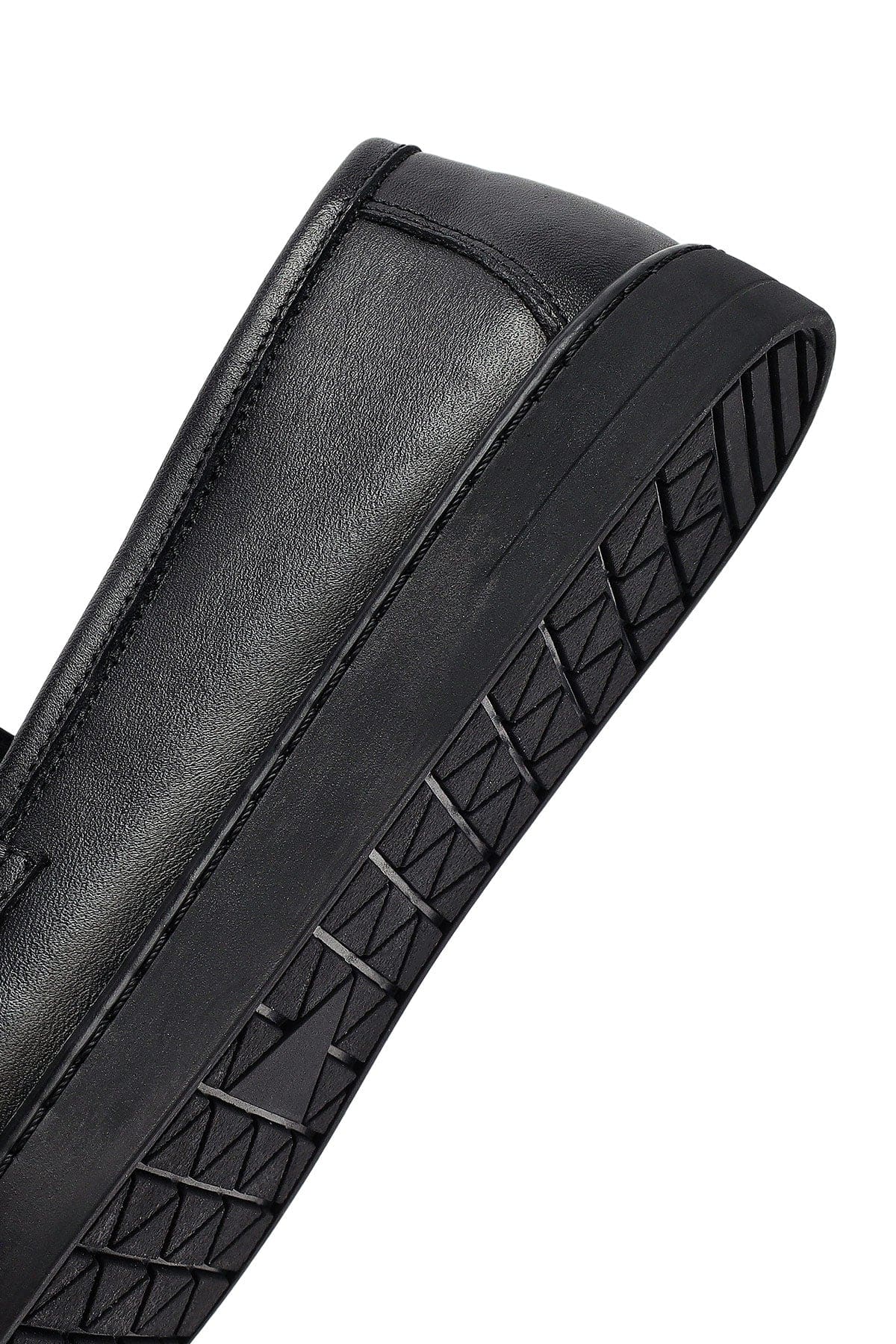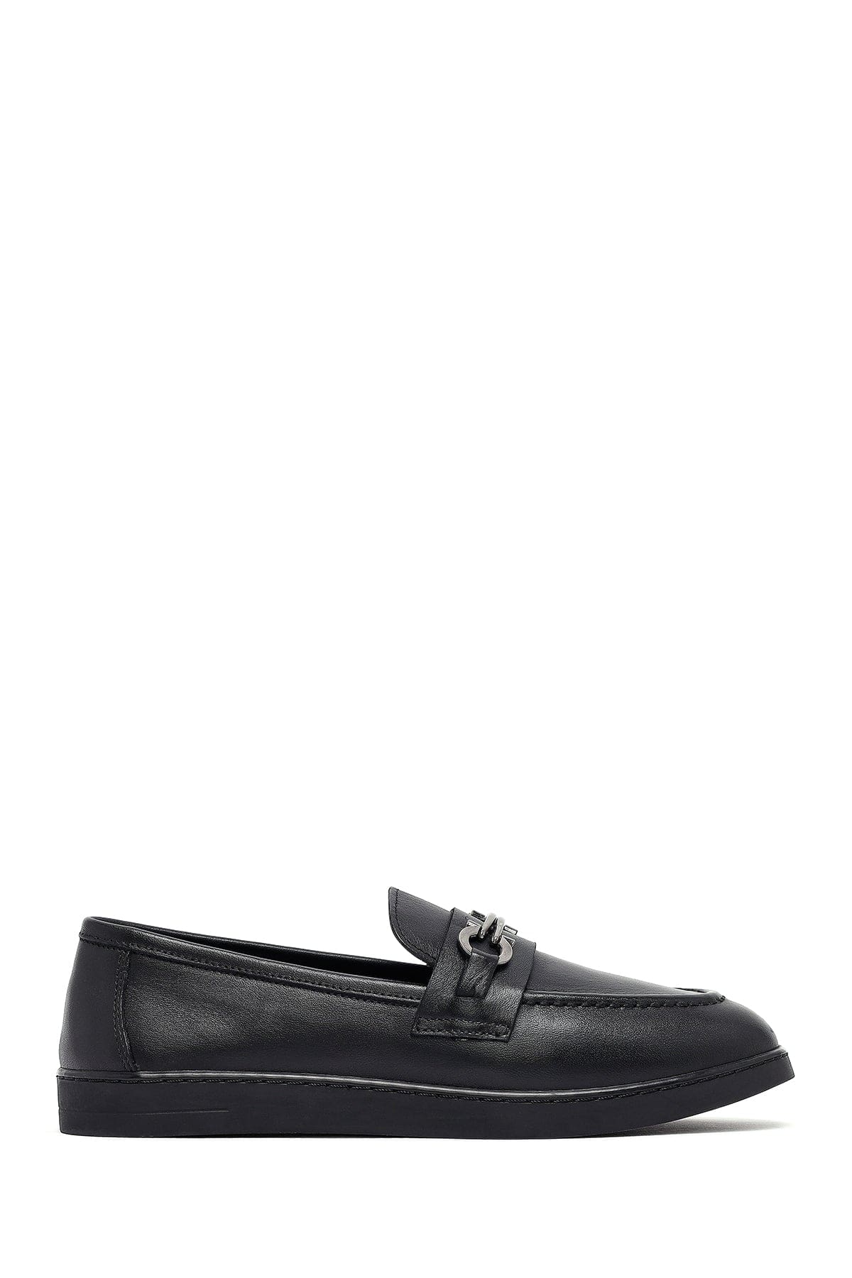 کفش لوفر زنانه مشکی چرمی بنددار دری مد