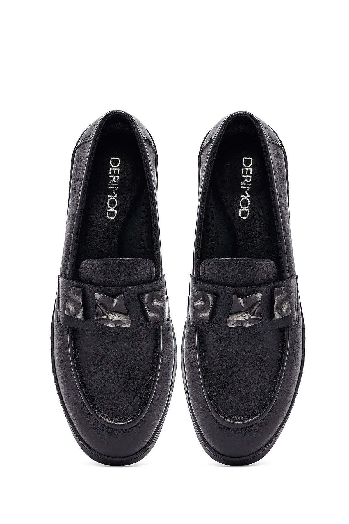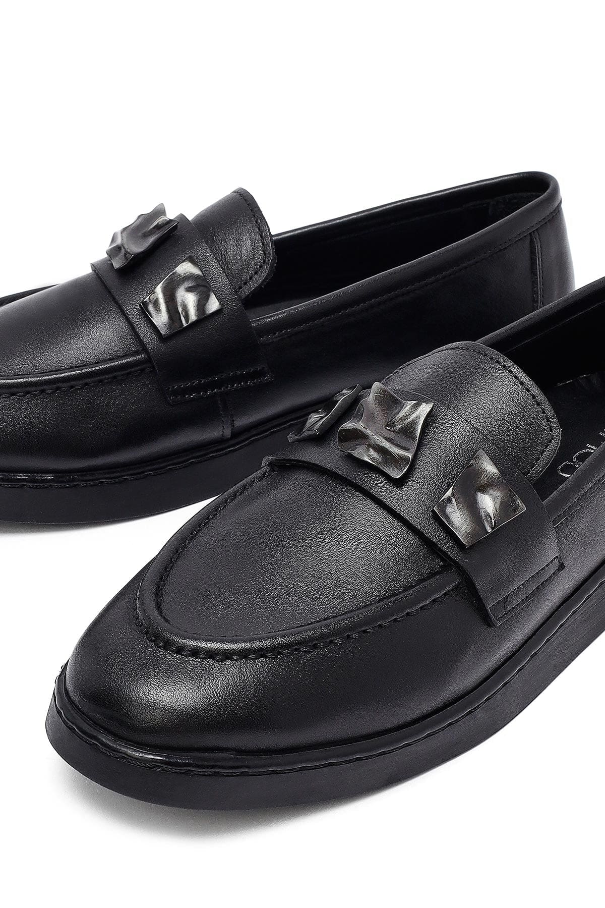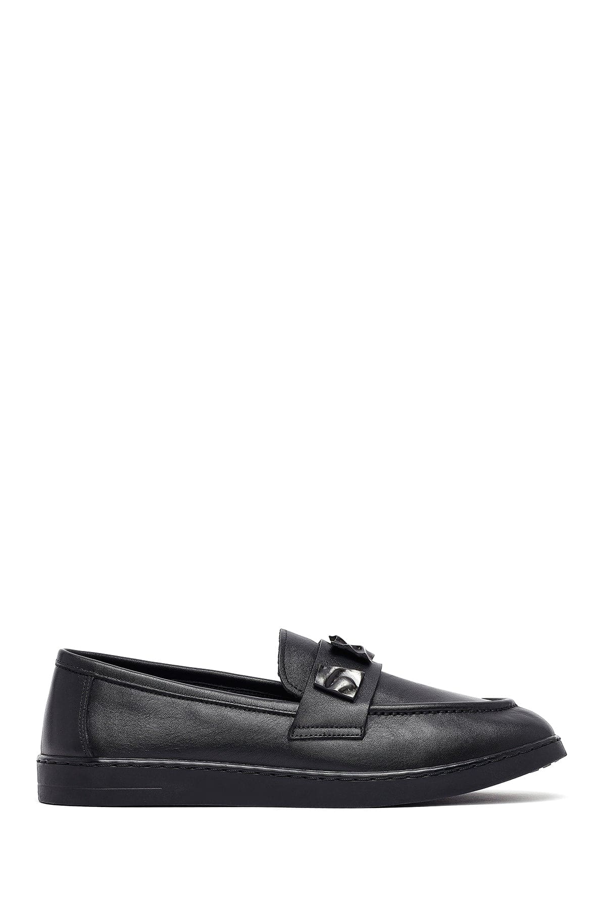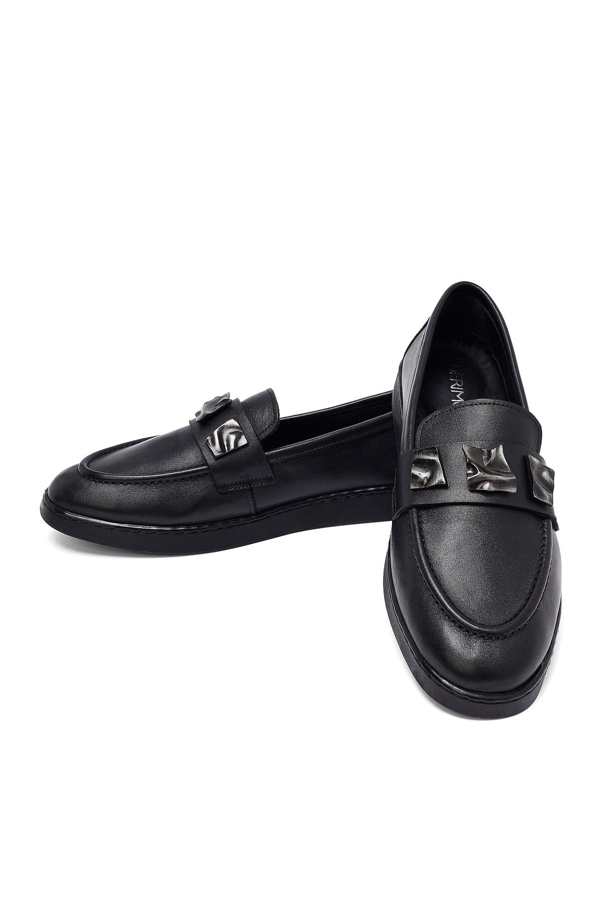 کفش لوفر زنانه مشکی چرمی بنددار دری مد