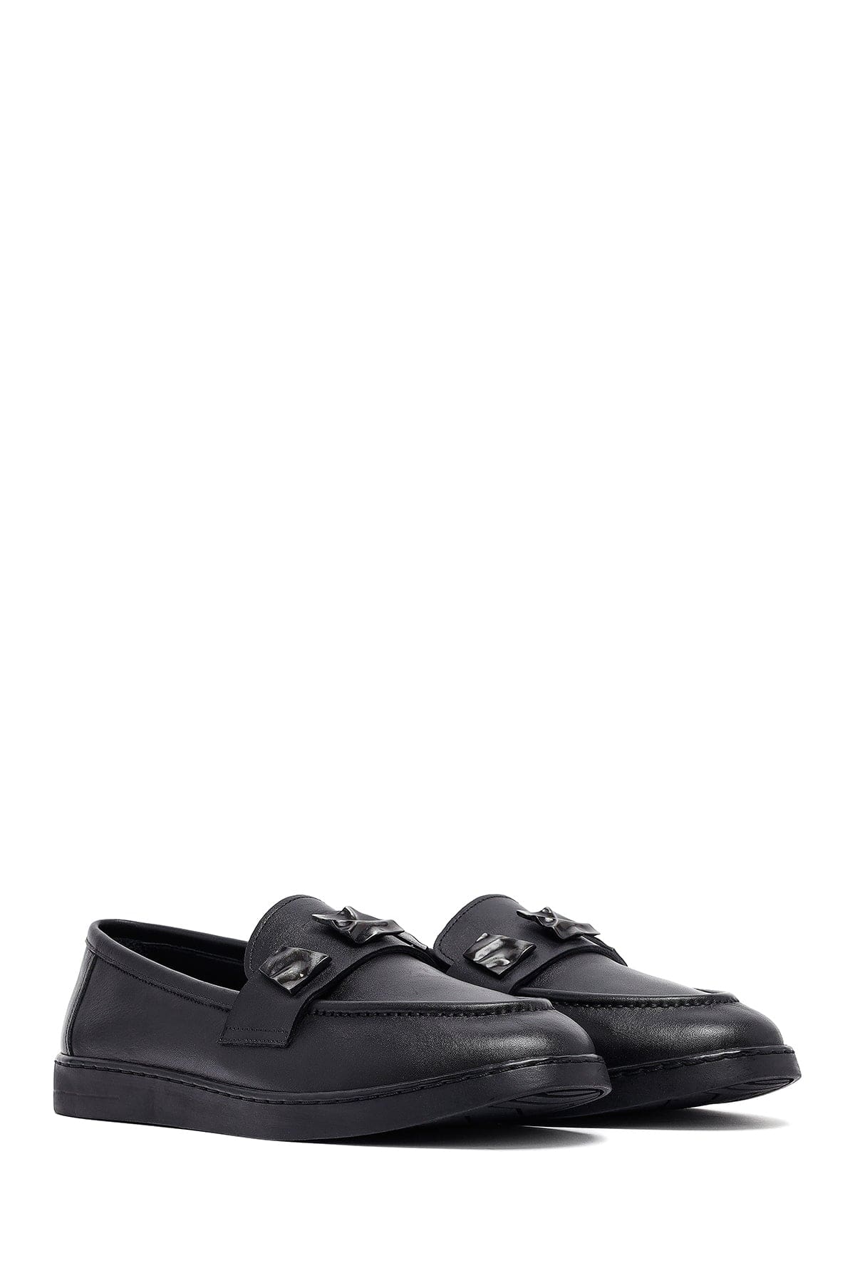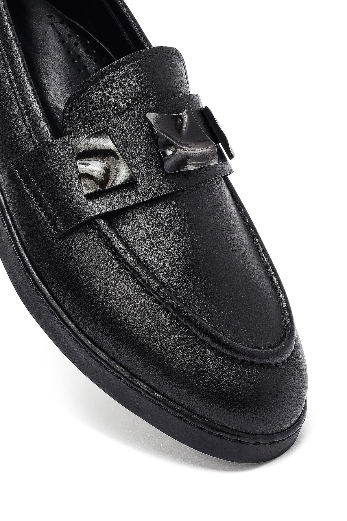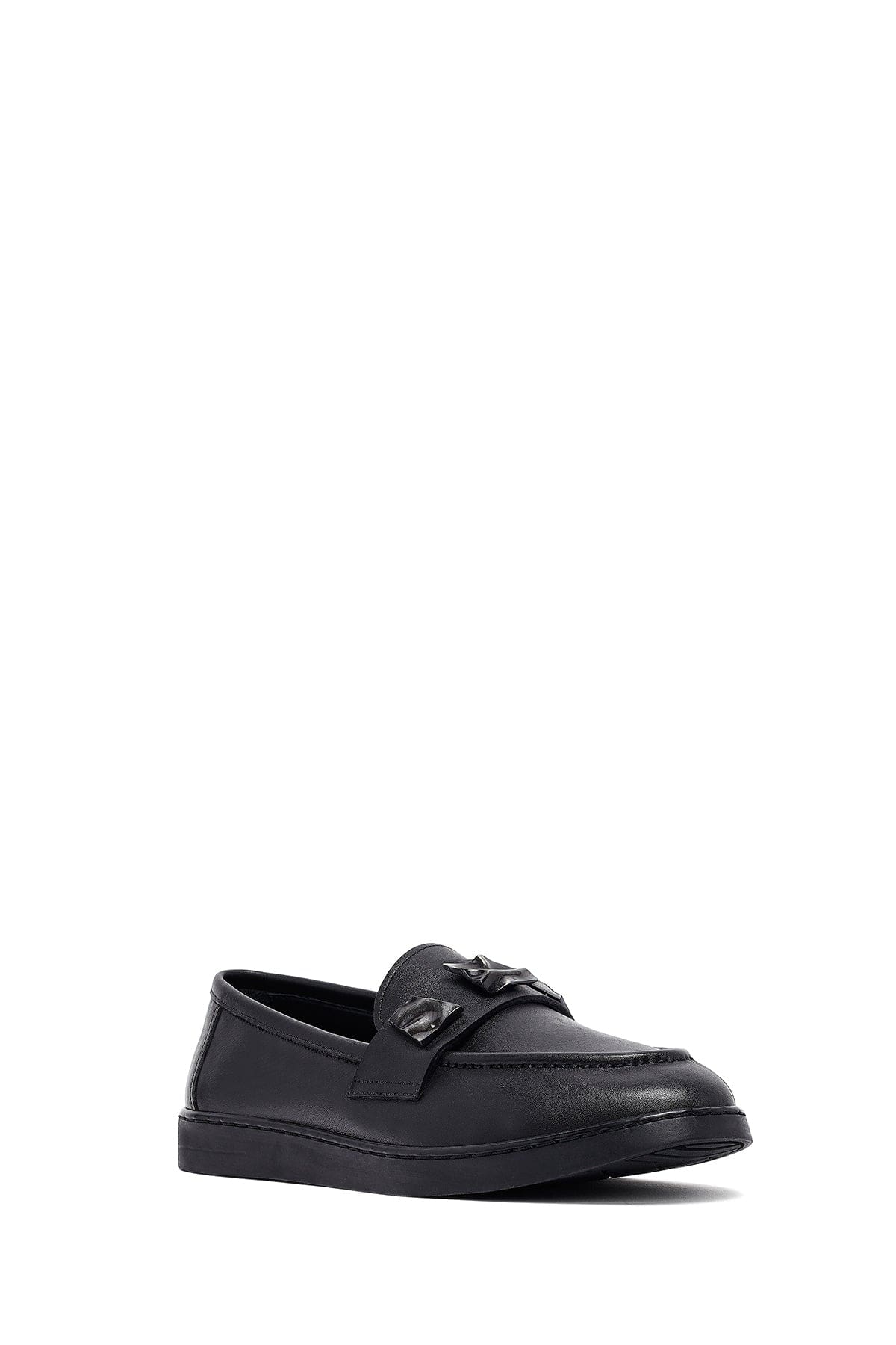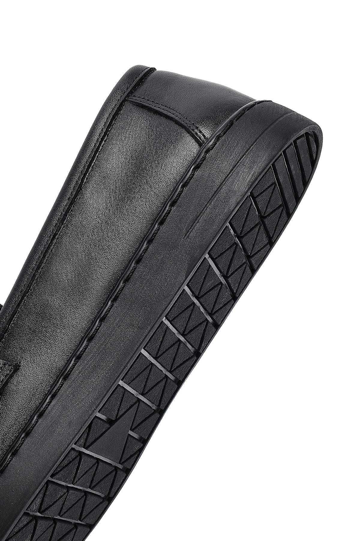 کفش لوفر زنانه مشکی چرمی بنددار دری مد