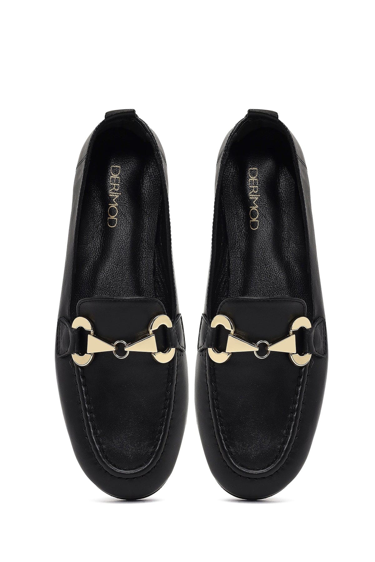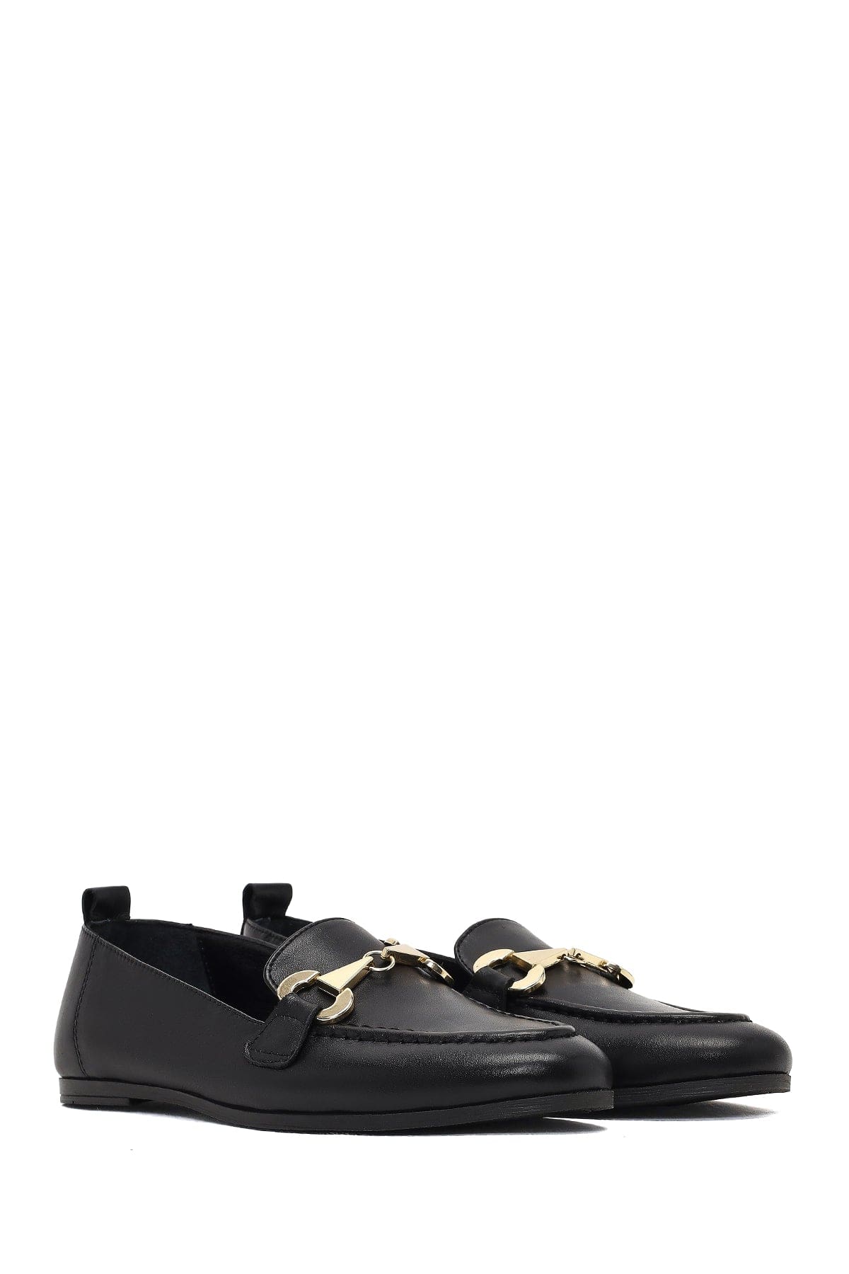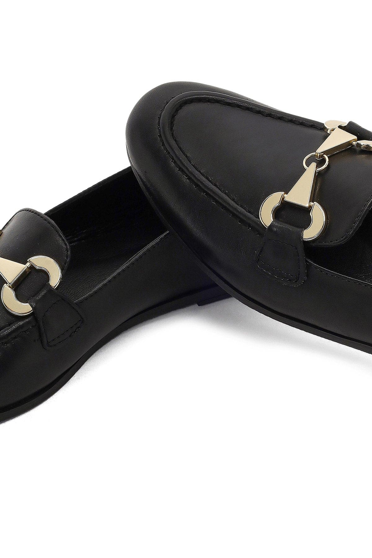 کفش لوفر زنانه مشکی چرمی بنددار دری مد