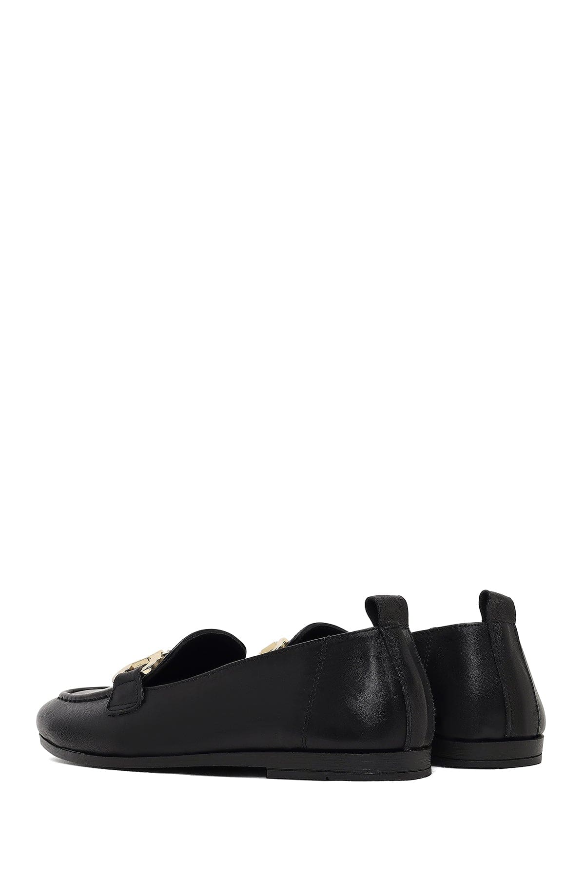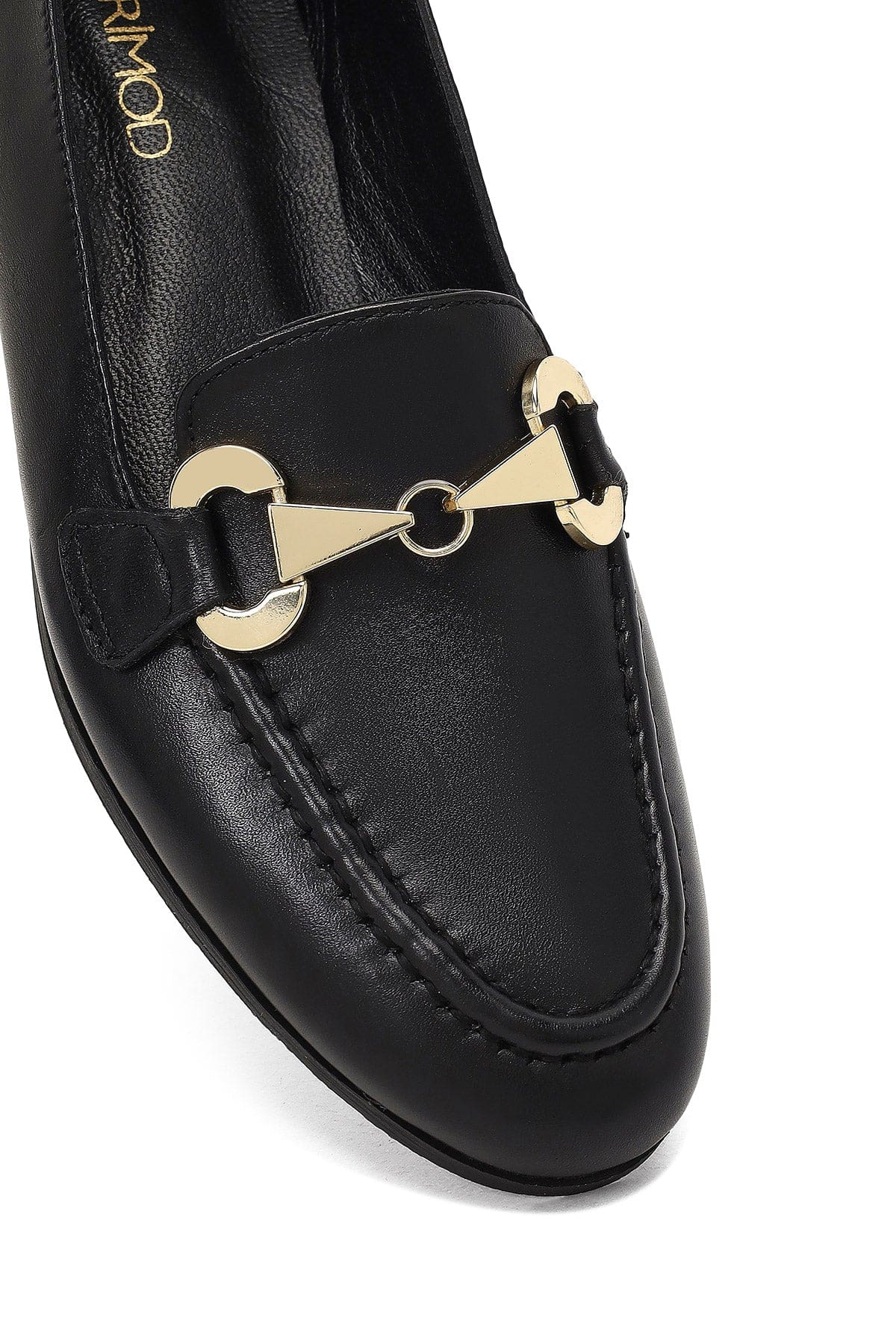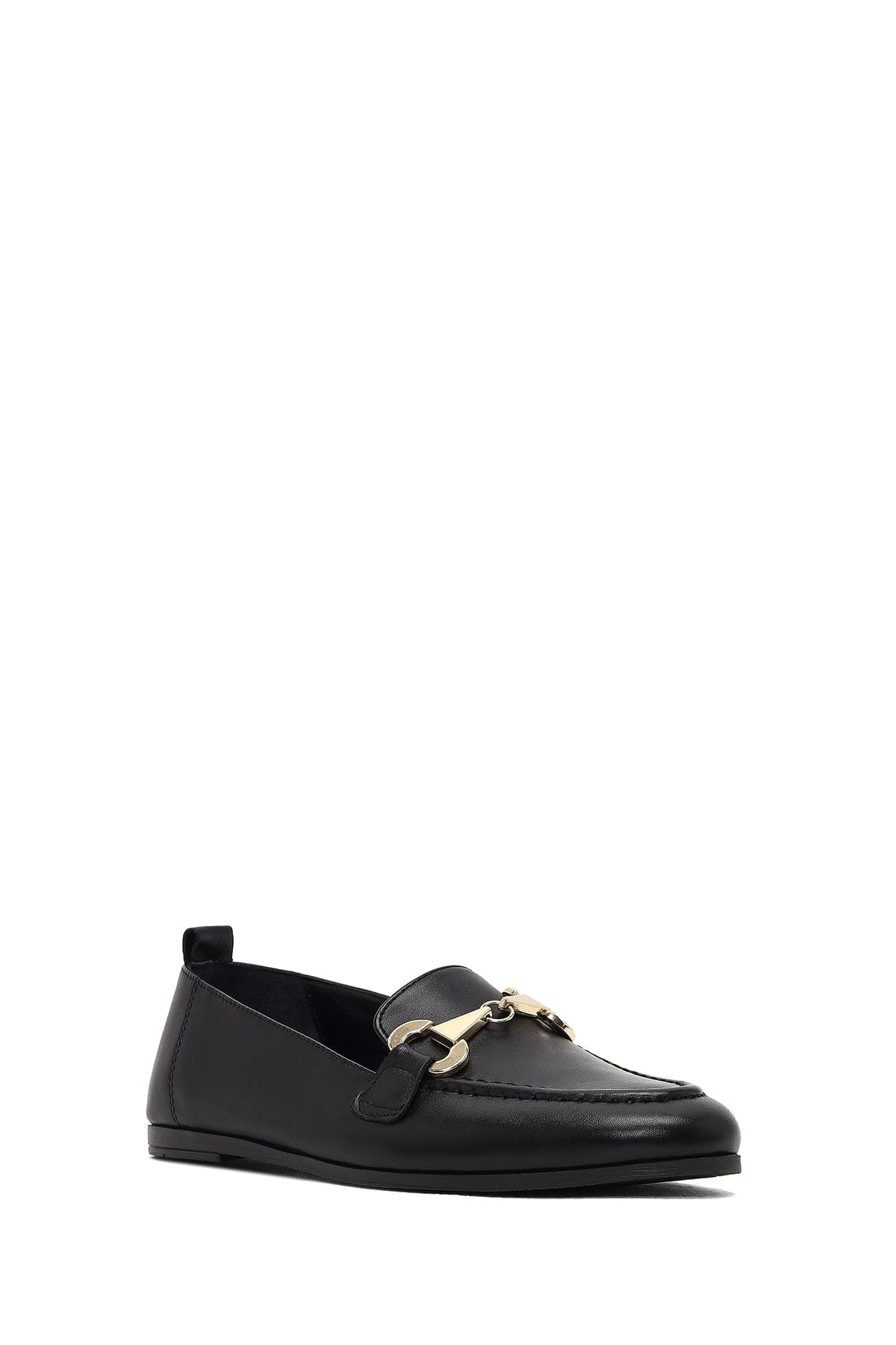کفش لوفر زنانه مشکی چرمی بنددار دری مد