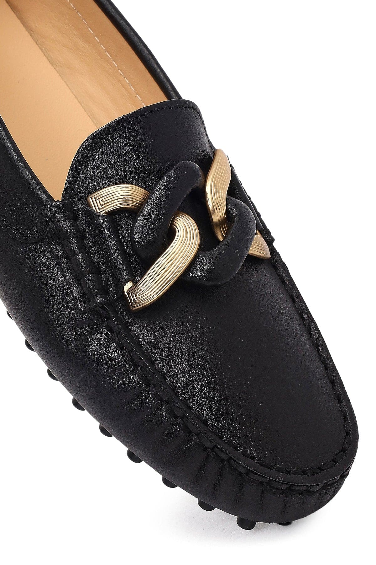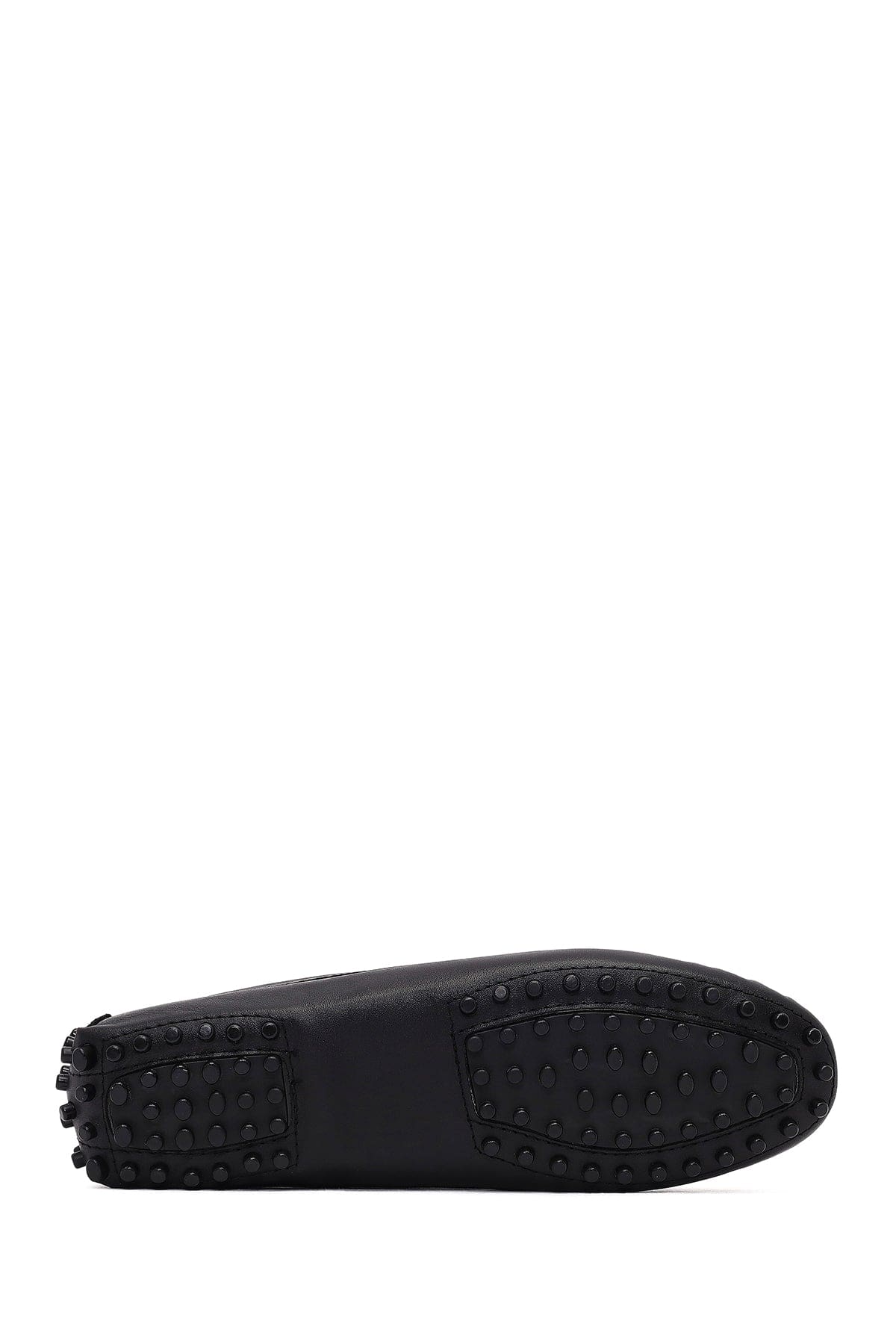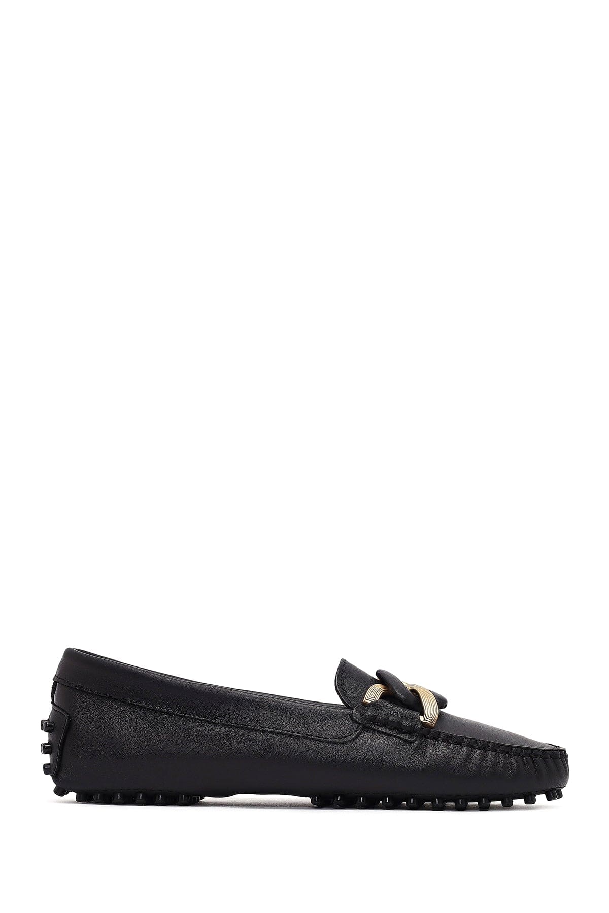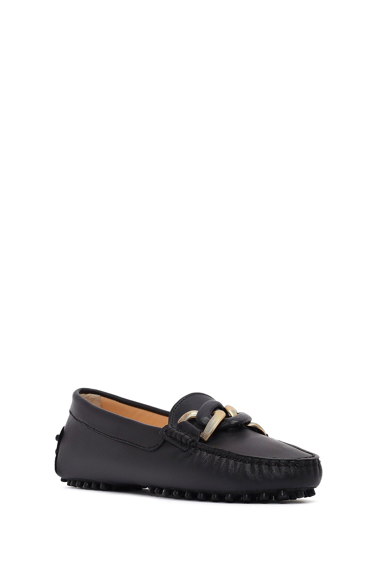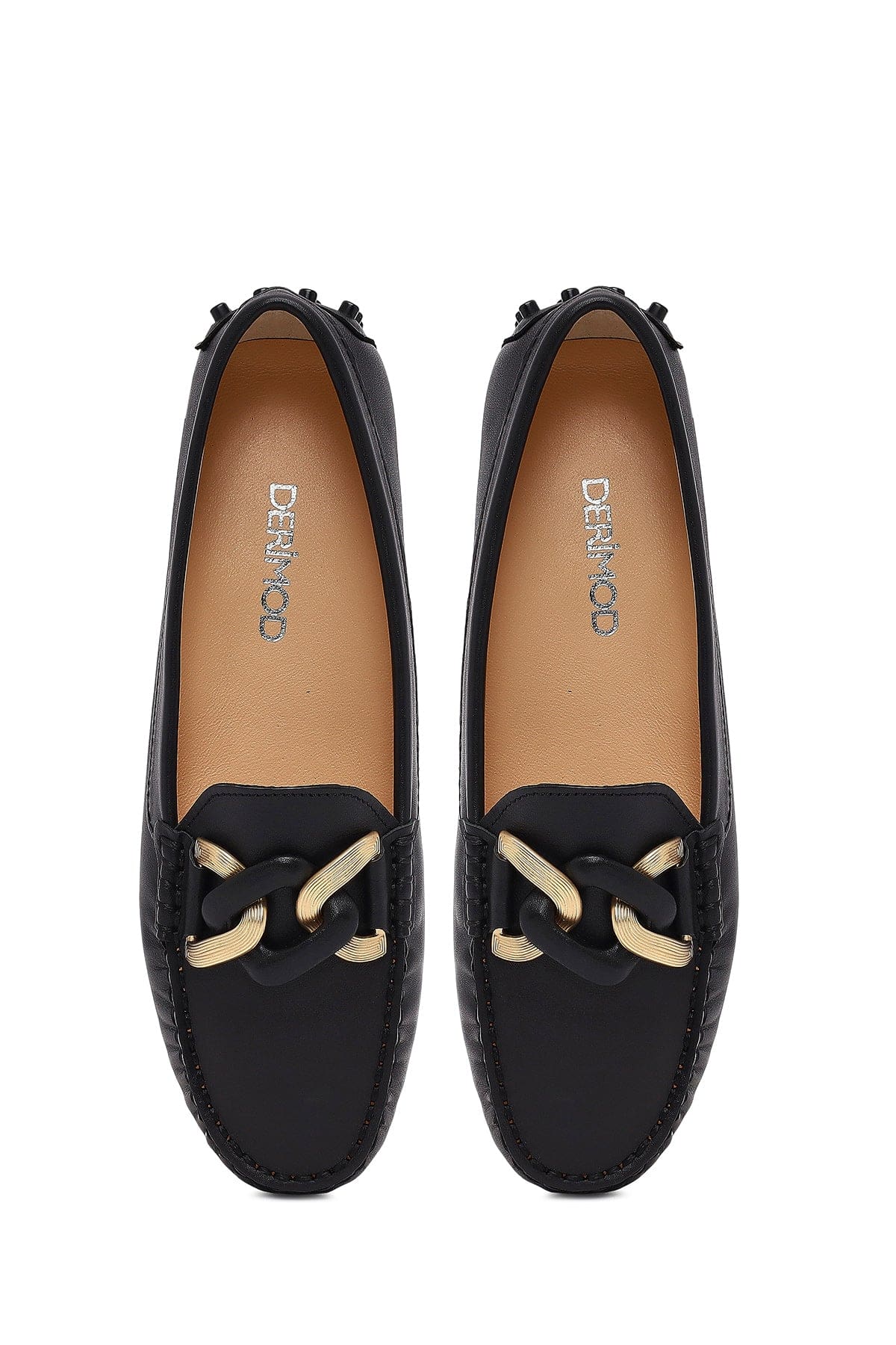 کفش لوفر زنانه مشکی چرمی بنددار دری مد