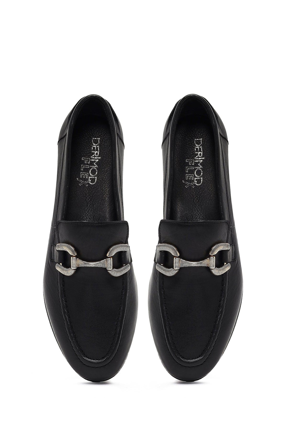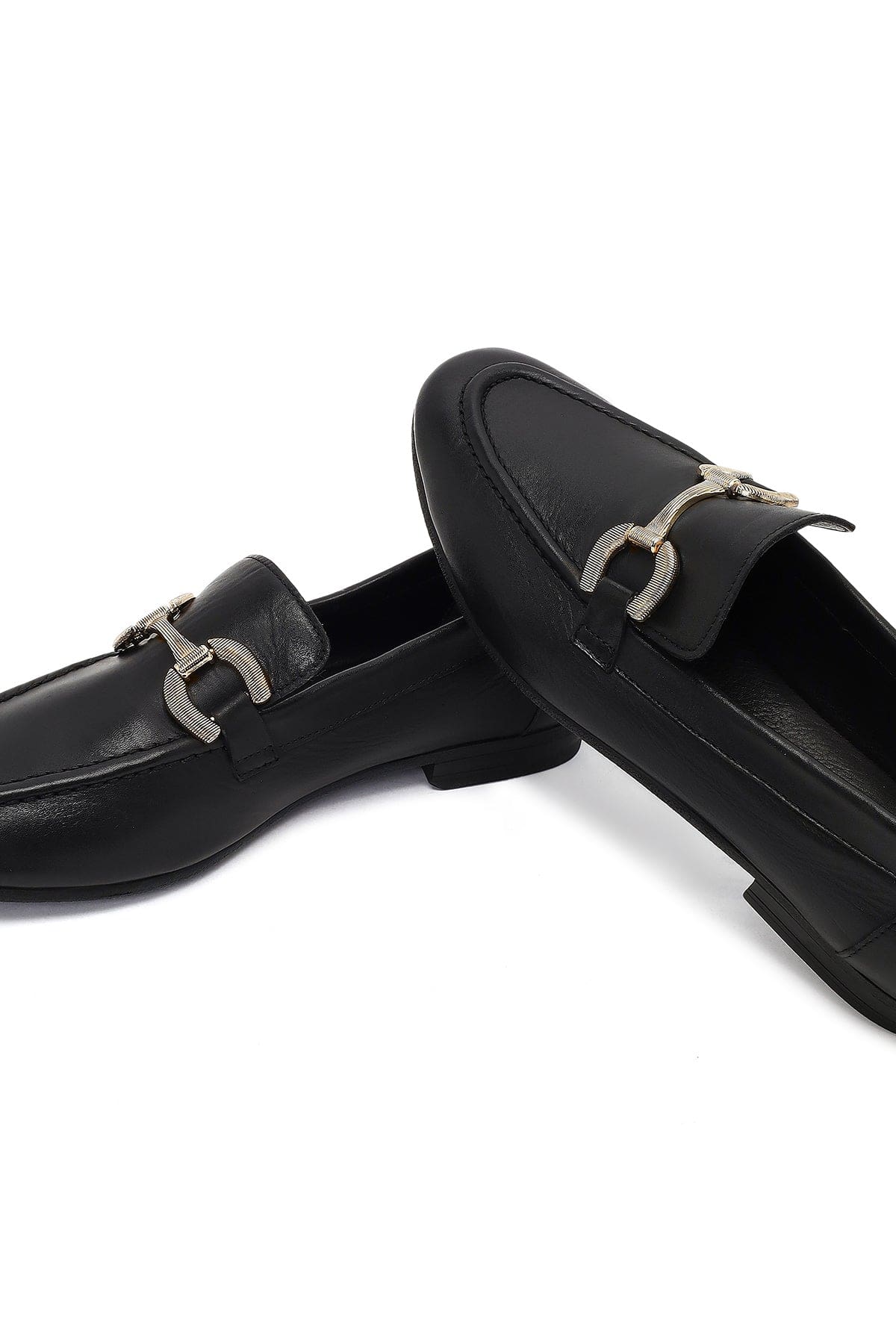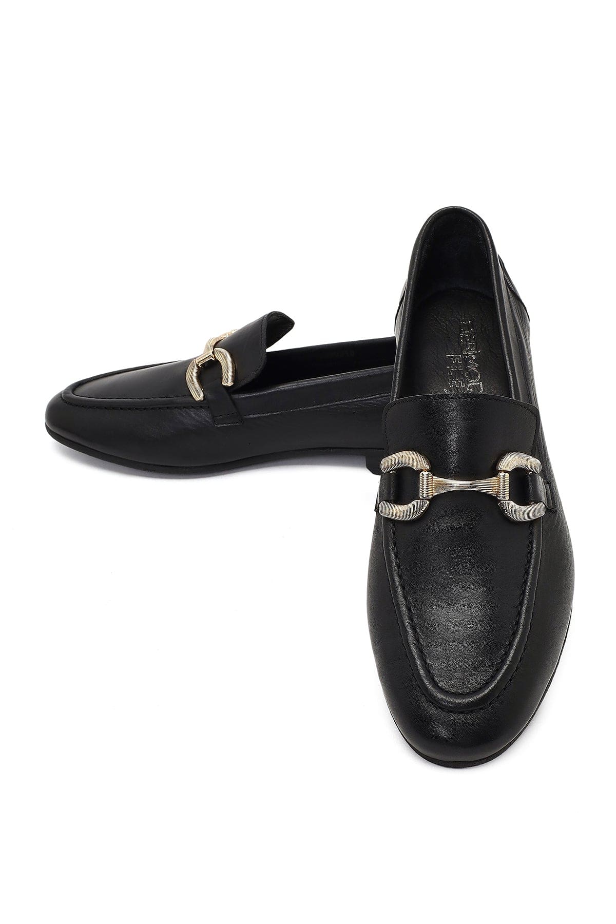 کفش لوفر زنانه مشکی چرمی بنددار دری مد