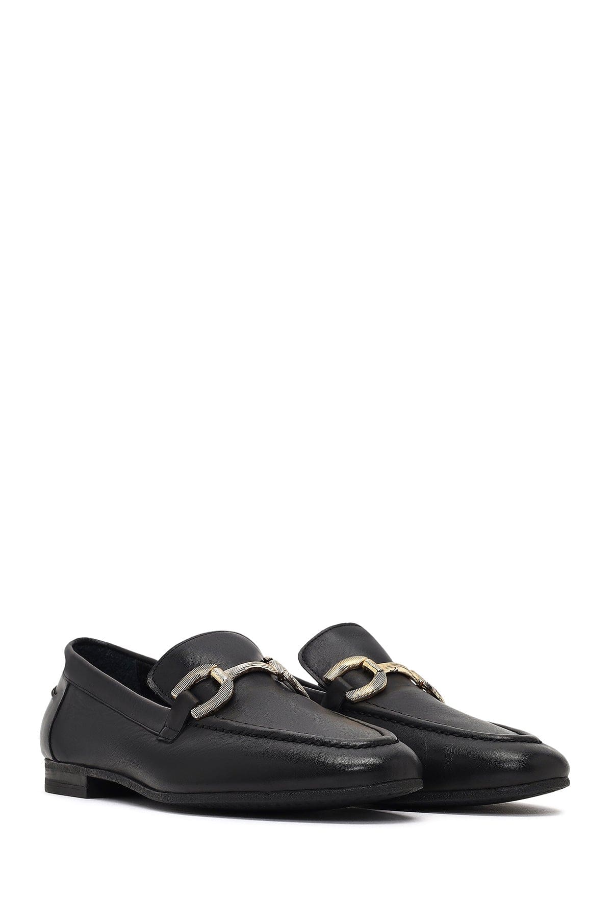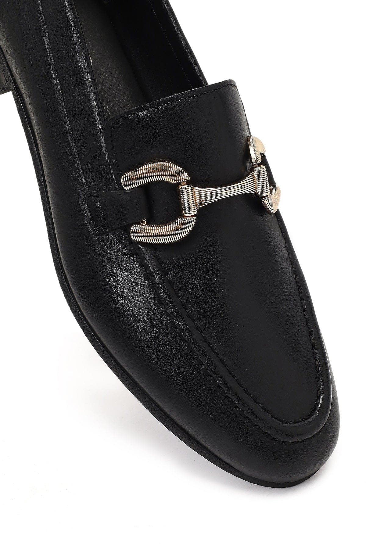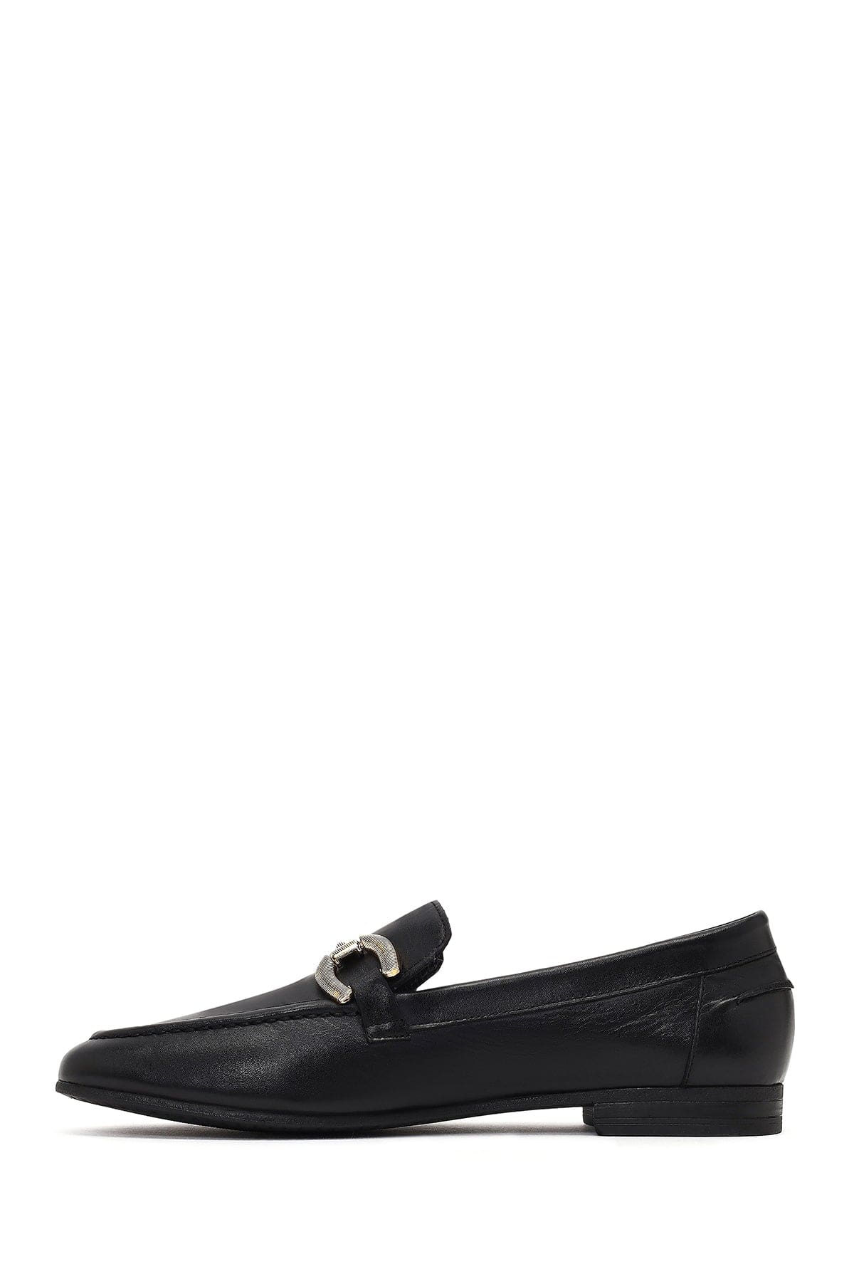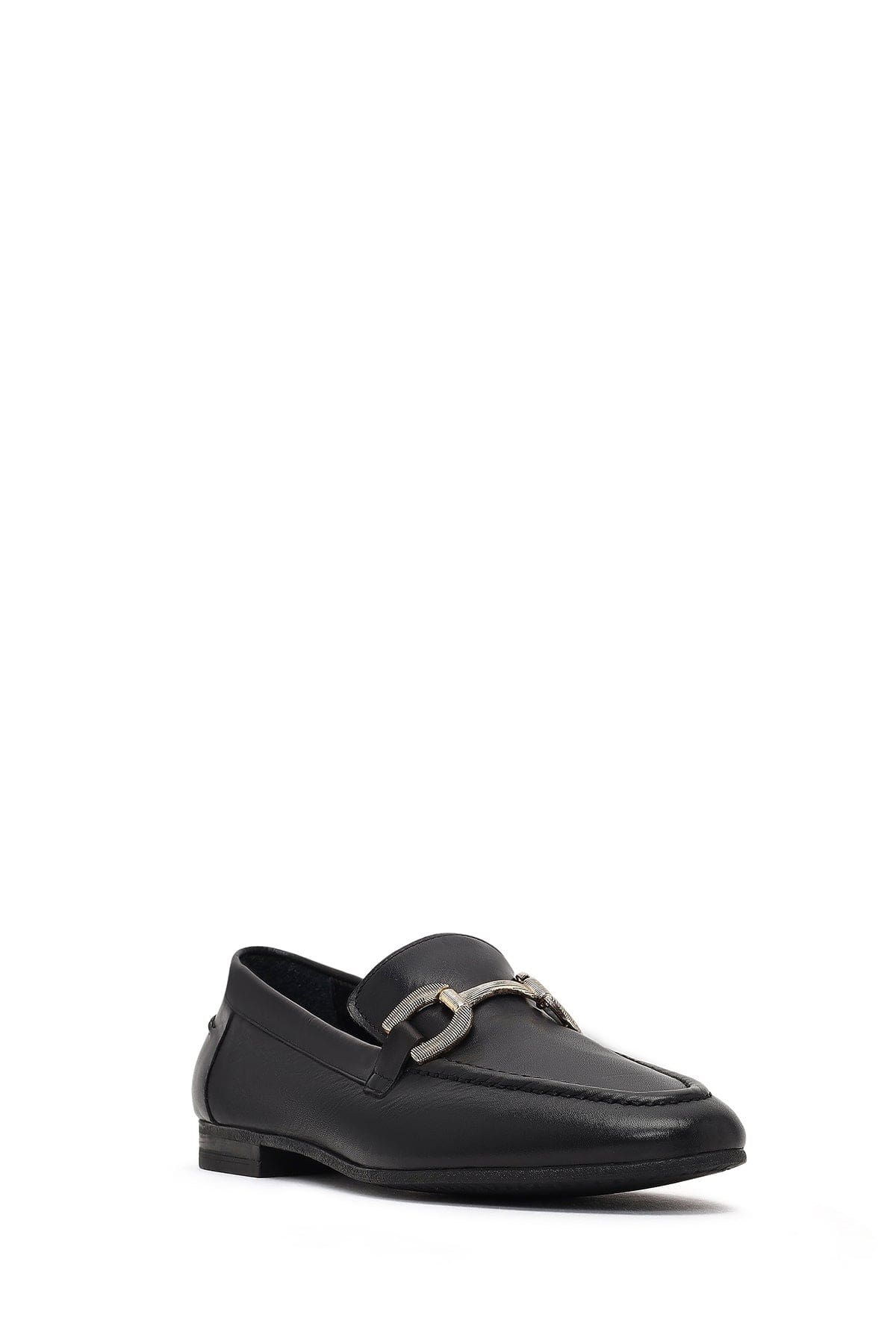 کفش لوفر زنانه مشکی چرمی بنددار دری مد