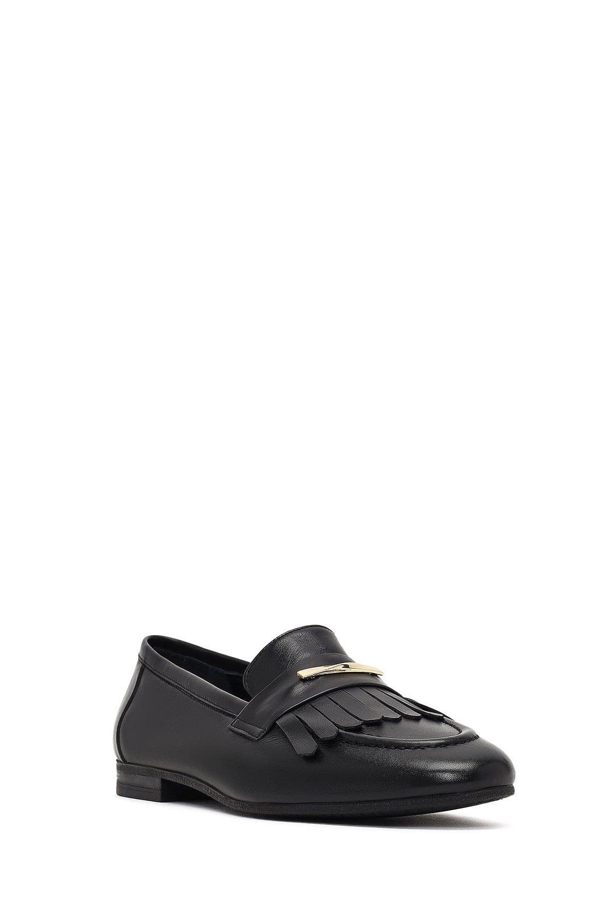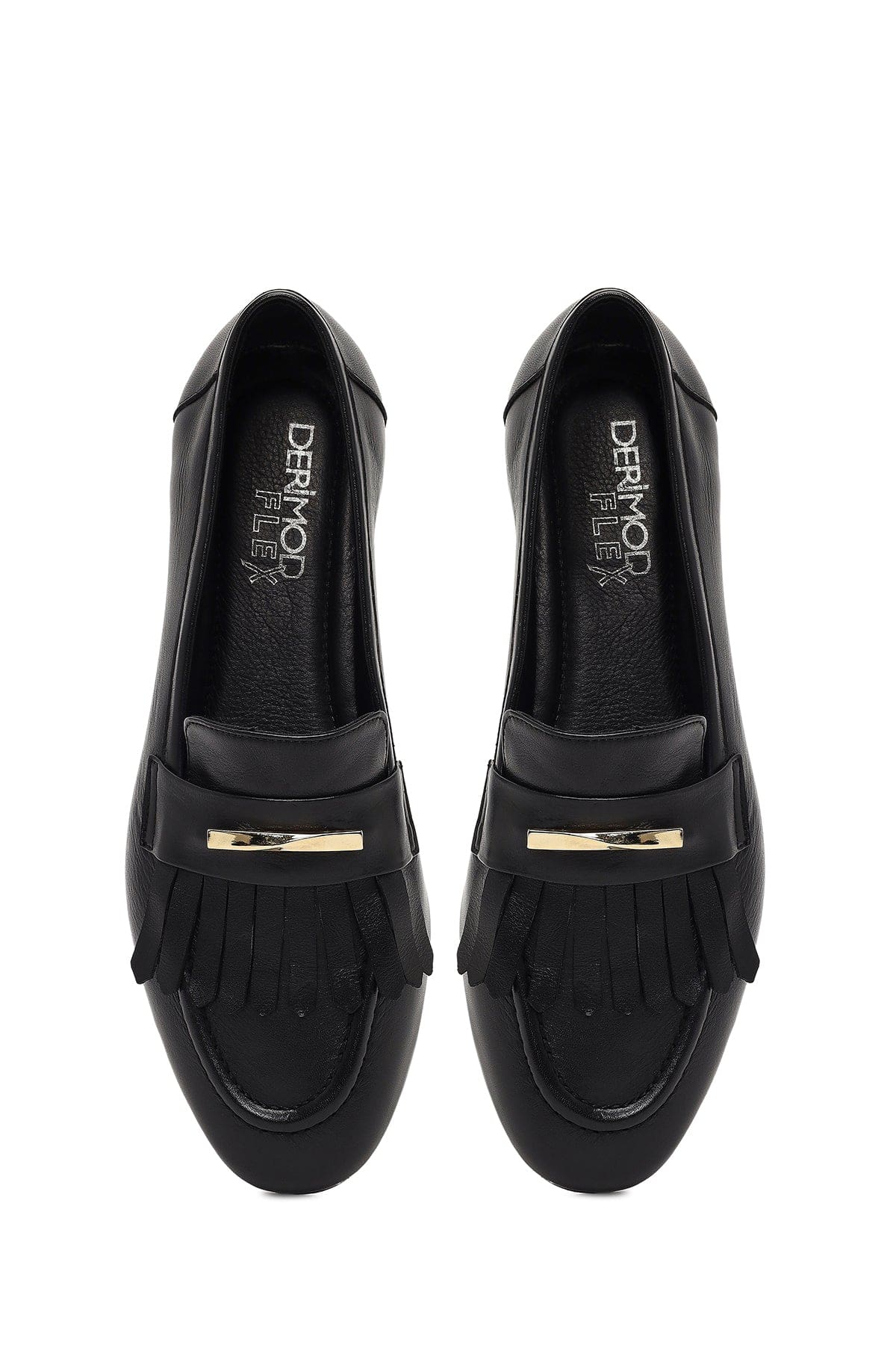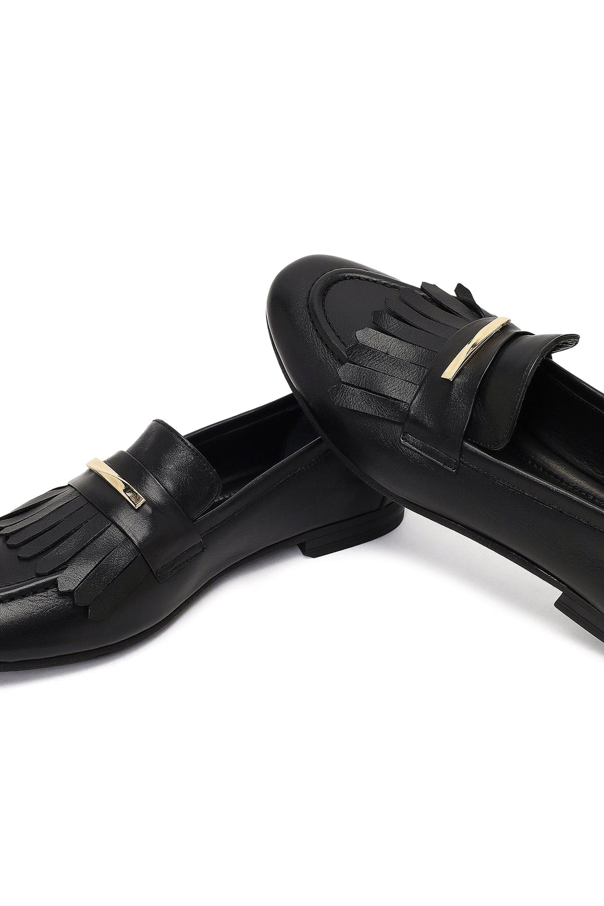 کفش لوفر زنانه مشکی چرمی بنددار دری مد