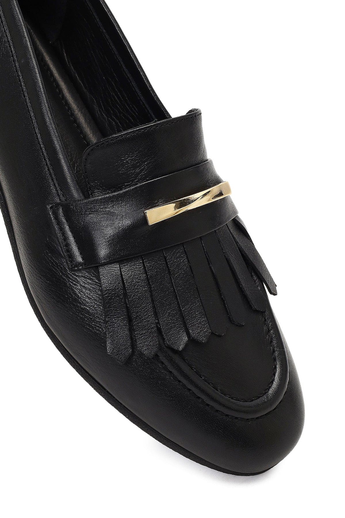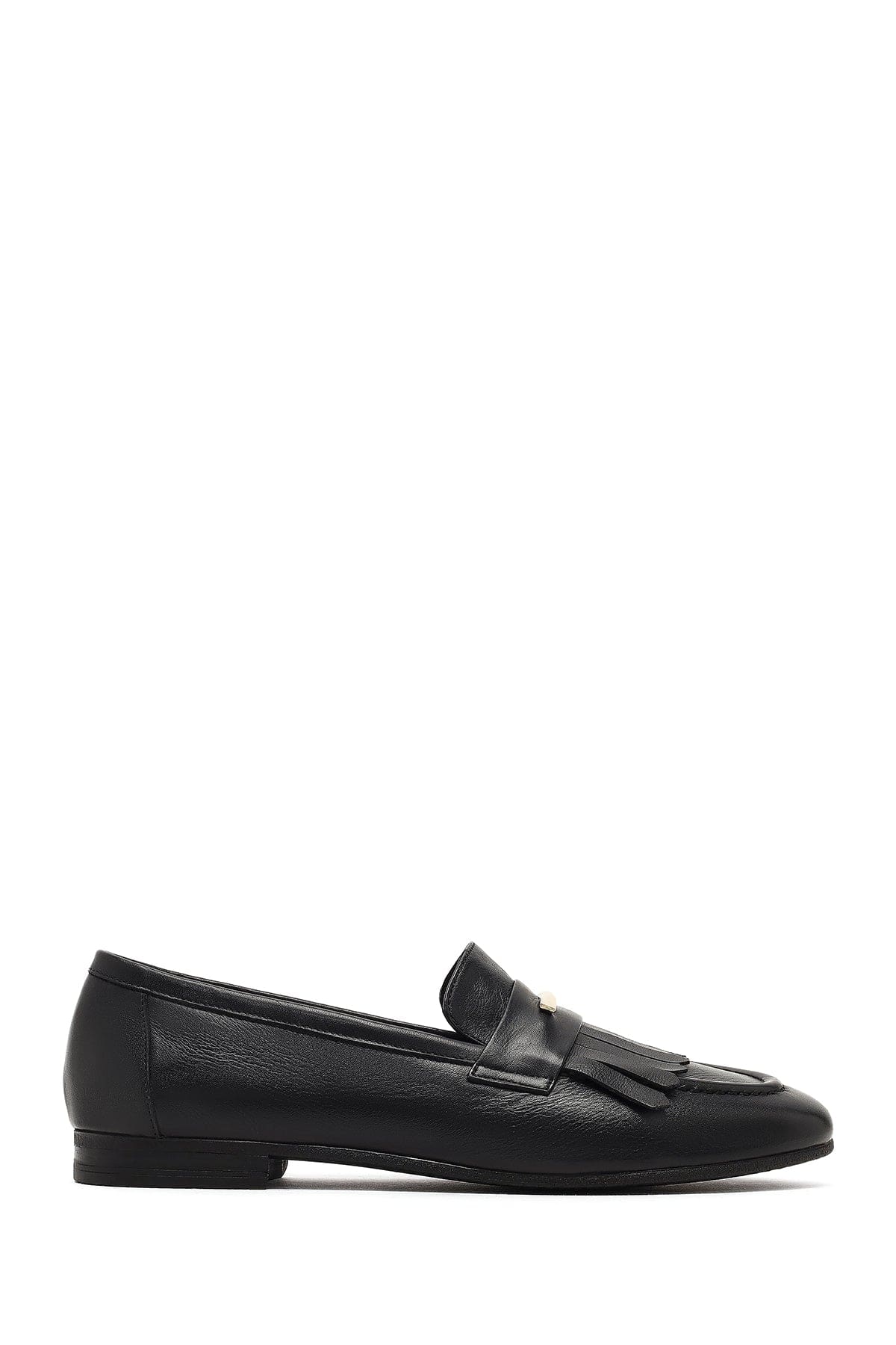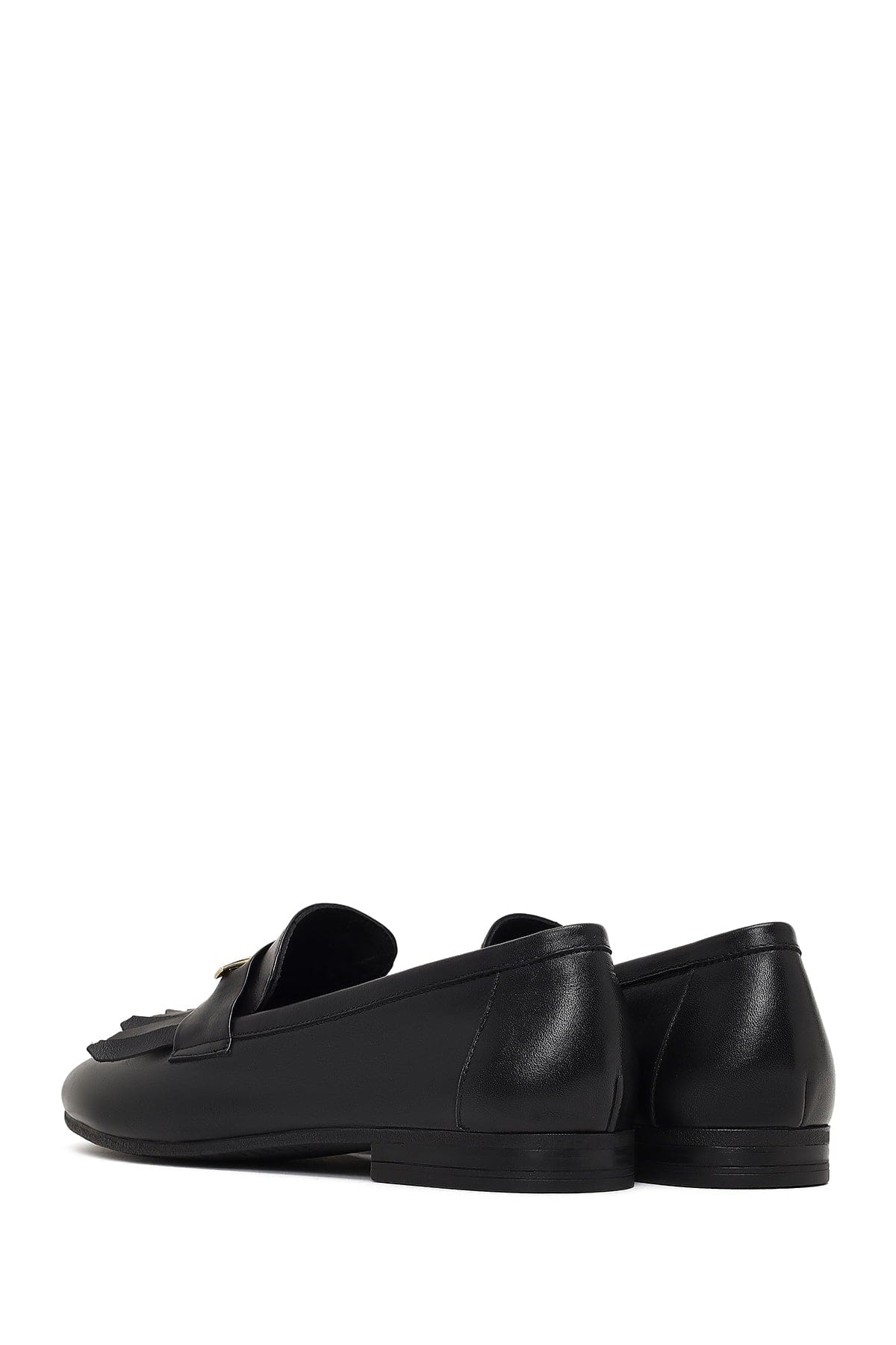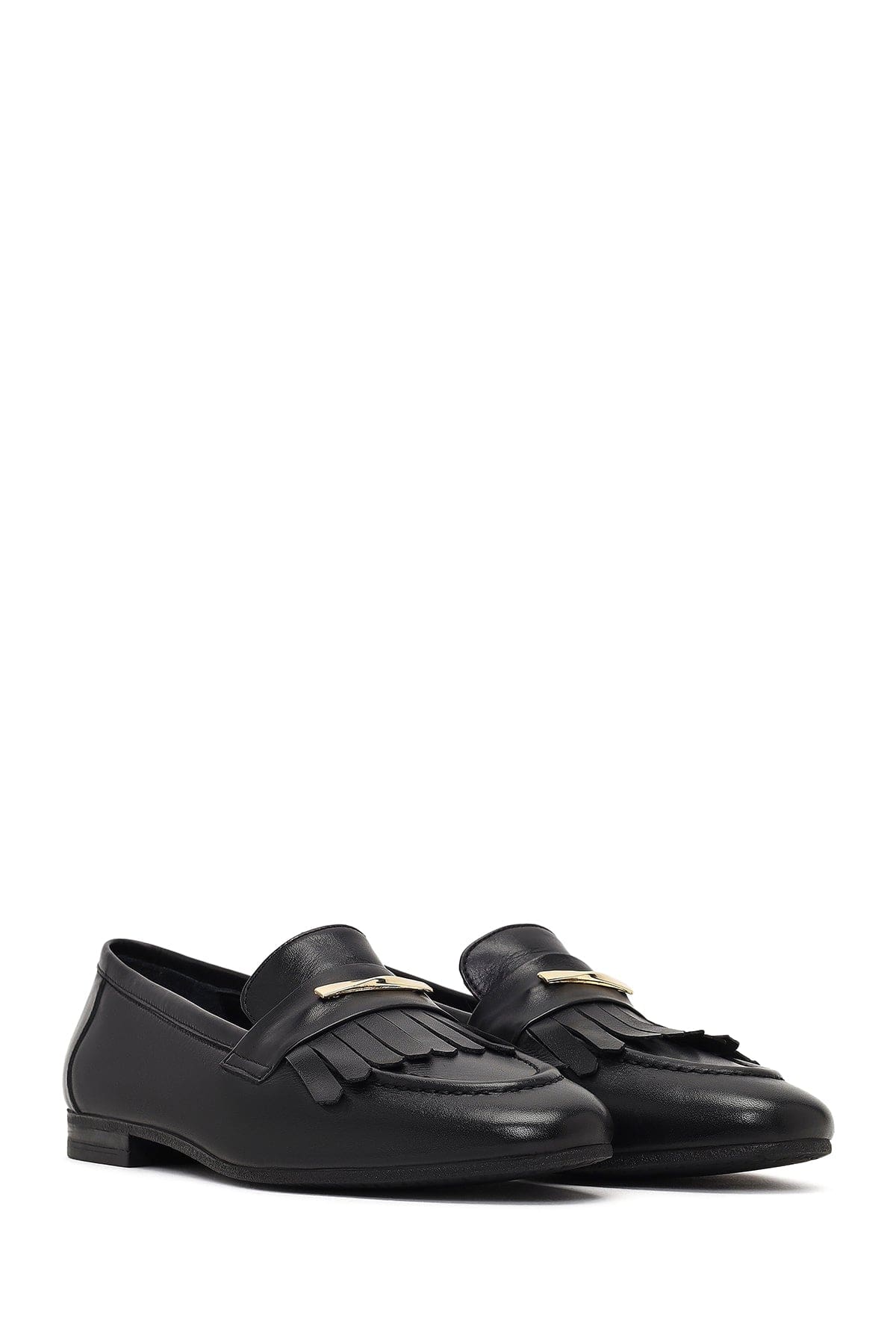 کفش لوفر زنانه مشکی چرمی بنددار دری مد