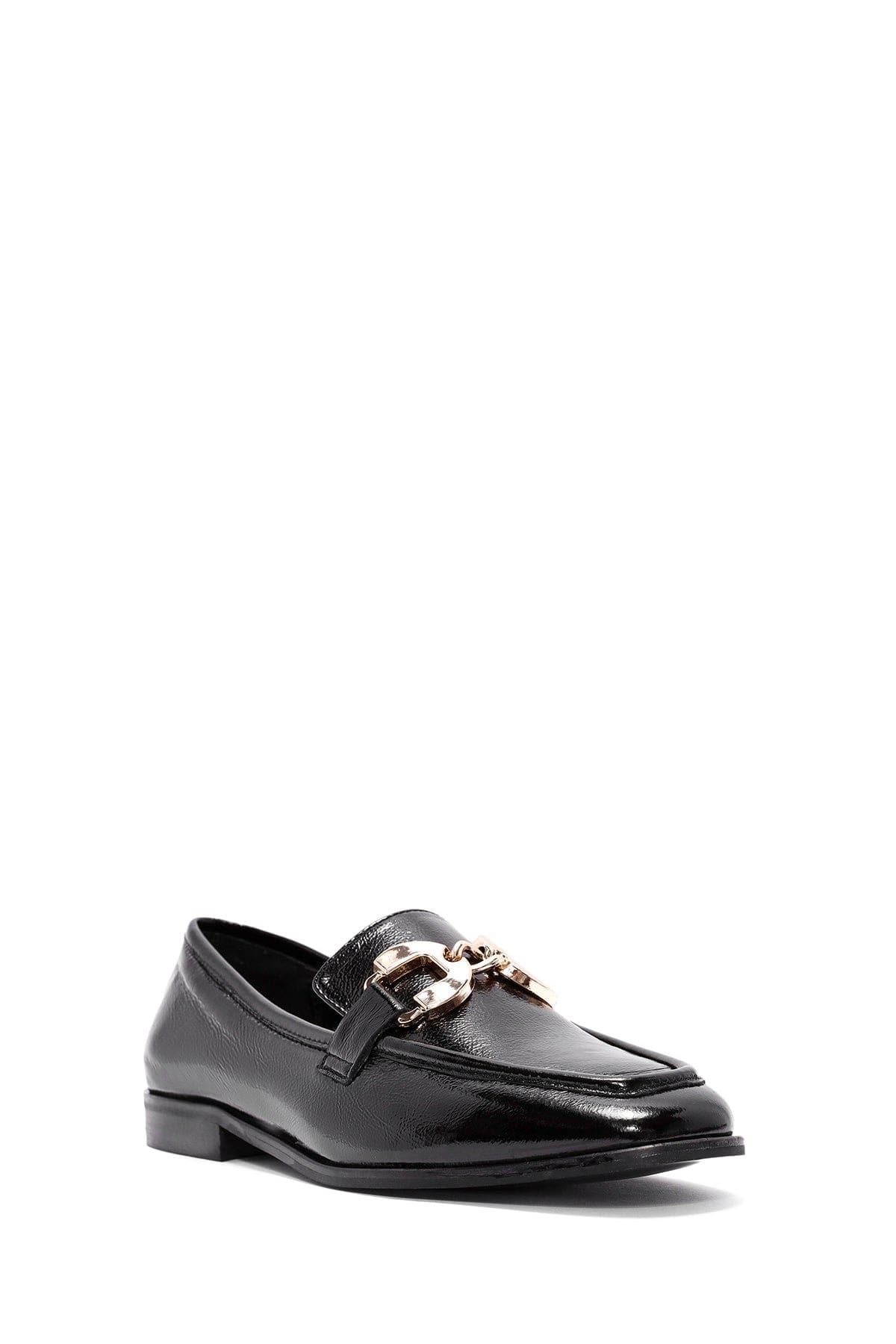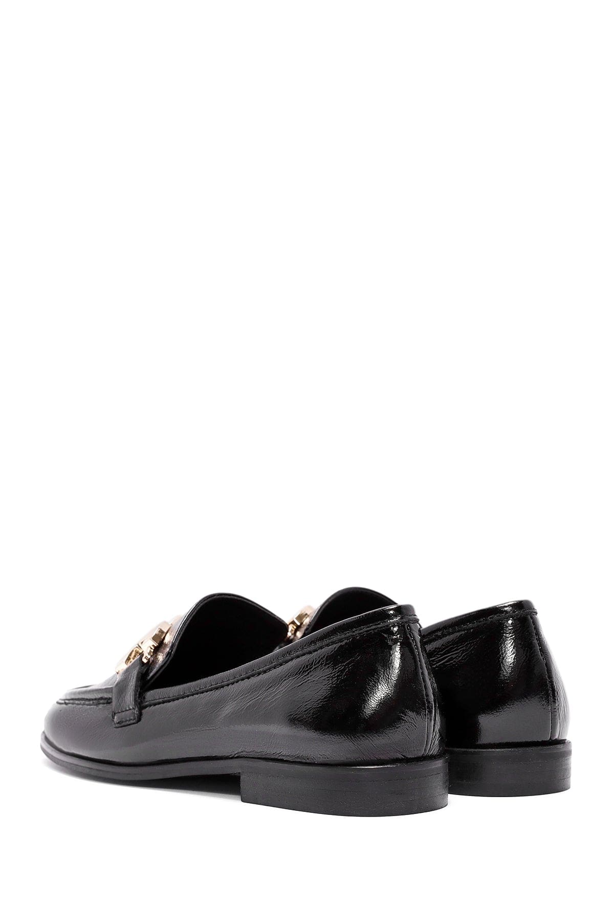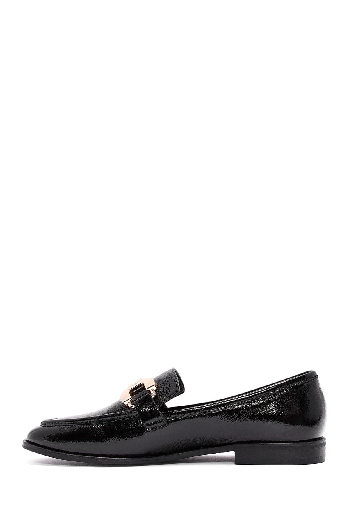 Kadın Siyah Toka Detaylı Deri Maskülen Loafer