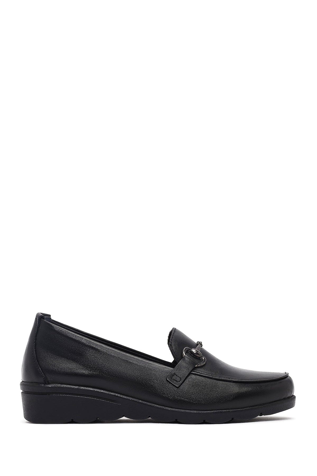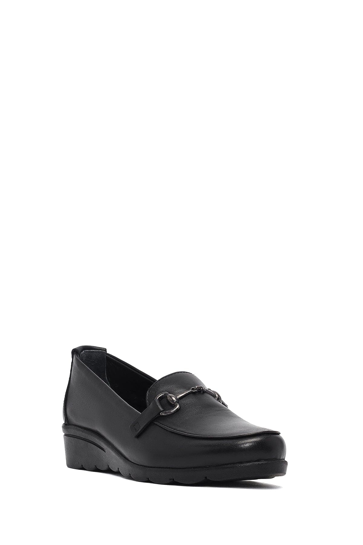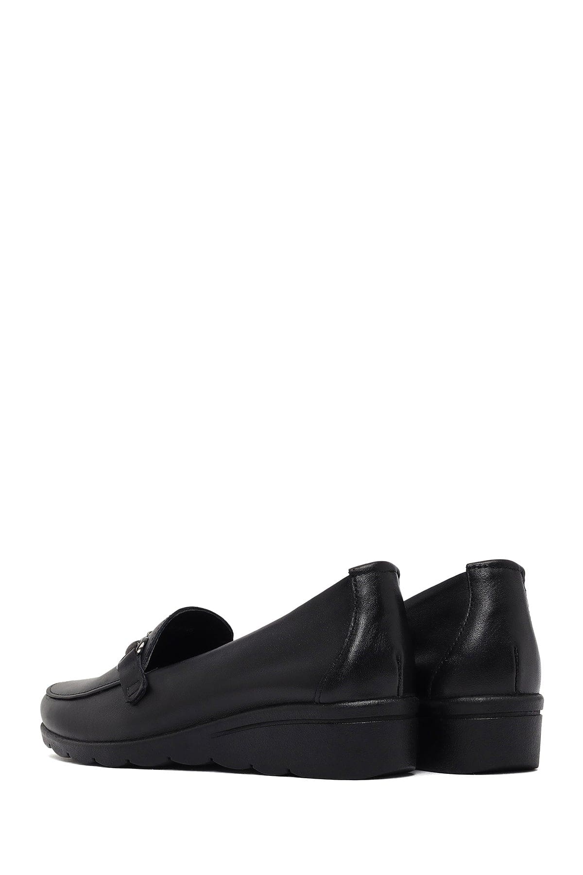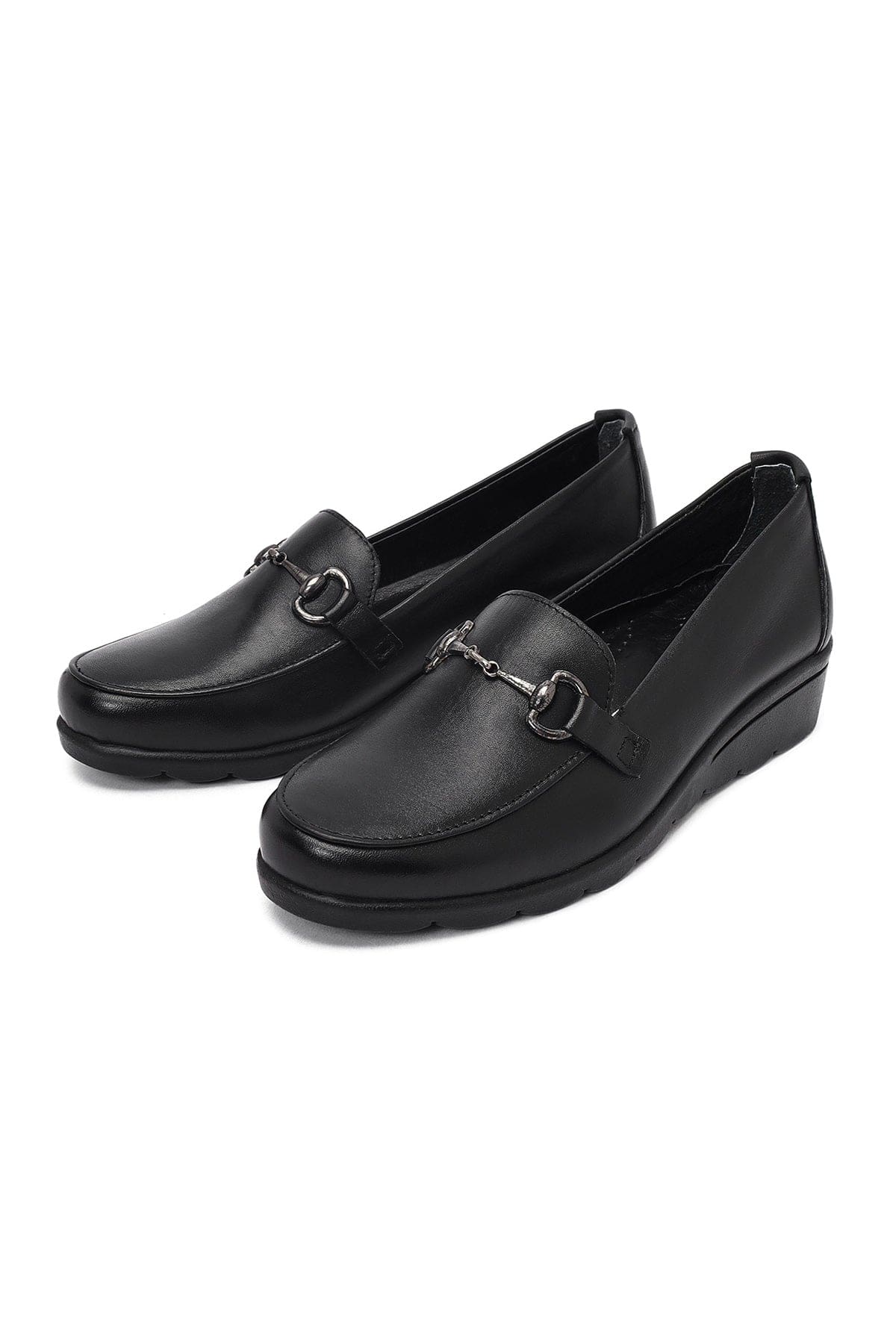 Kadın Siyah Tokalı Dolgu Topuklu Deri Loafer