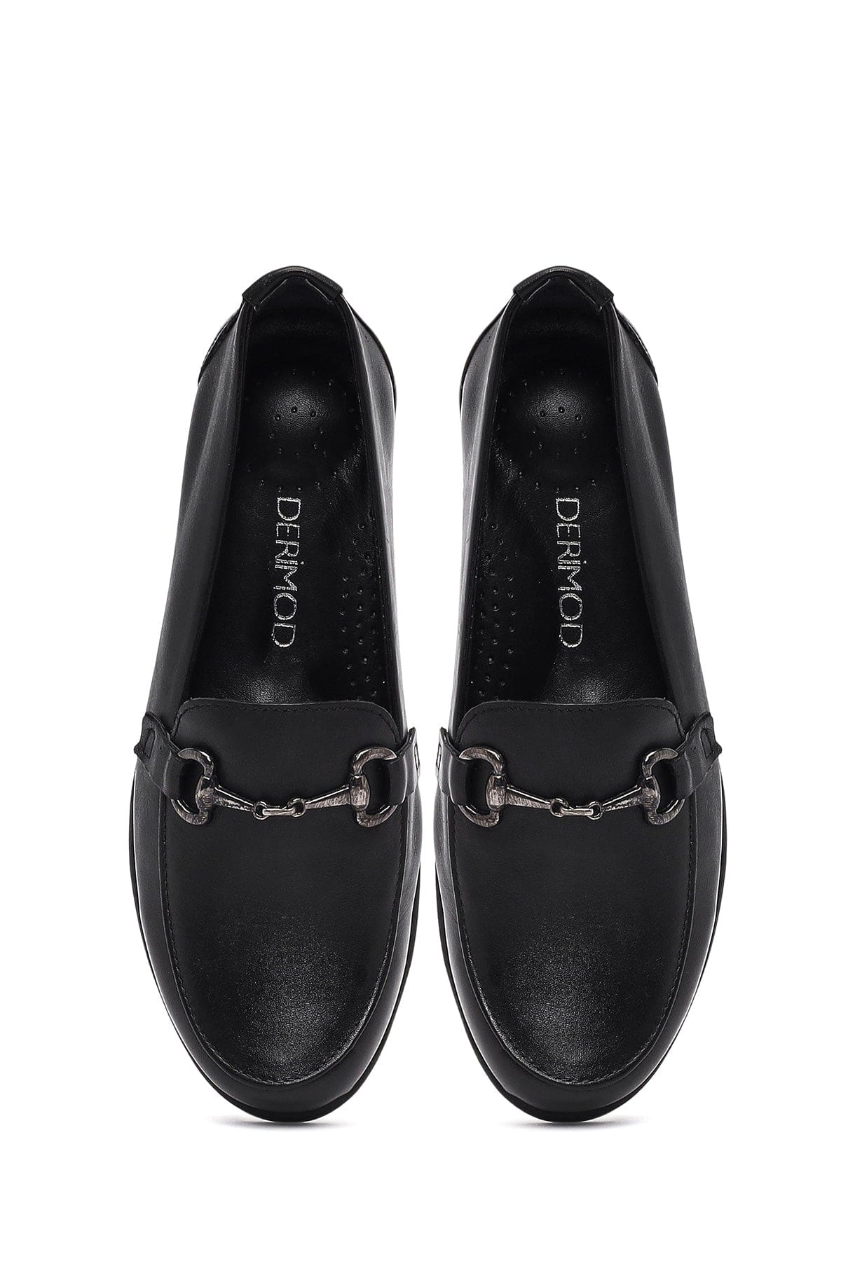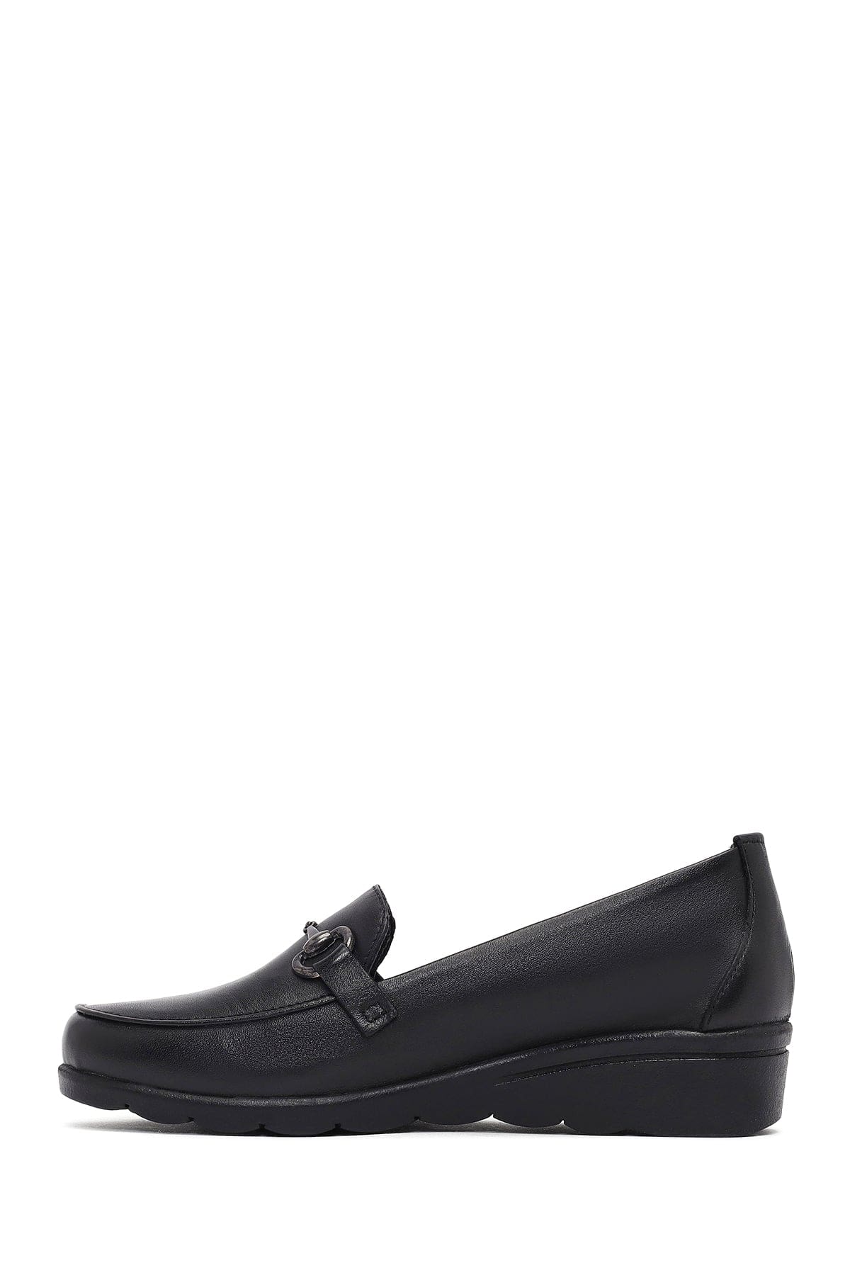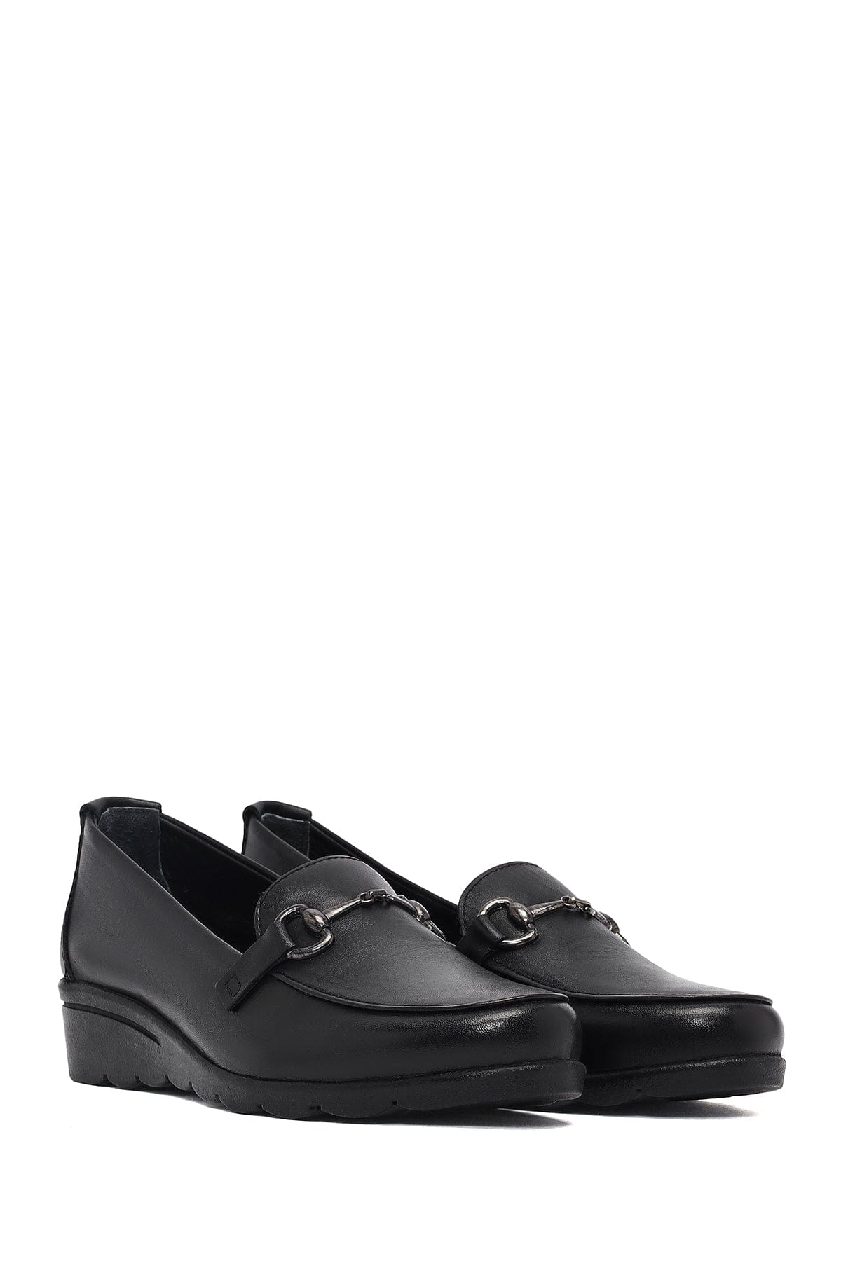 Kadın Siyah Tokalı Dolgu Topuklu Deri Loafer